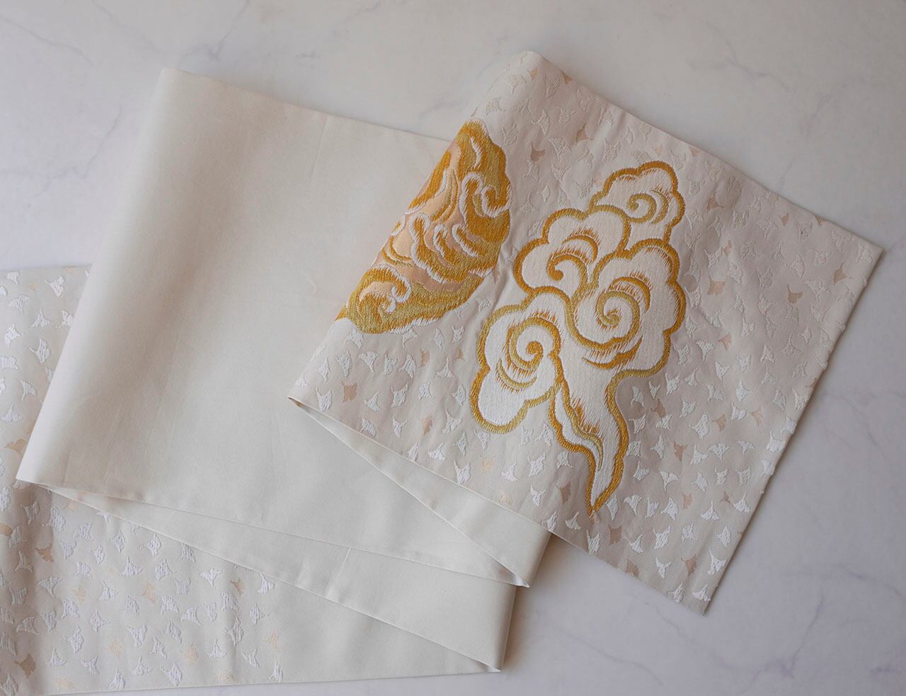 瑞雲と円状の雲文が織り出されています。