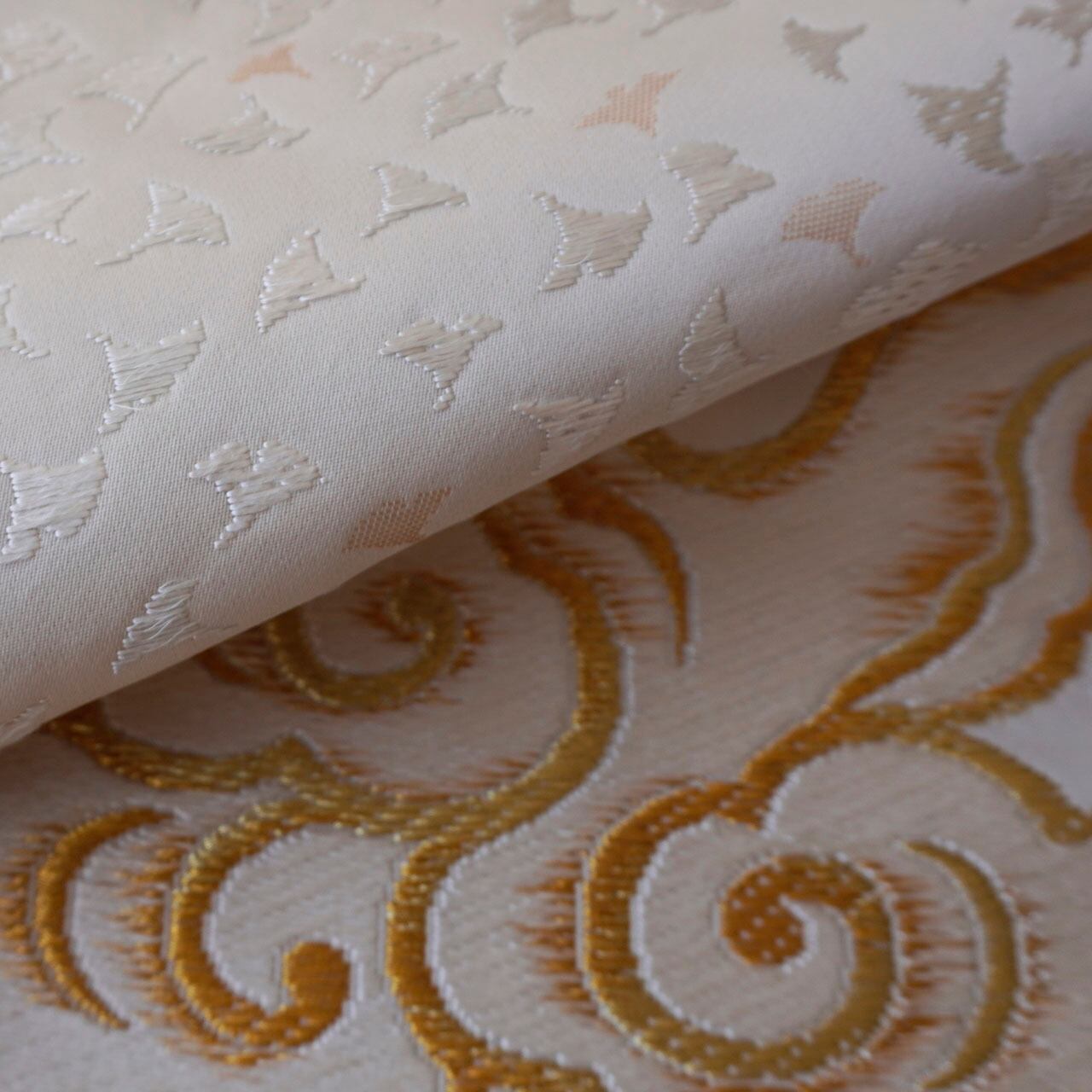 唐織りの艶やかな糸の光沢感と金糸織りの凹凸感があります。