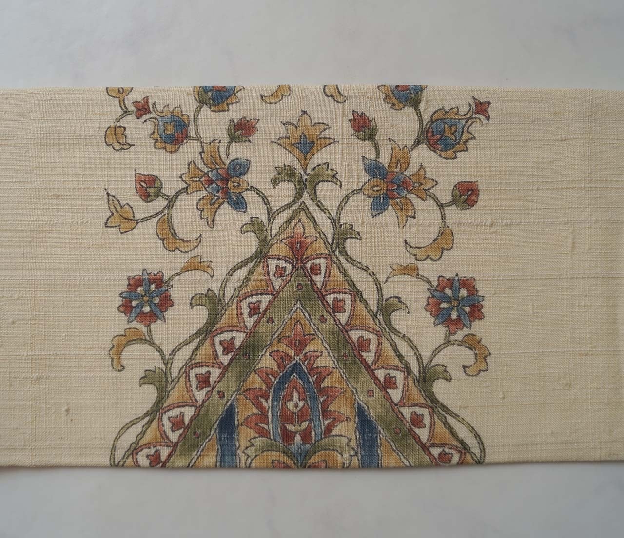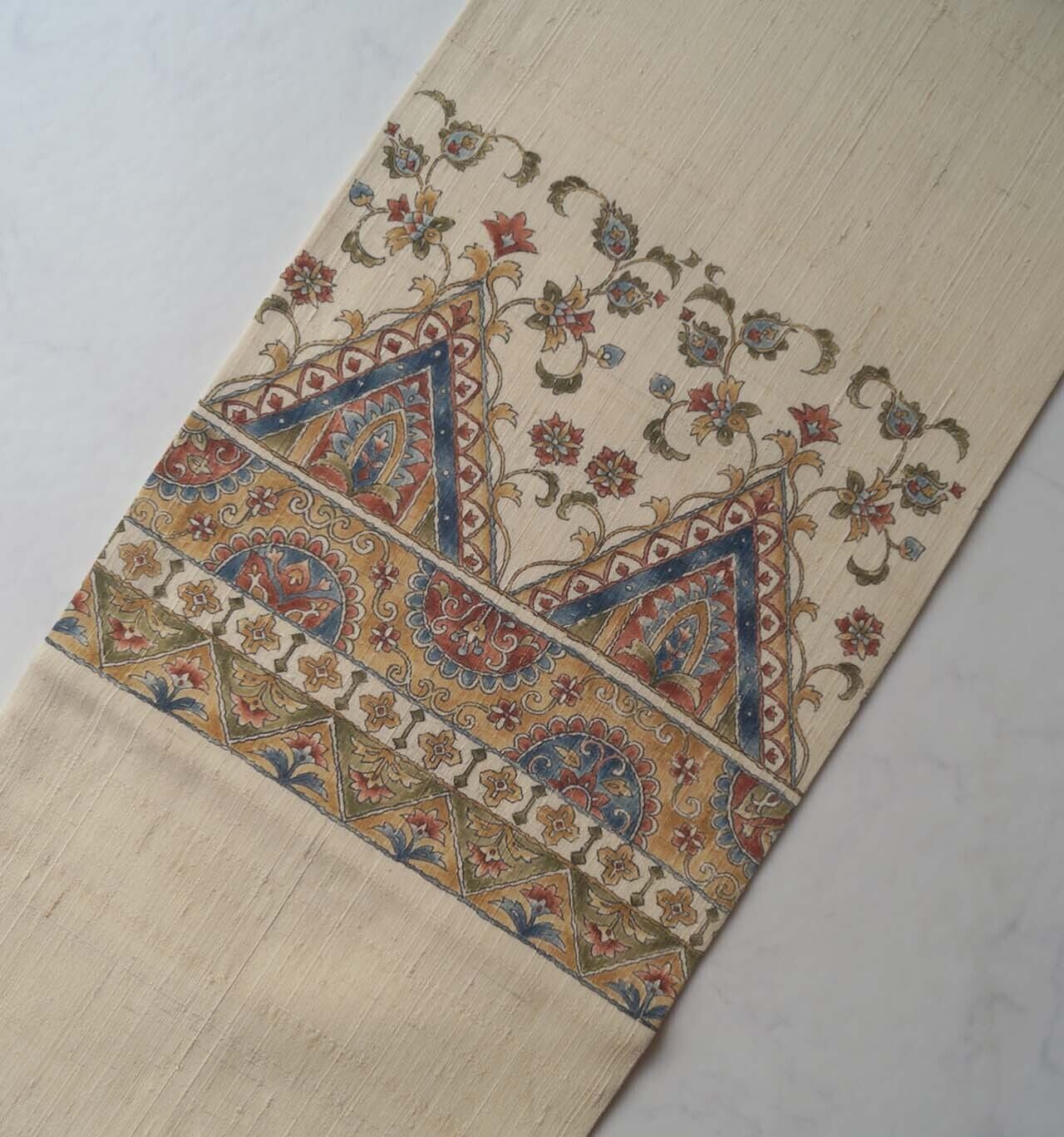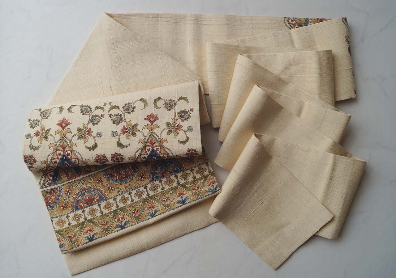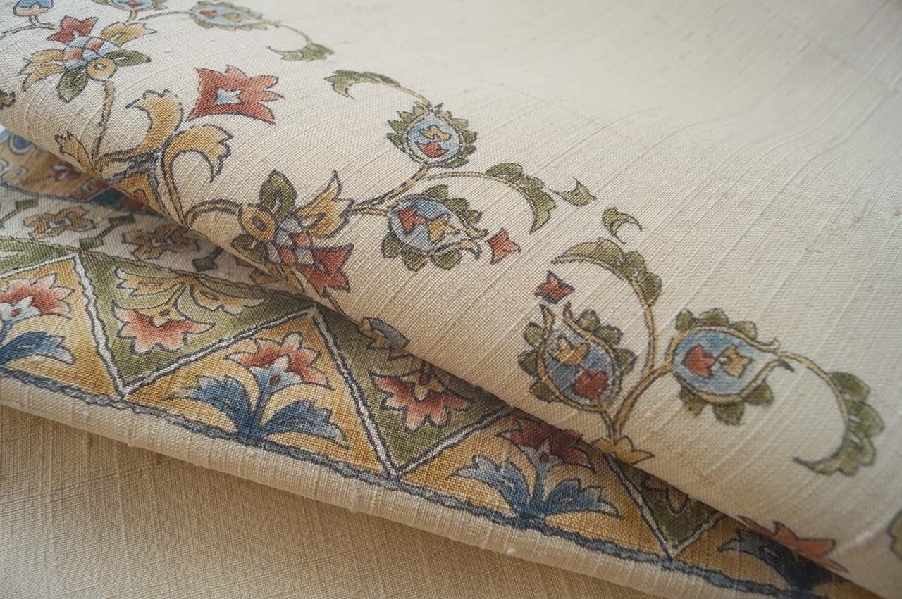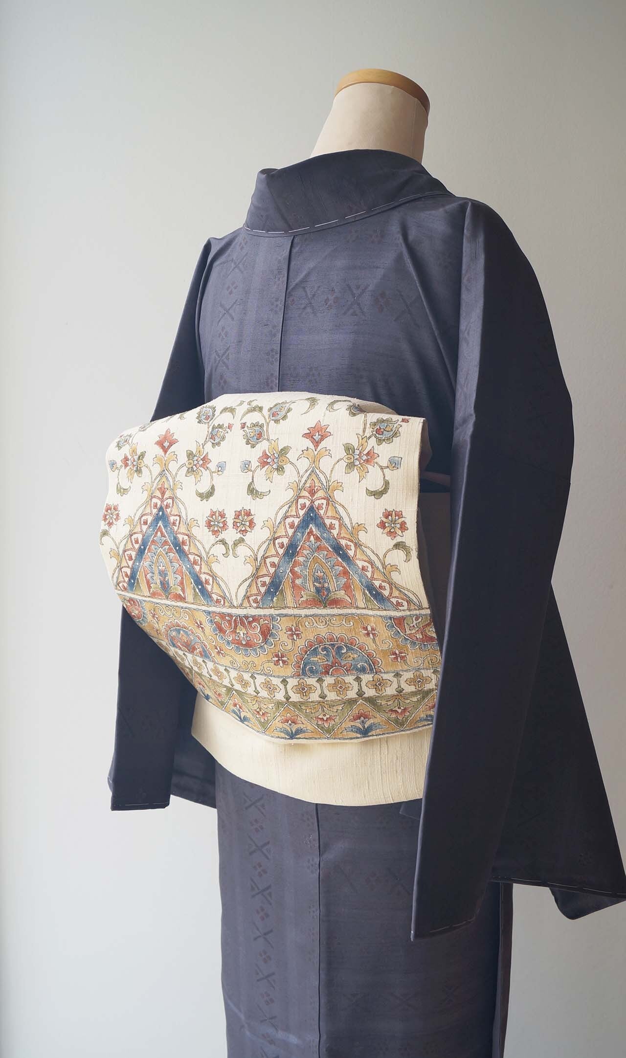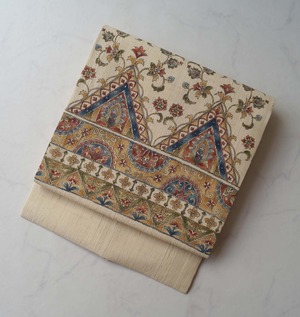 【なごや帯】生成り色地 更紗文 紬なごや帯