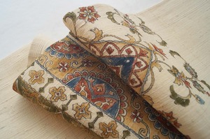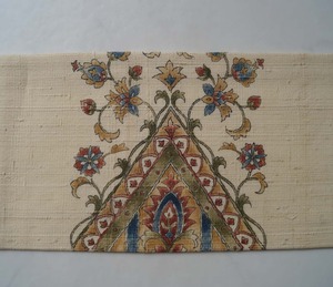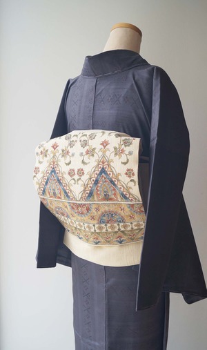 更紗文が染められた紬なごや帯です。