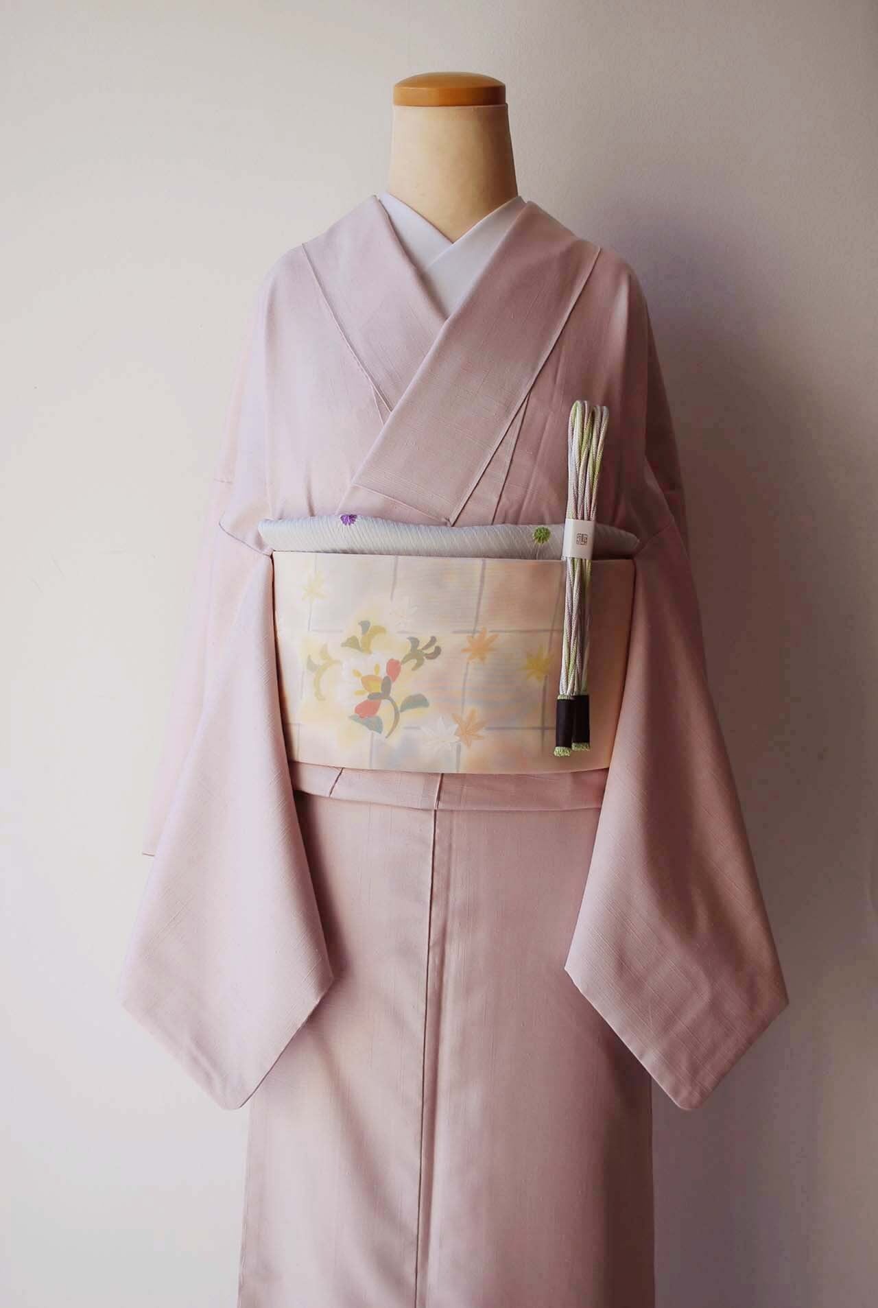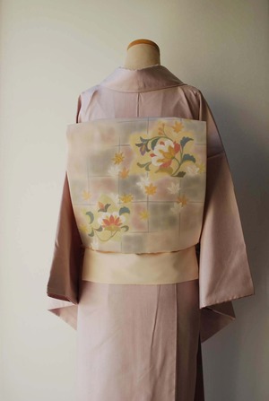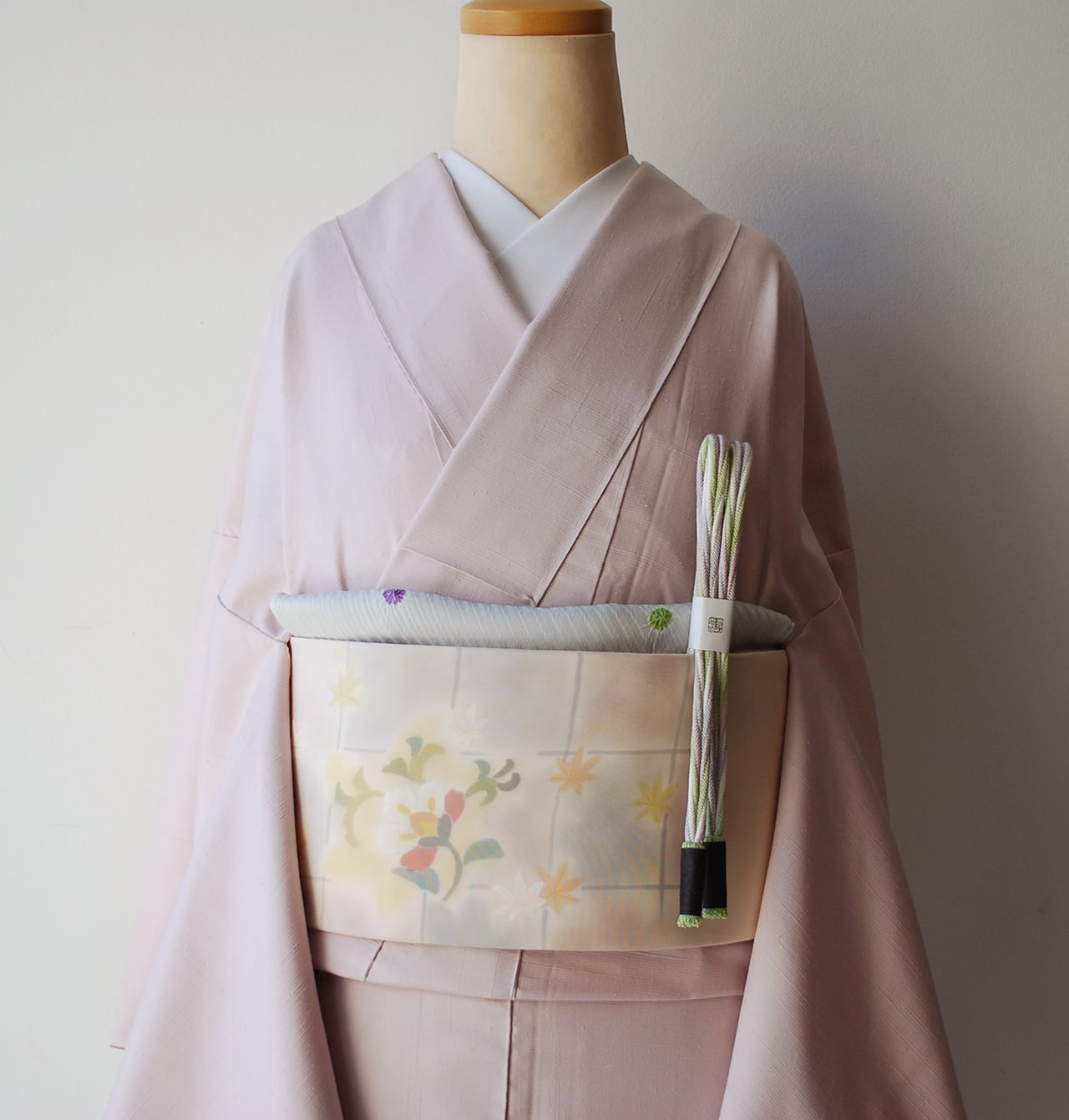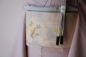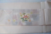 ふんわりと優しい薄桜色の地色の塩瀬地のなごや帯です。