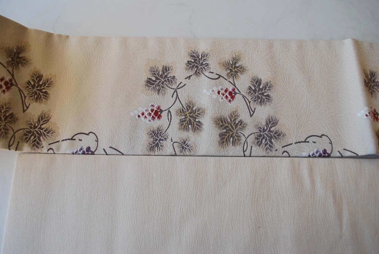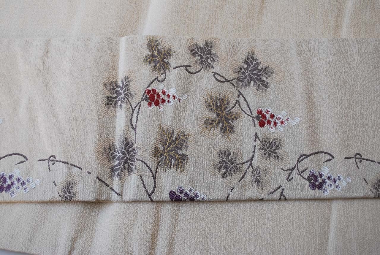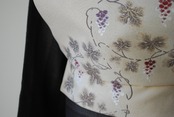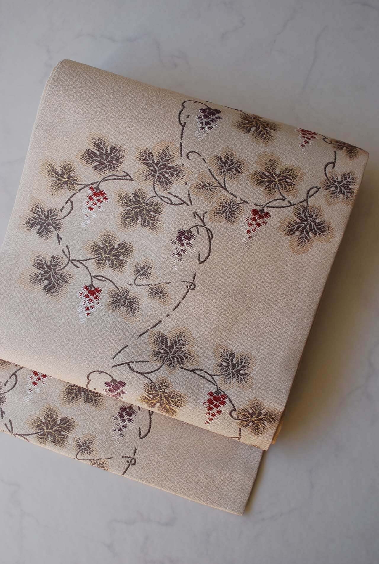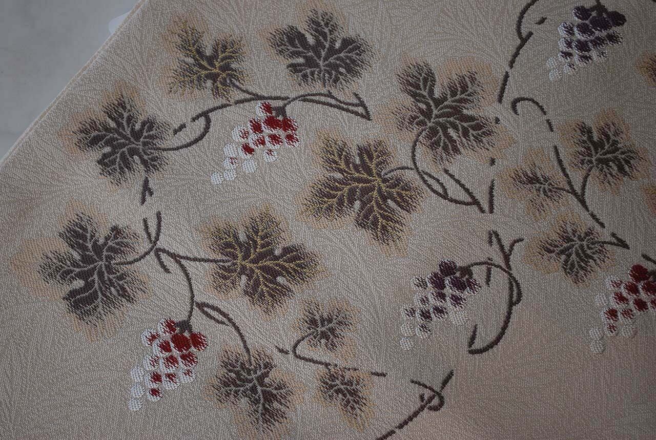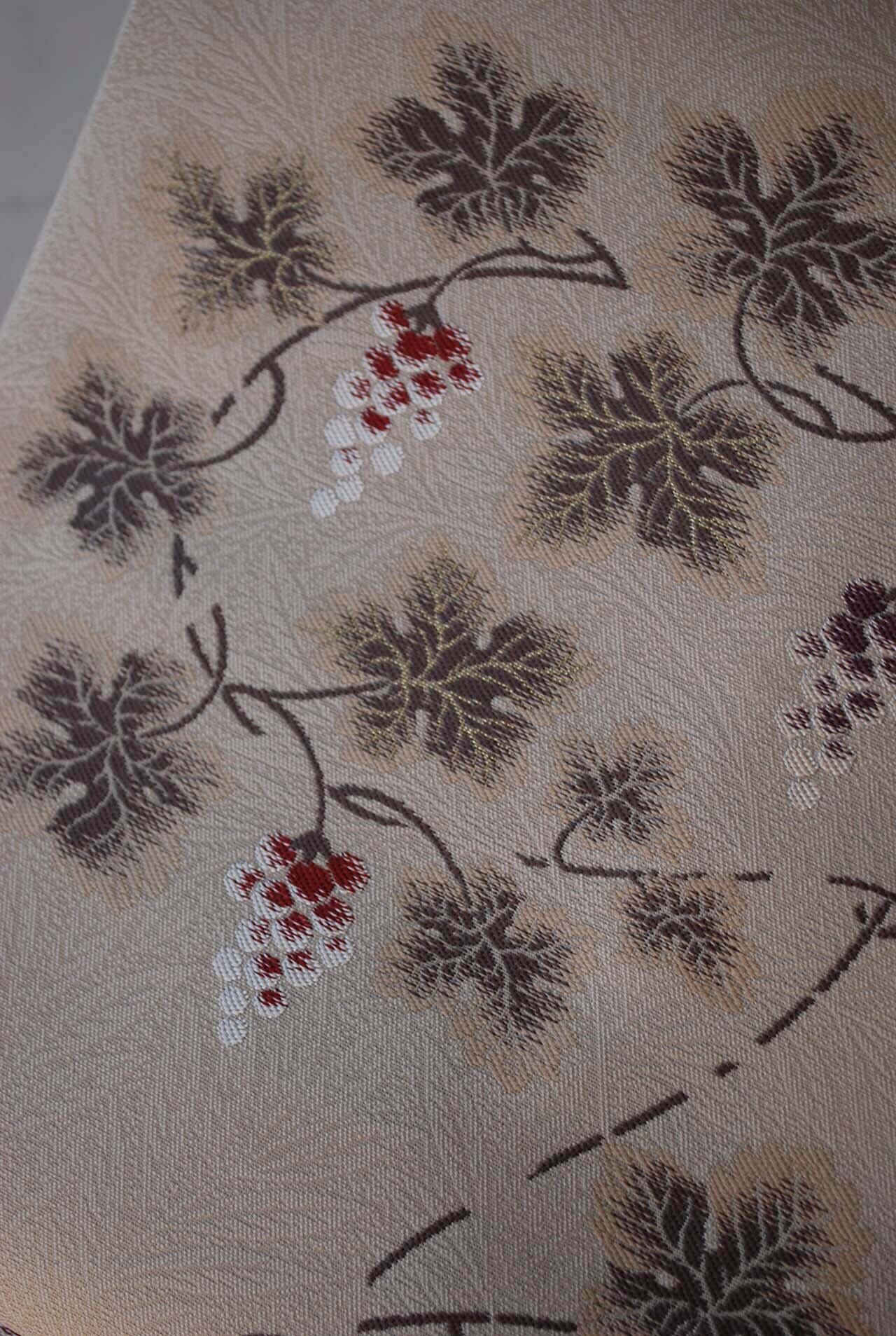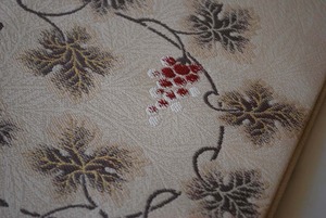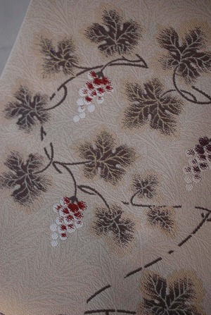 こちらの帯の葡萄唐草は、繊細な雰囲気で蔦の曲線が優美です。