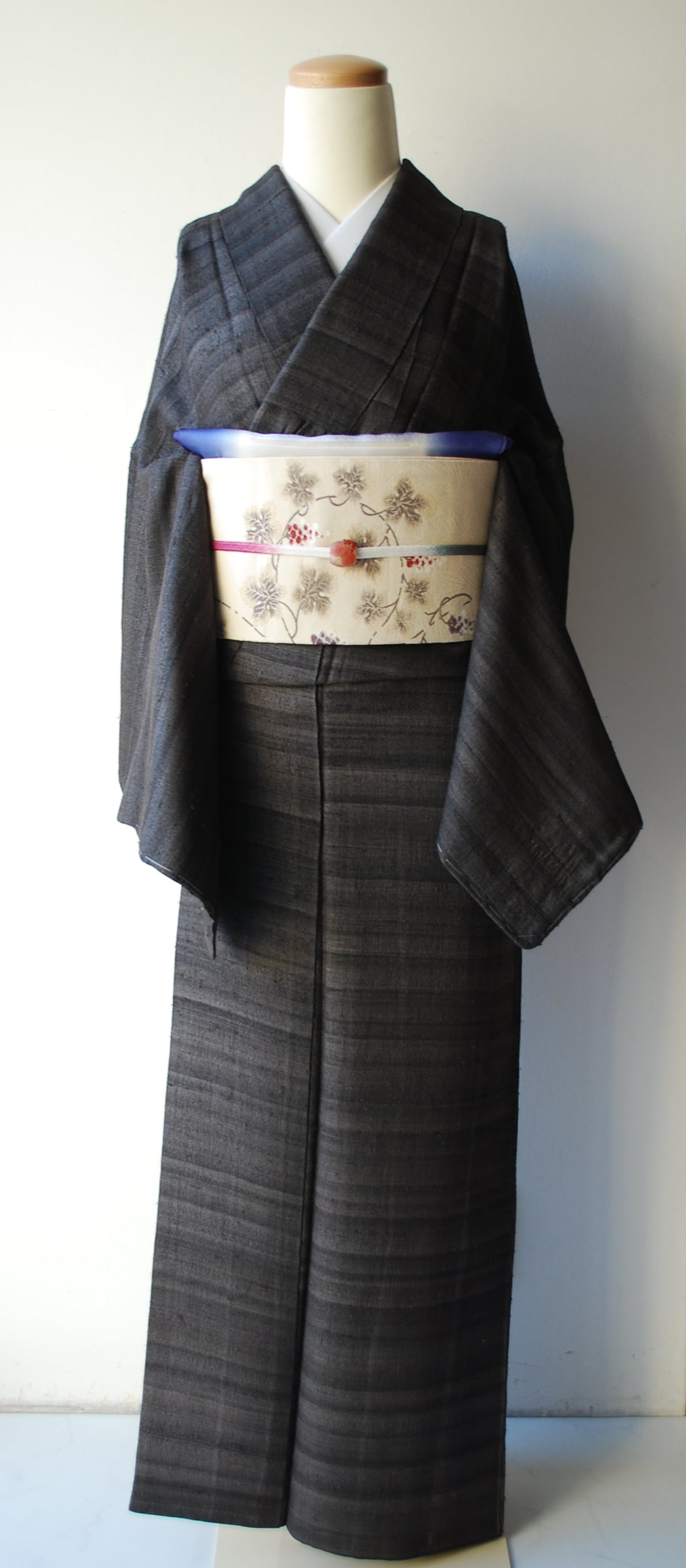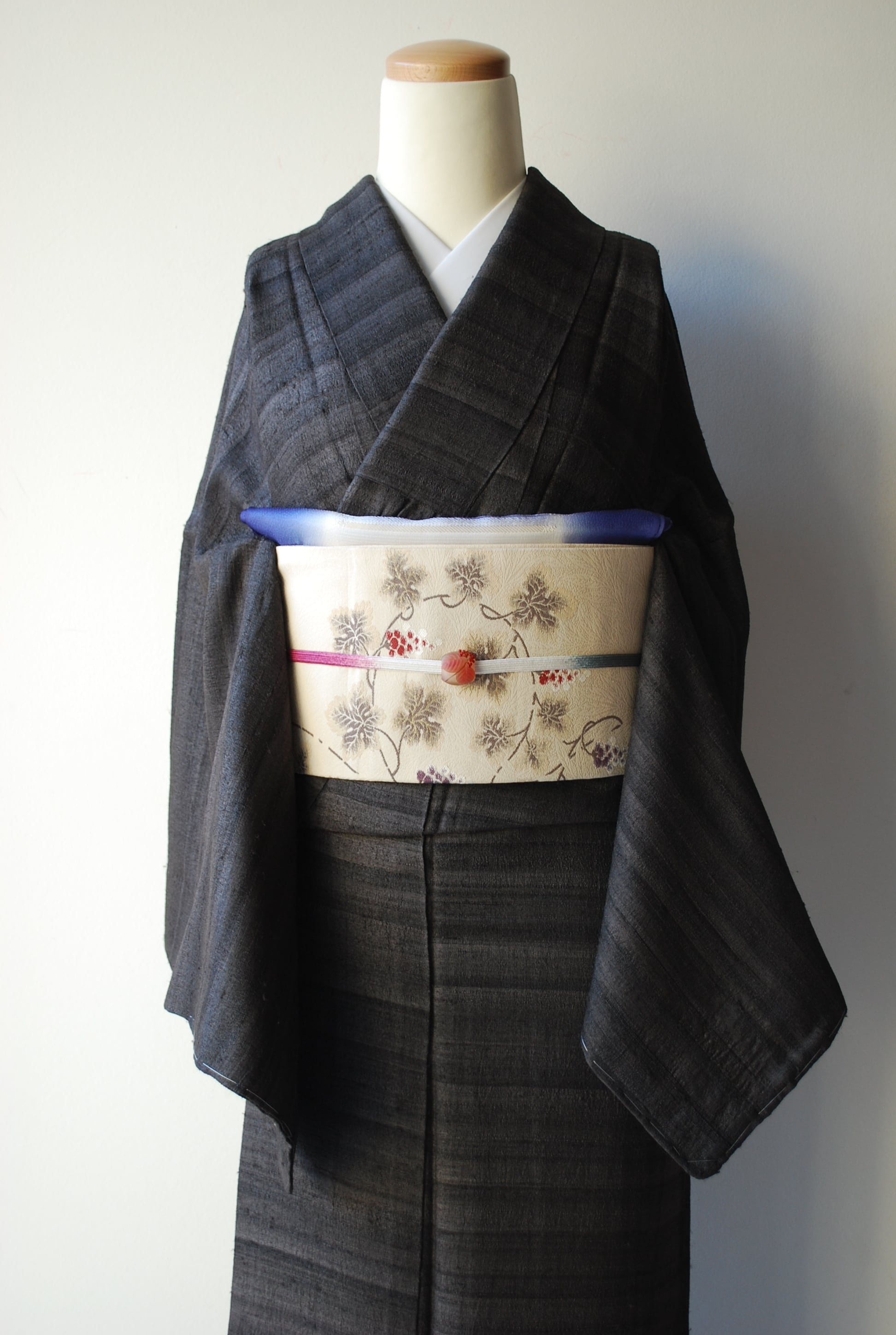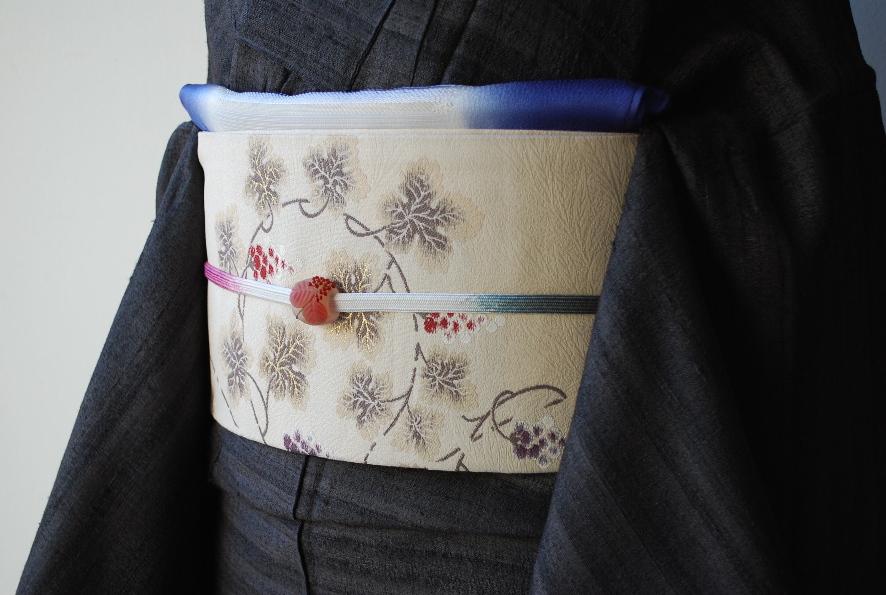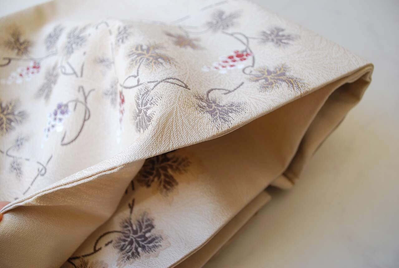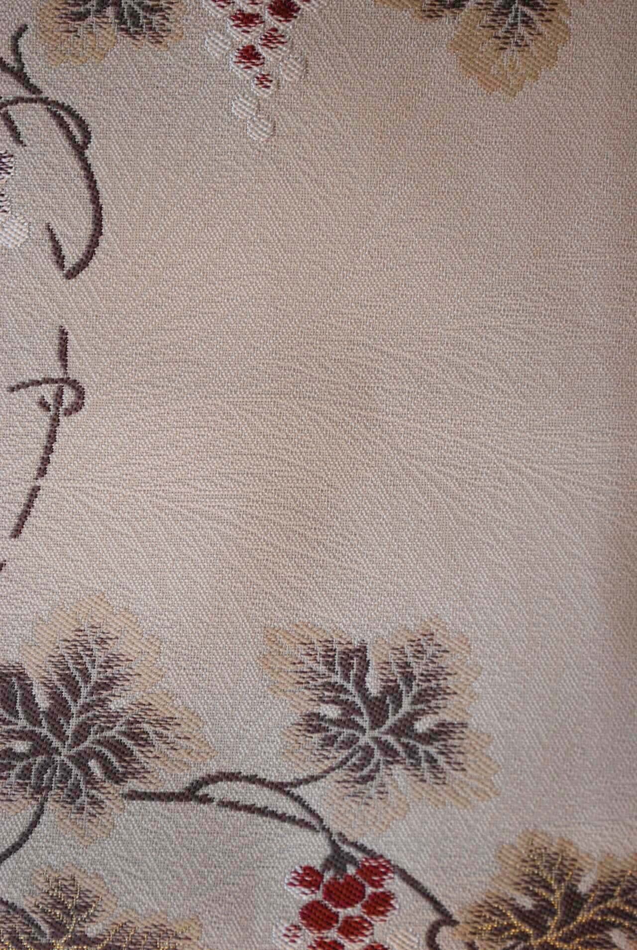 こちらの帯の葡萄唐草は、繊細な雰囲気で蔦の曲線が優美です。