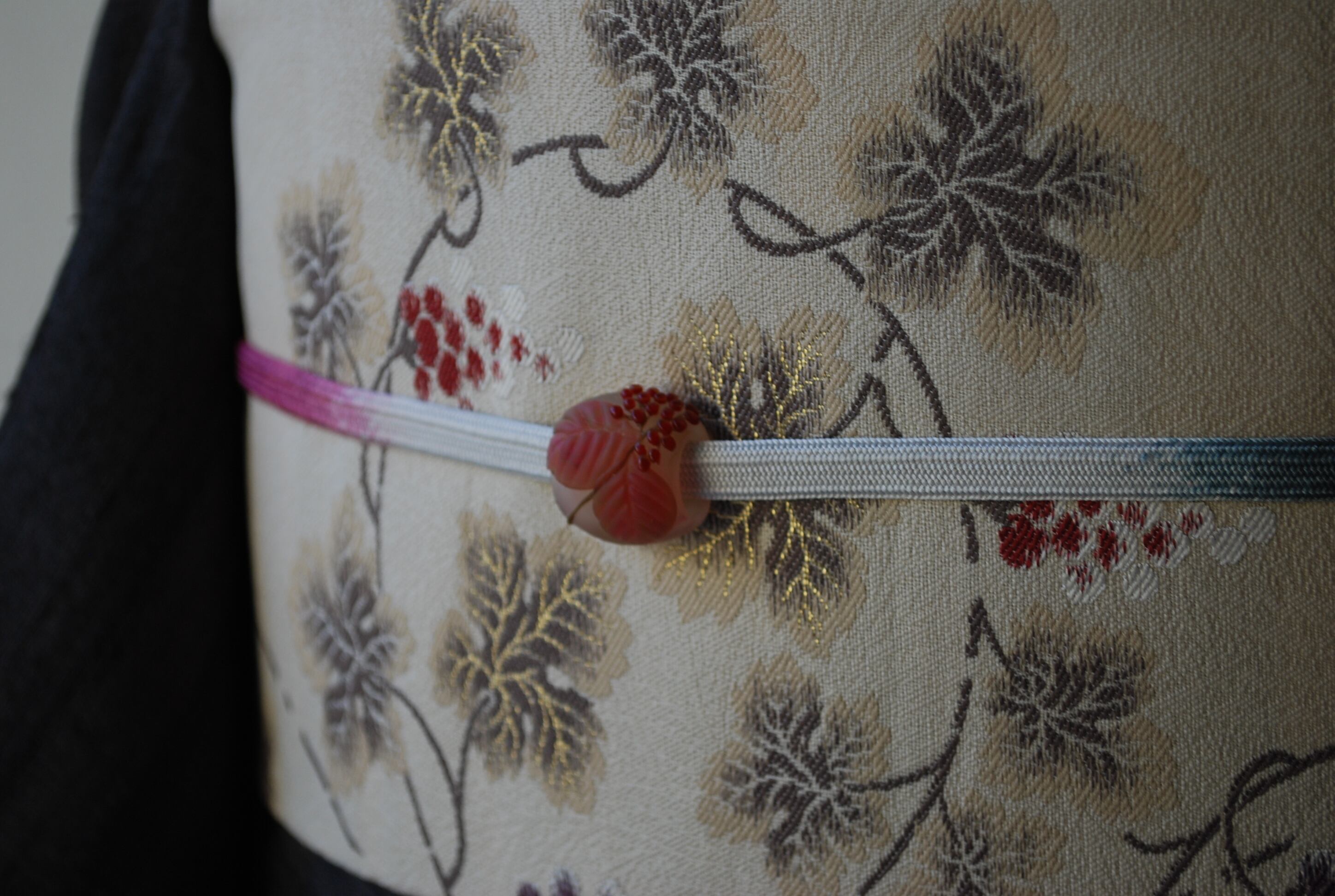 また、よく見ると、帯地には伸びやかな葉の地紋が