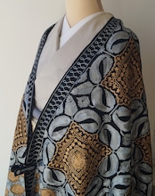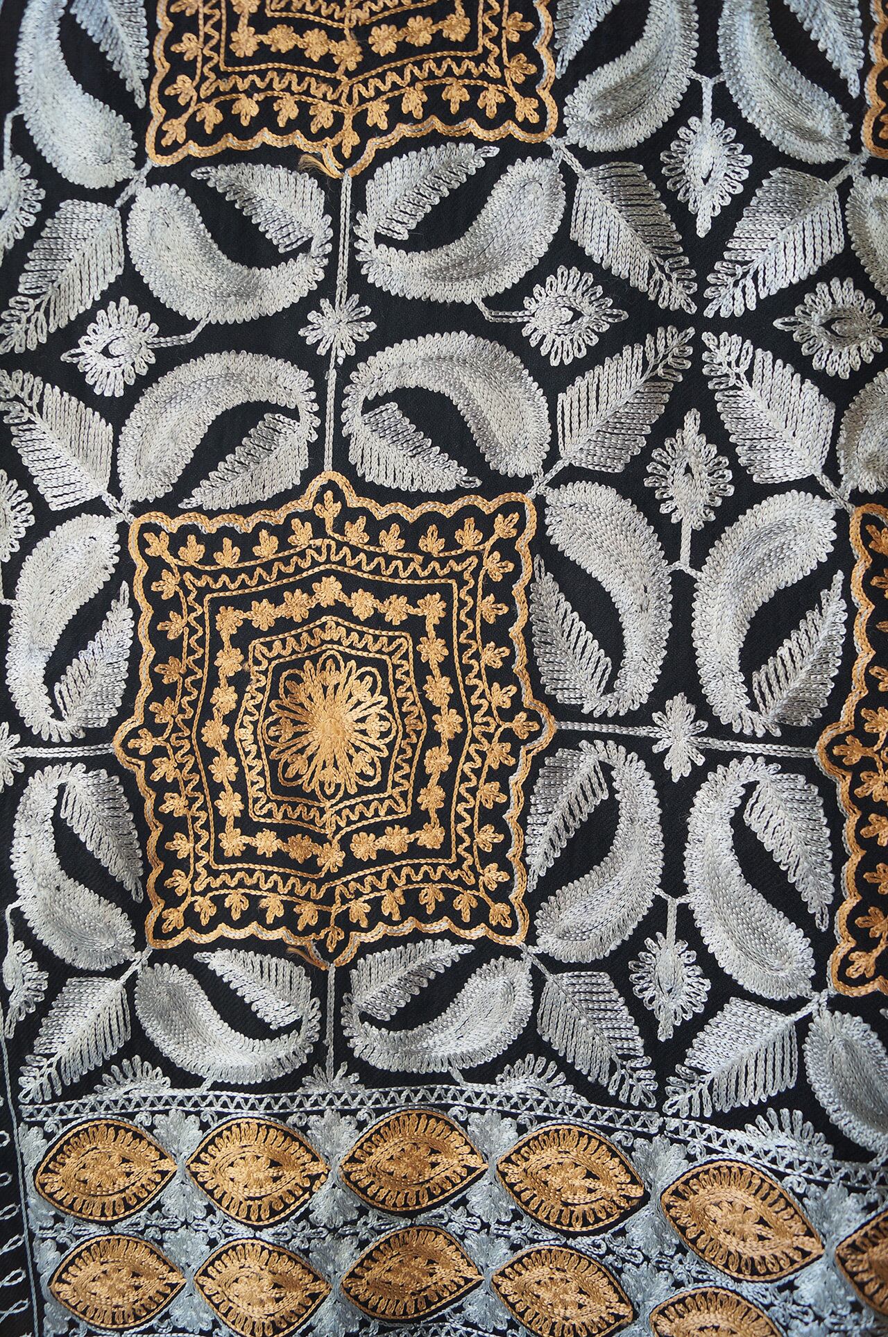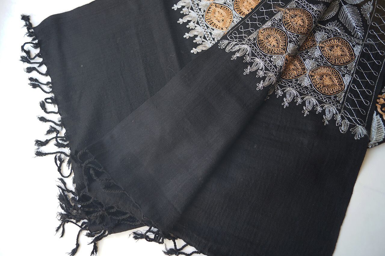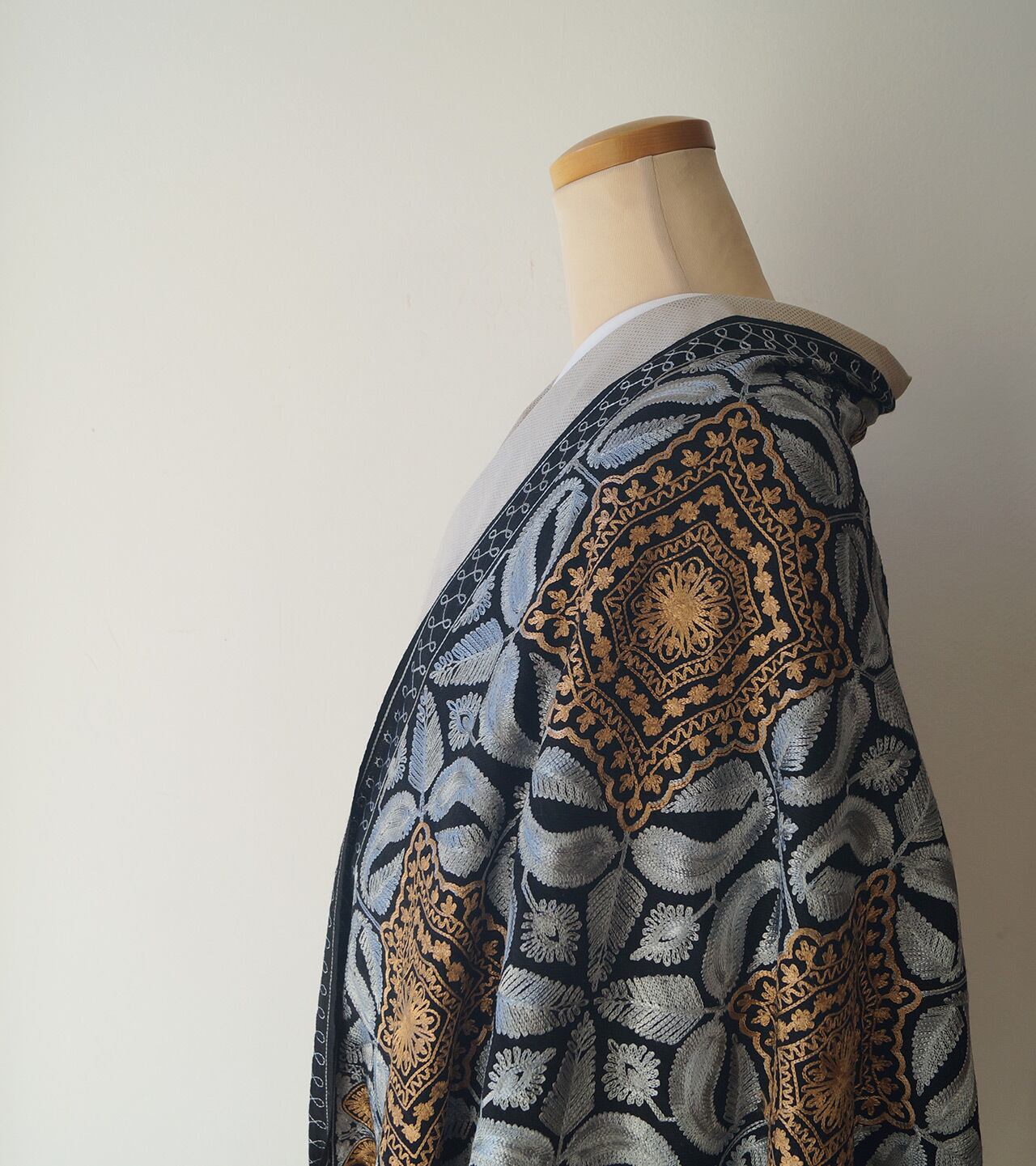 【ストール】カシミール刺繍 黒色×金色×銀色 251120A
