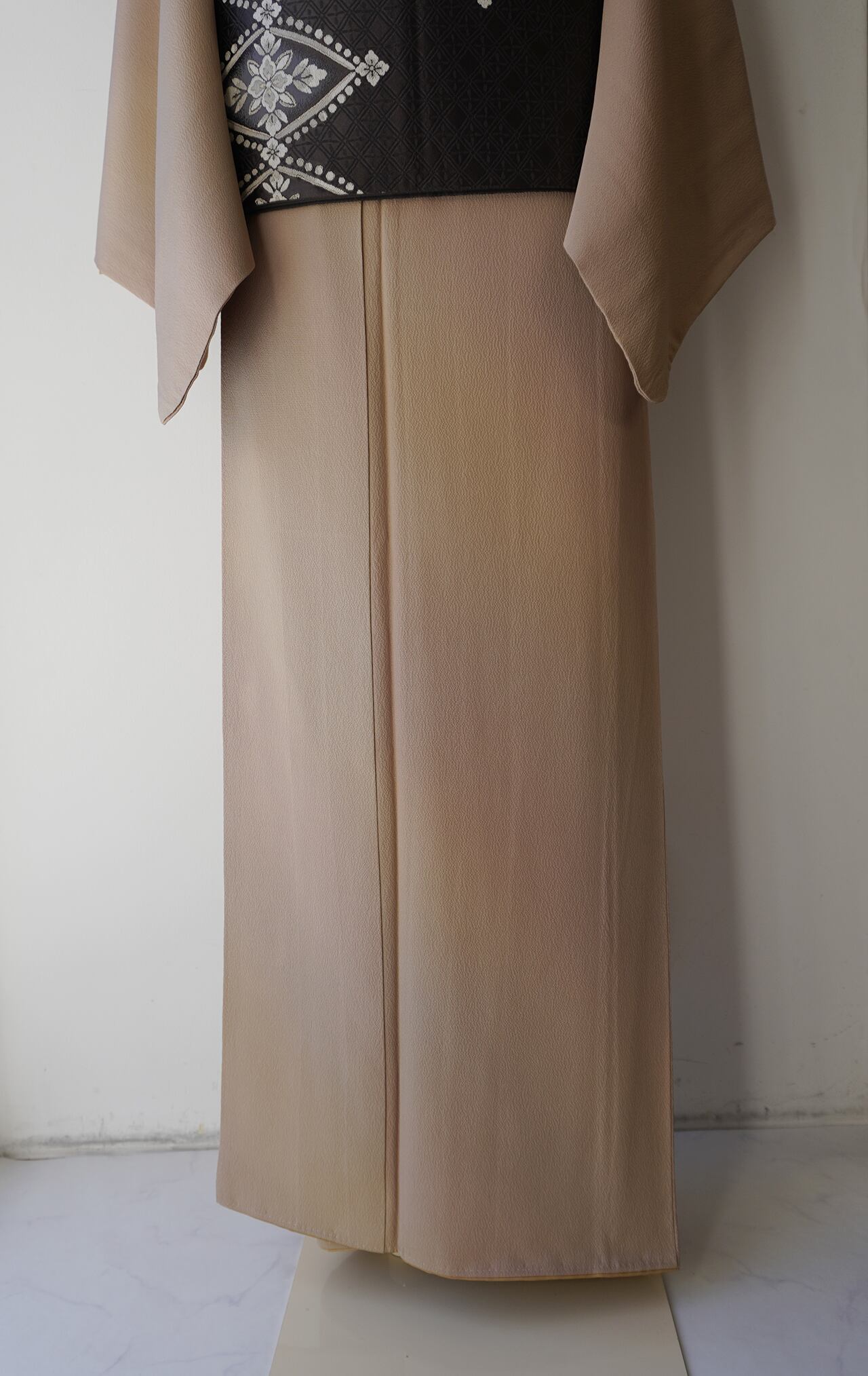 縮緬地のしぼが暈し染めの微妙な色の移ろいを受け止め、
