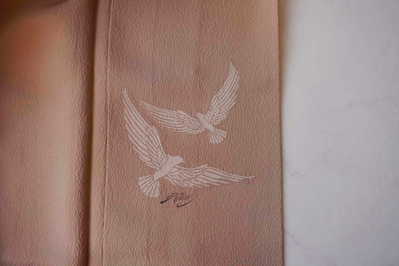 ・下前のおくみに斉藤三才の銘、鳥の刺繍が入っています。