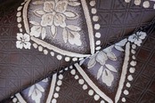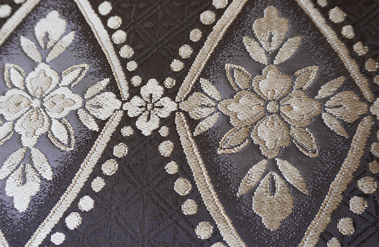 唐織の技法で立体的に織り出された花菱文は金糸で縁取りされ、