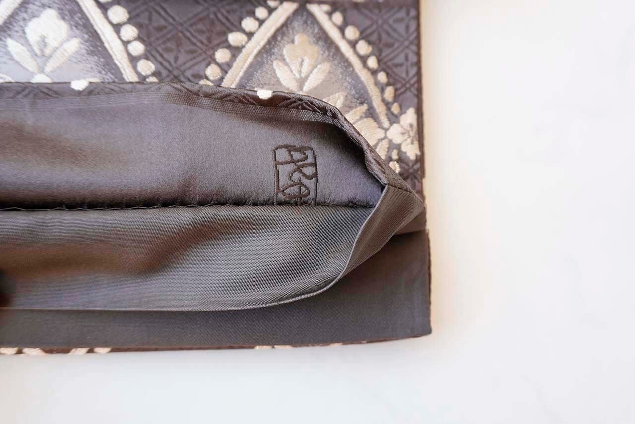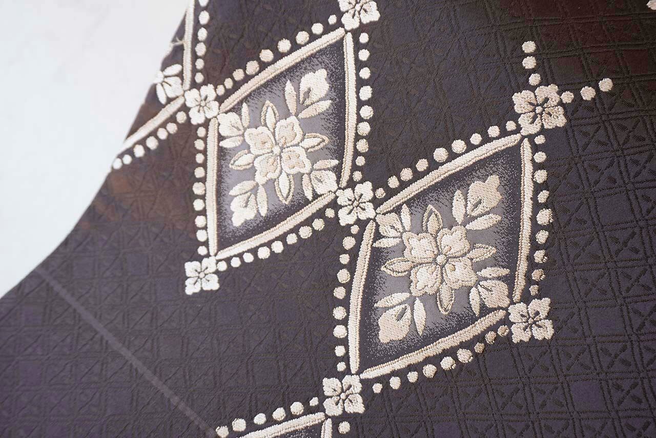 憲法色の地紋には菱が織り込まれ、表面の華やかな文様に