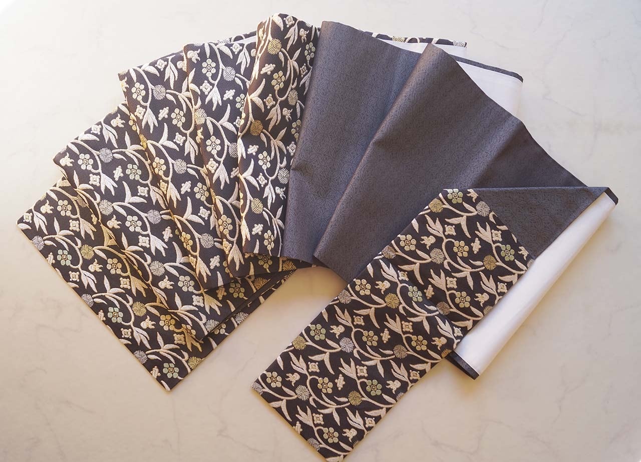 笹蔓文と宝尽くし文が織り出された