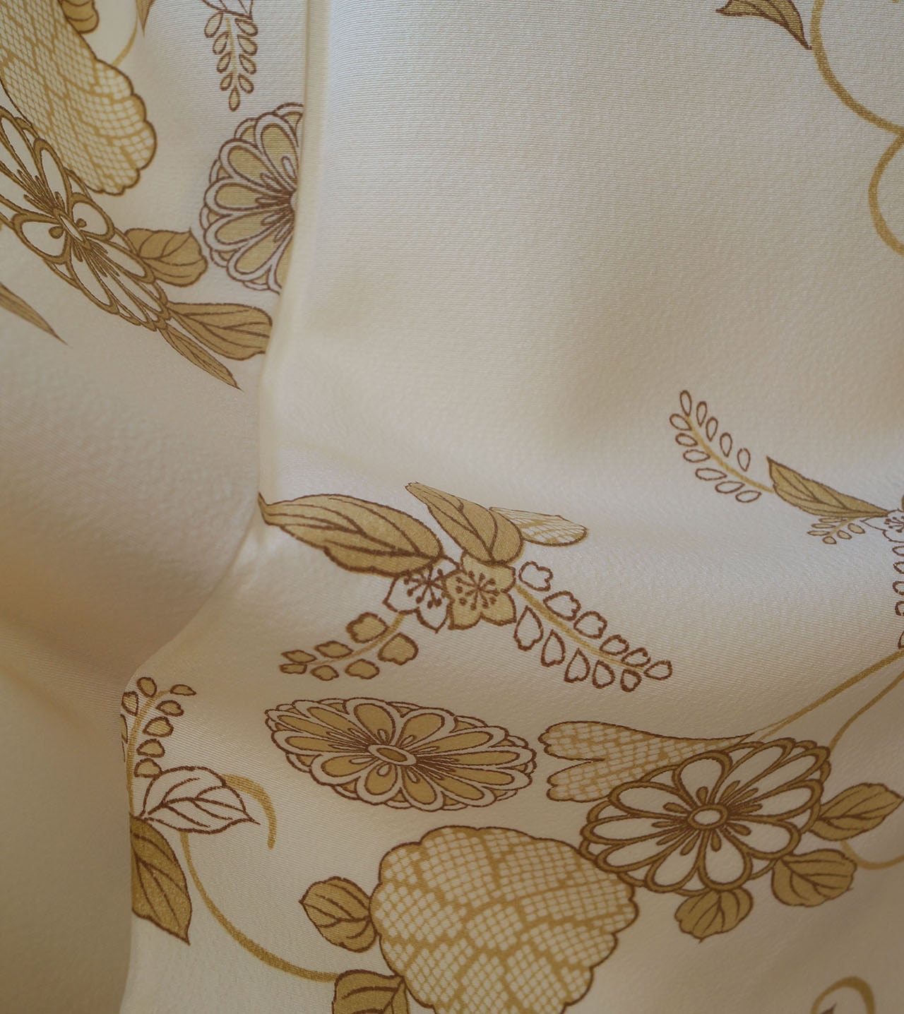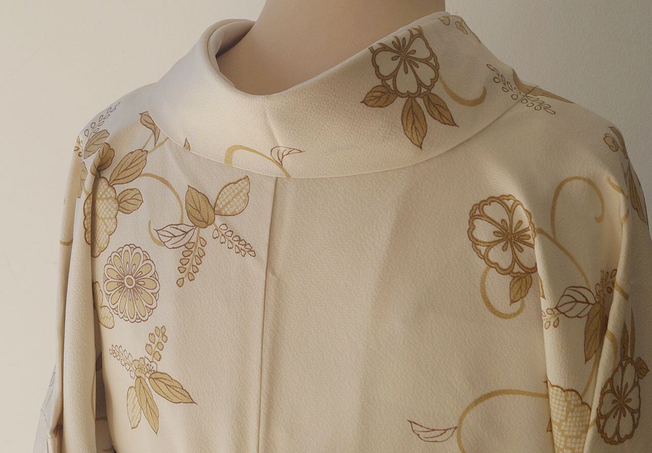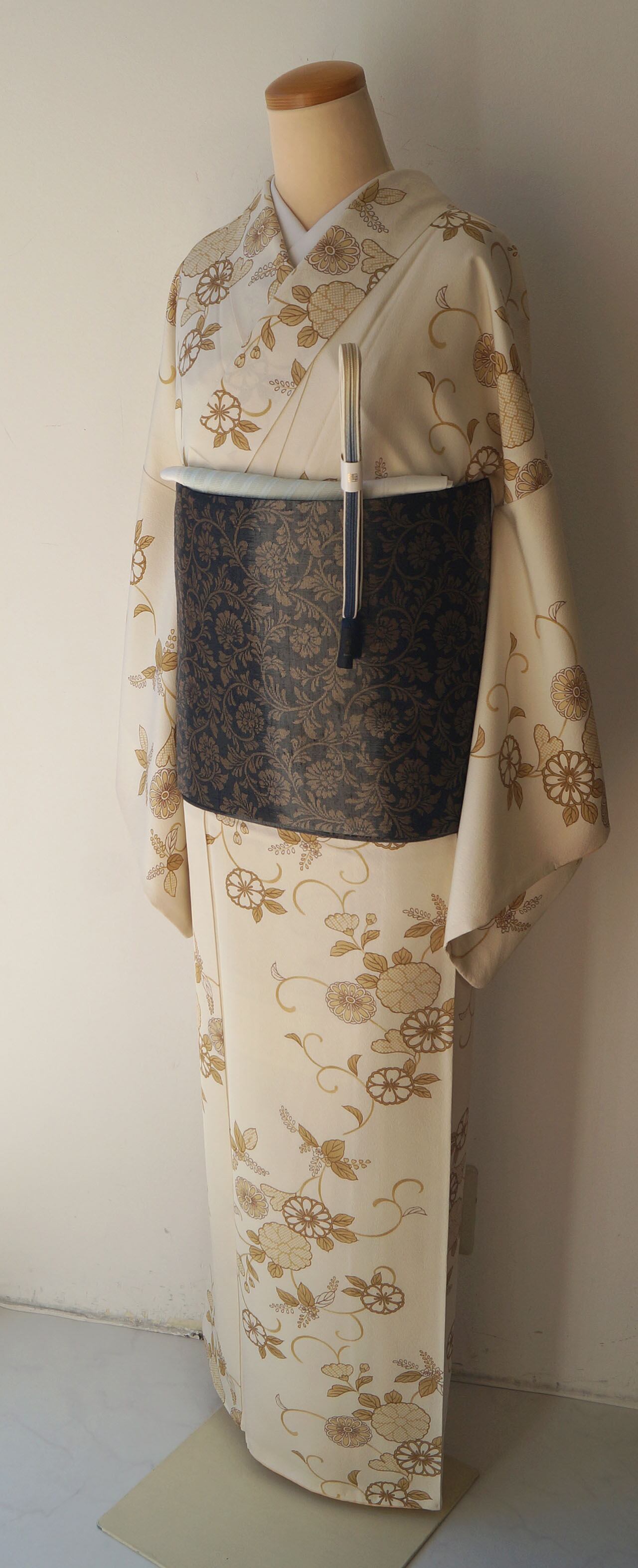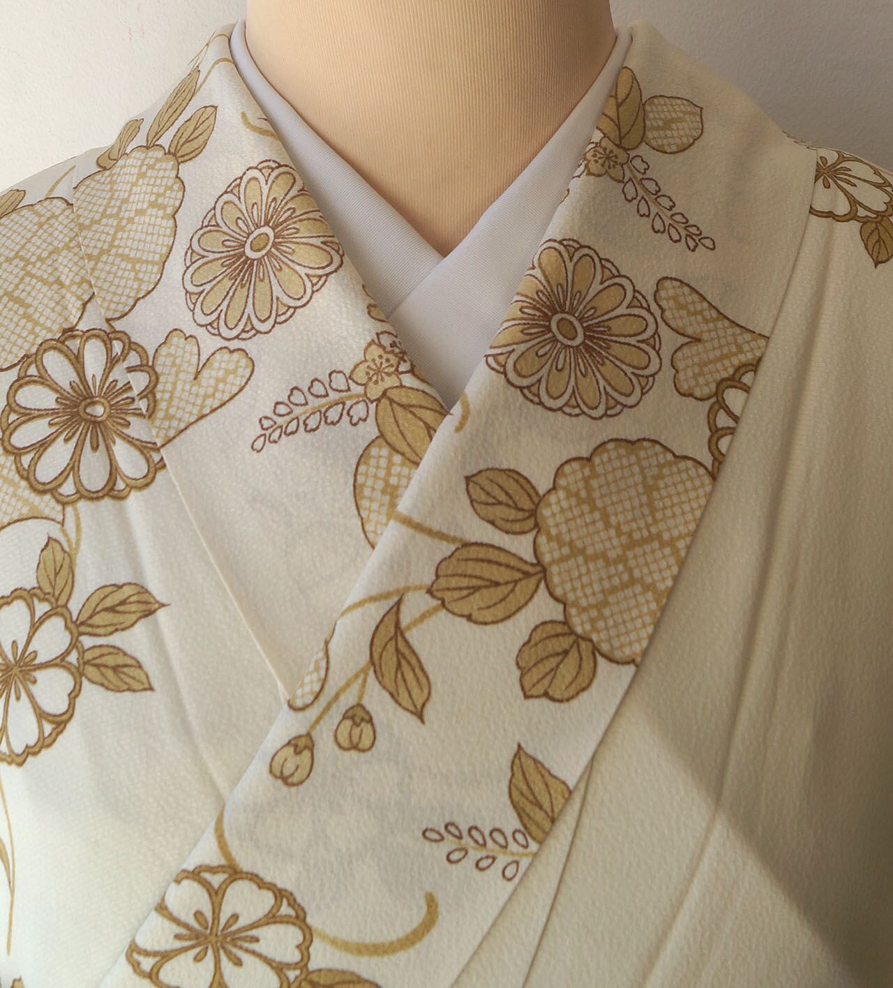 生成り色地に菊唐草文が描かれた