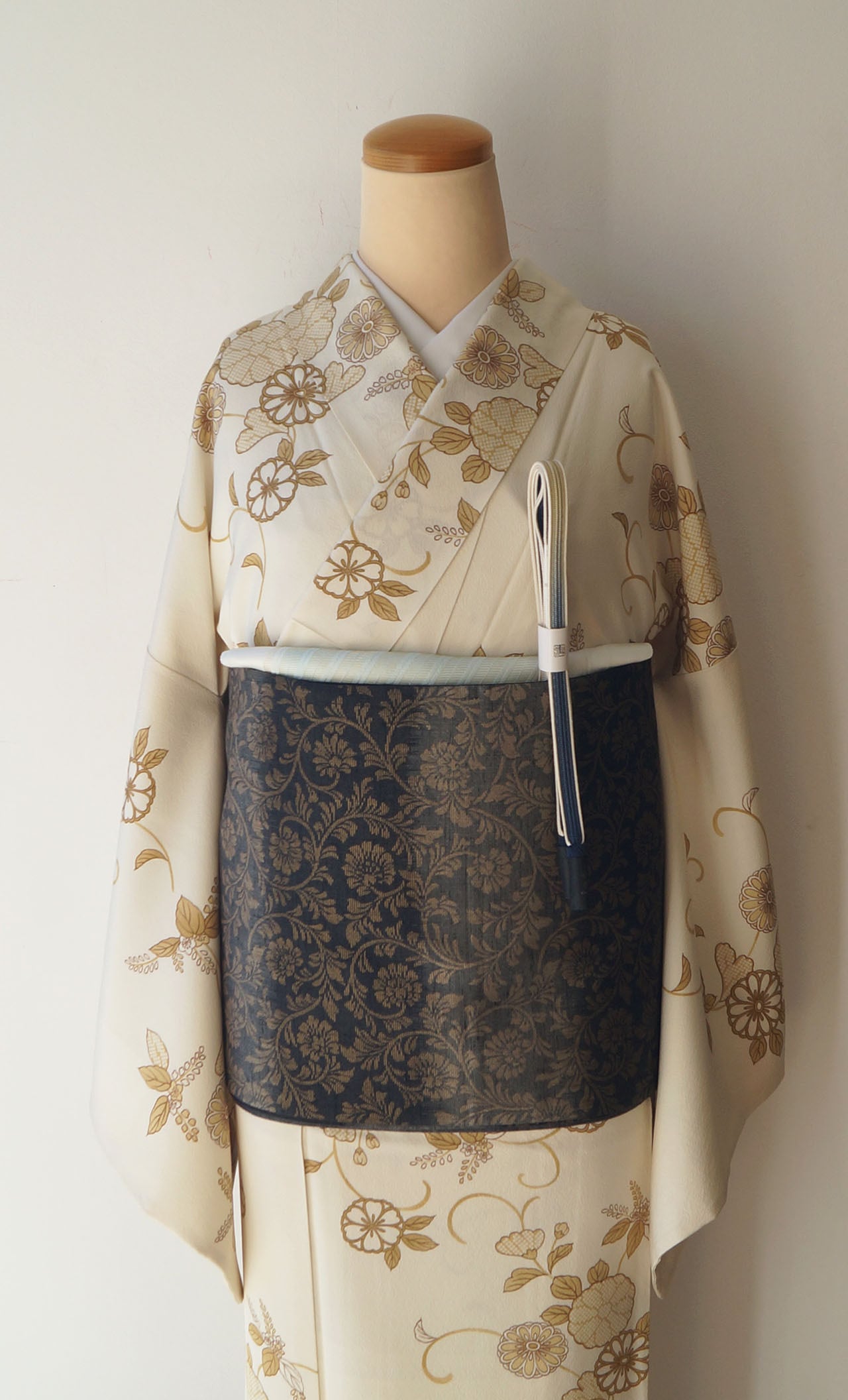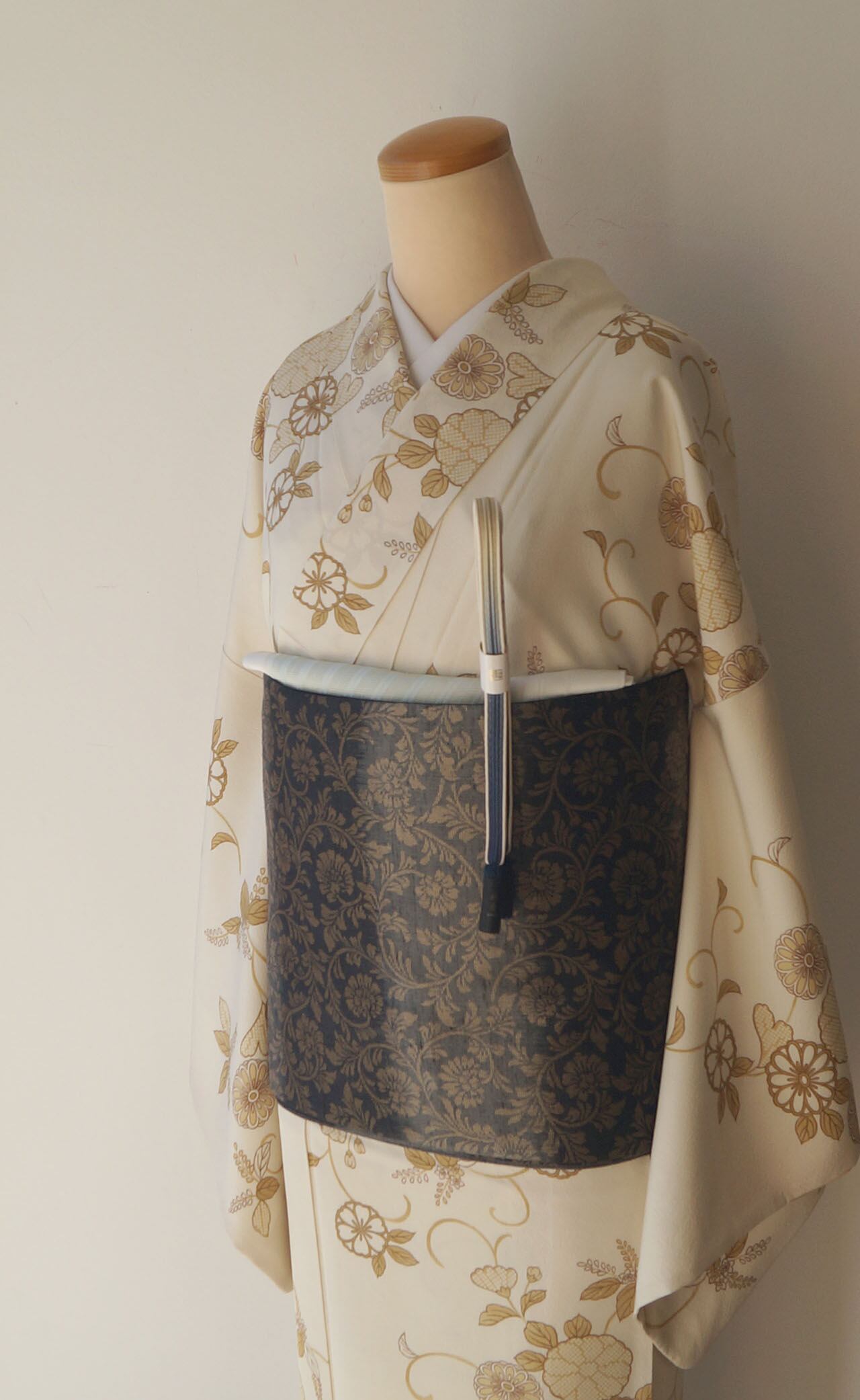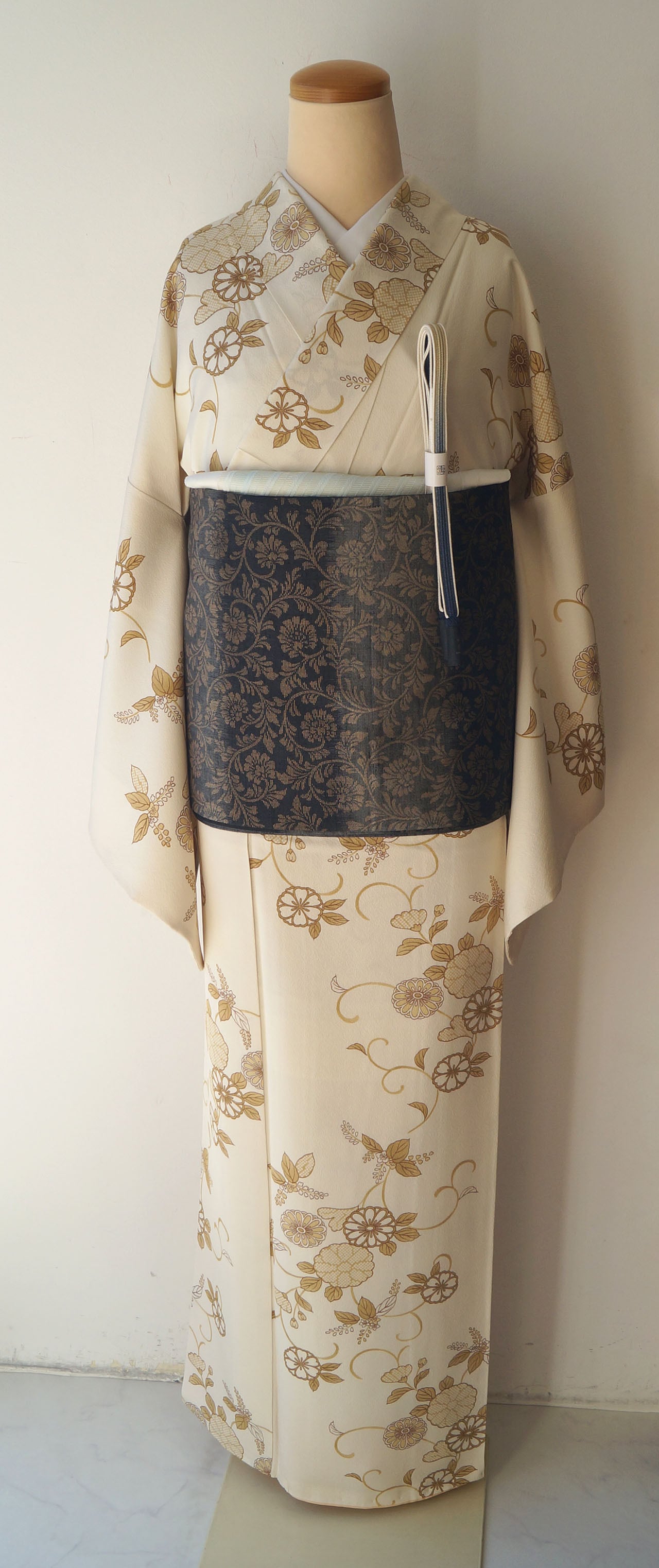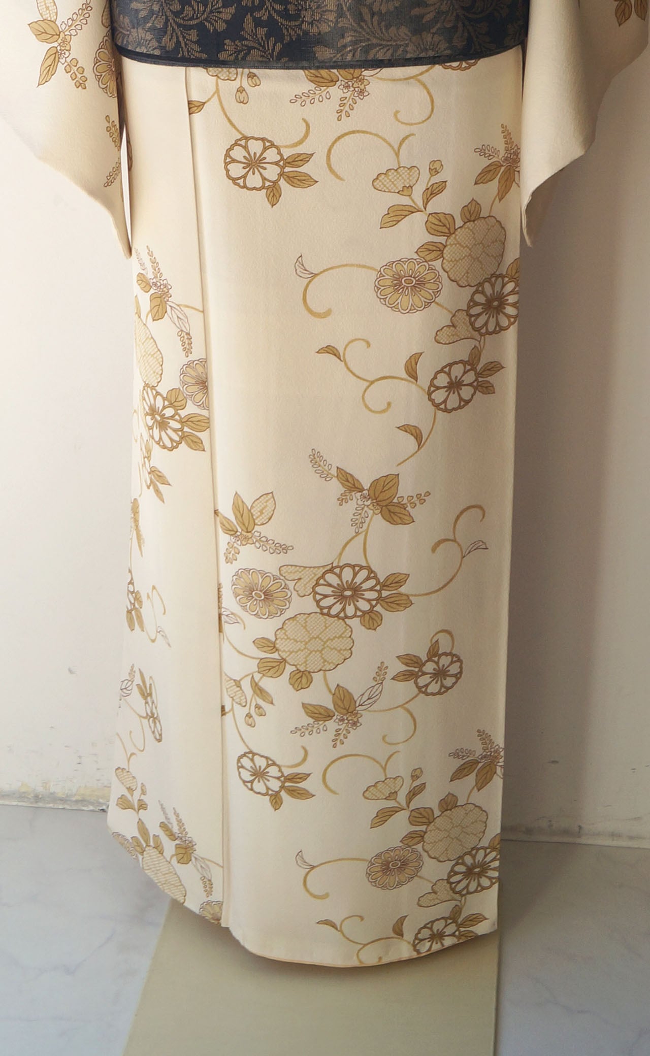 生成り色地に菊唐草文が描かれた