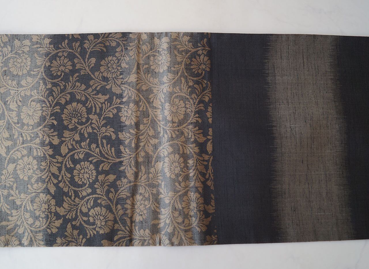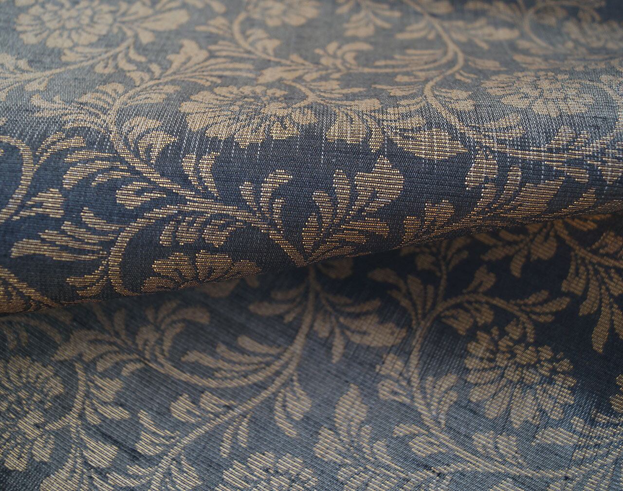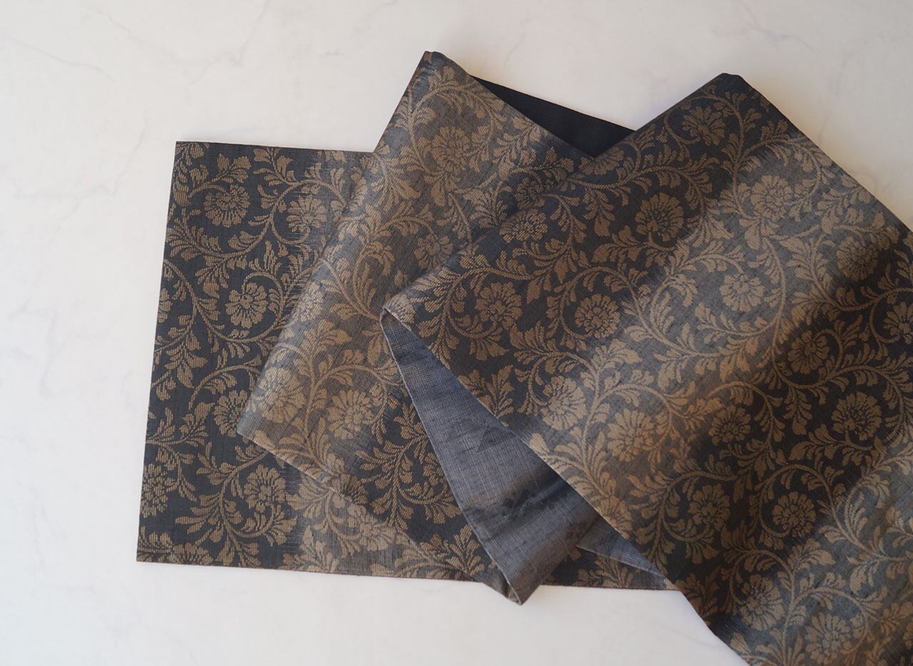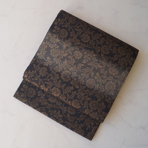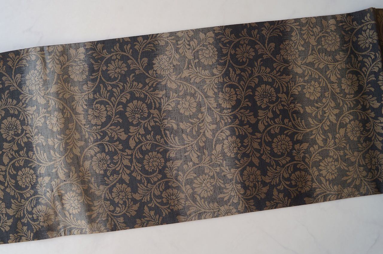 シックな地色に金糸で織り出された花唐草文が