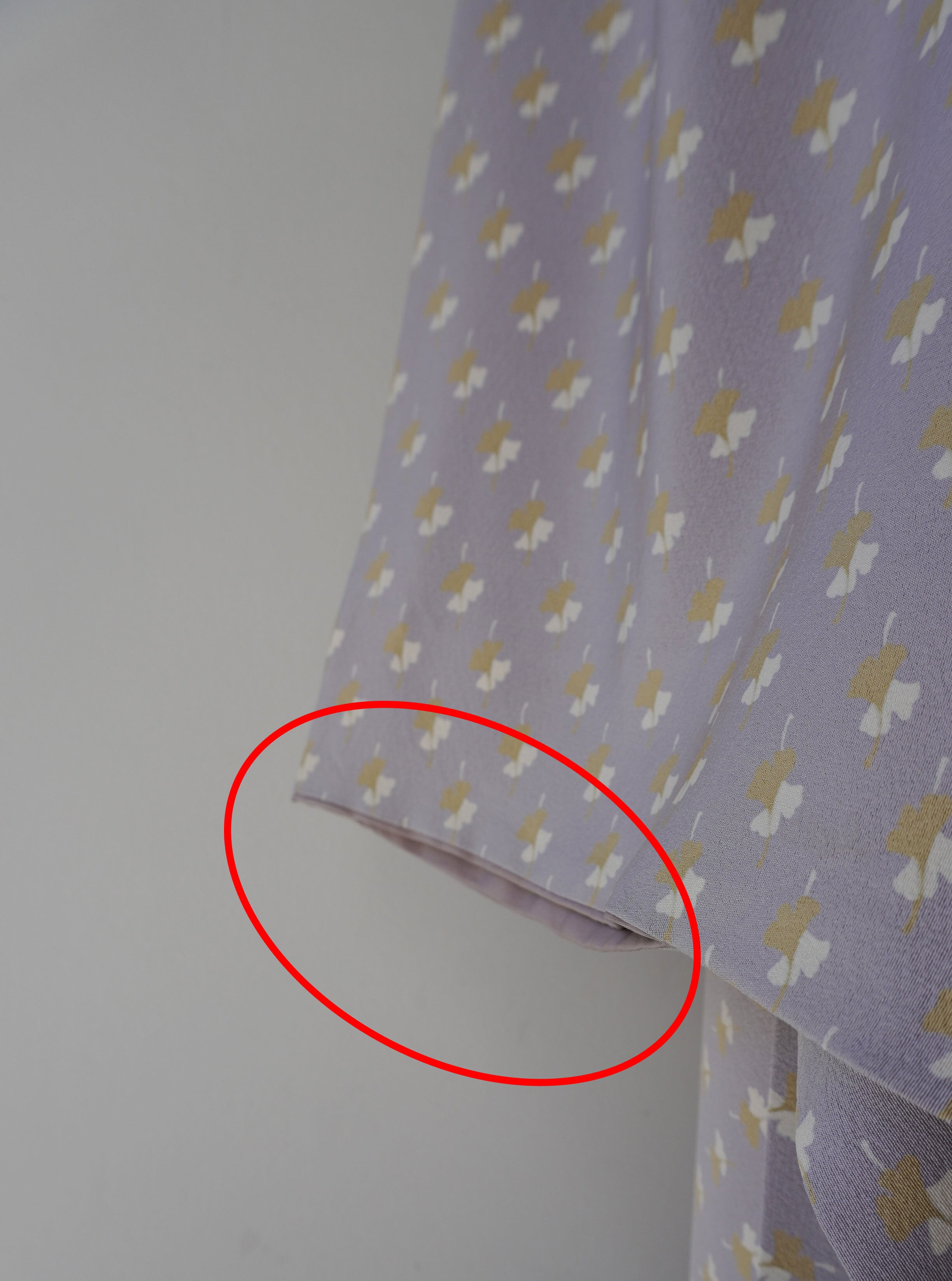 右側の袖口内側に筋跡箇所がありますが