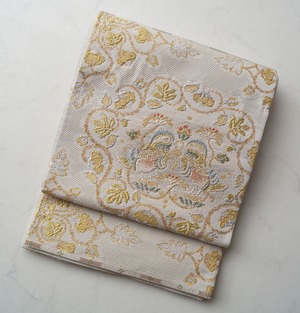 【ふくろ 帯】生成り地 正倉院向鴛鴦唐華文 ふくろ帯