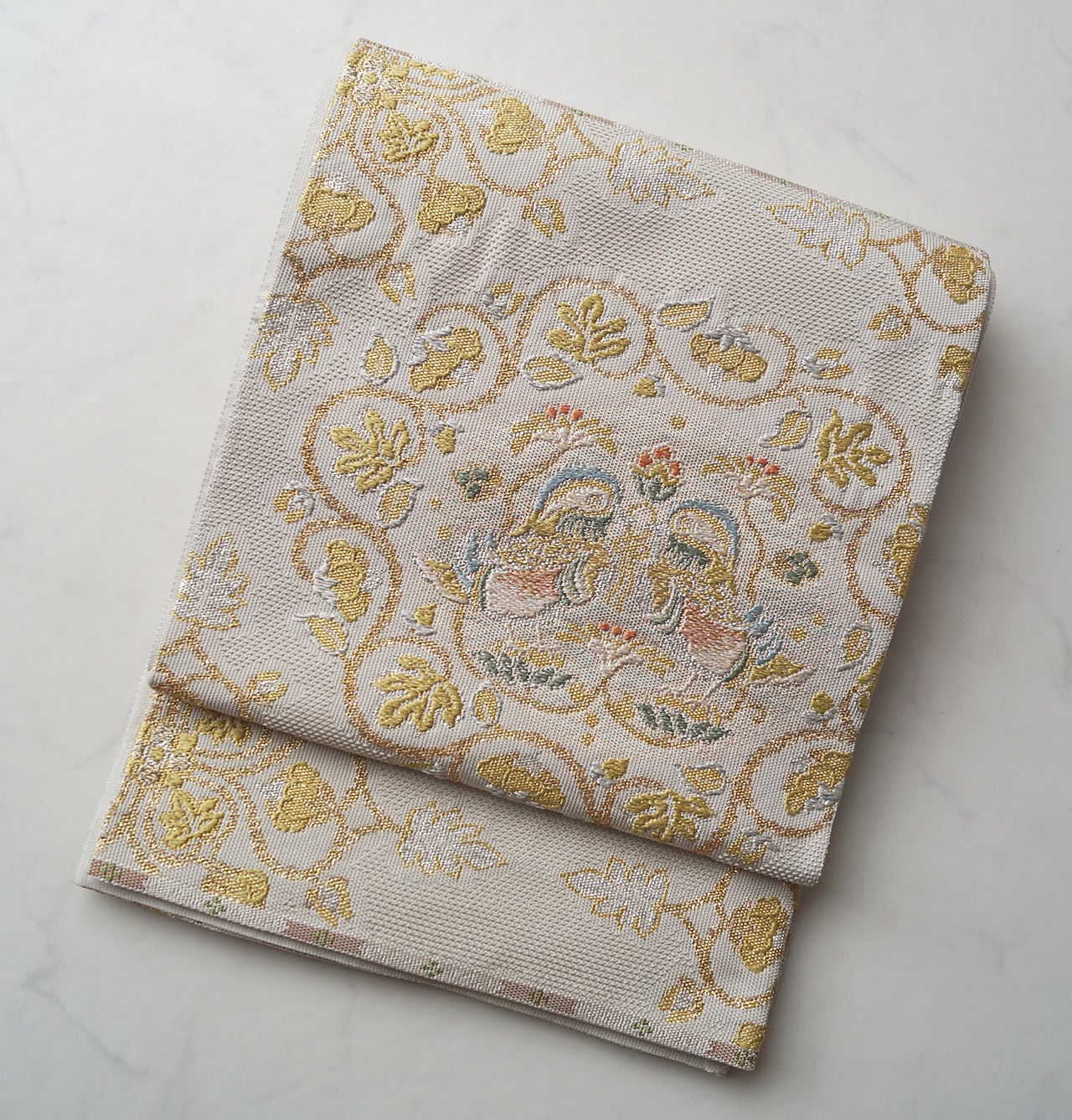 生成り地、正倉院向鴛鴦唐華文の