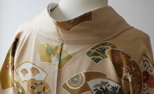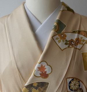 【袷】銀座越後屋扱い 飴色地 地紙文 訪問着