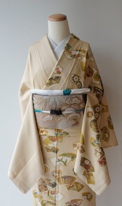 様々な文様が染められた訪問着です。