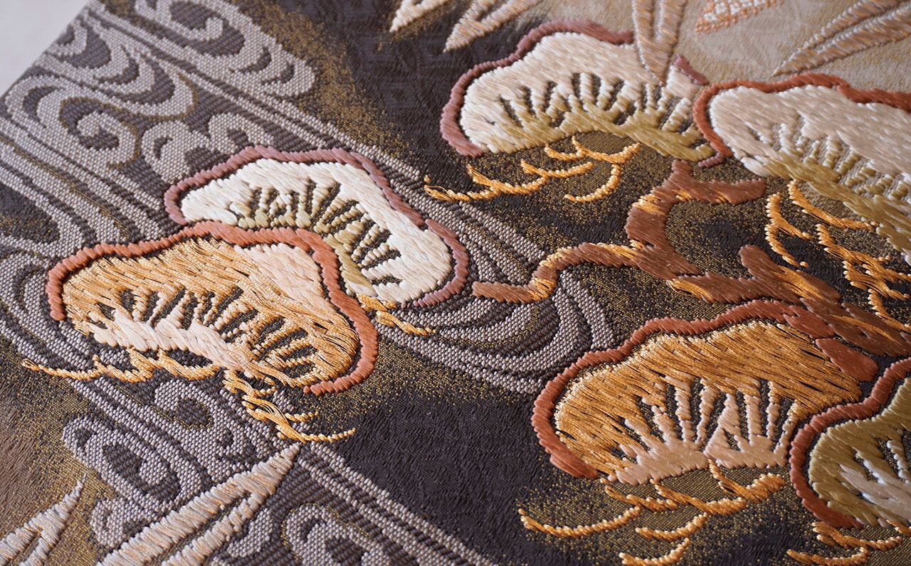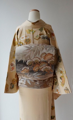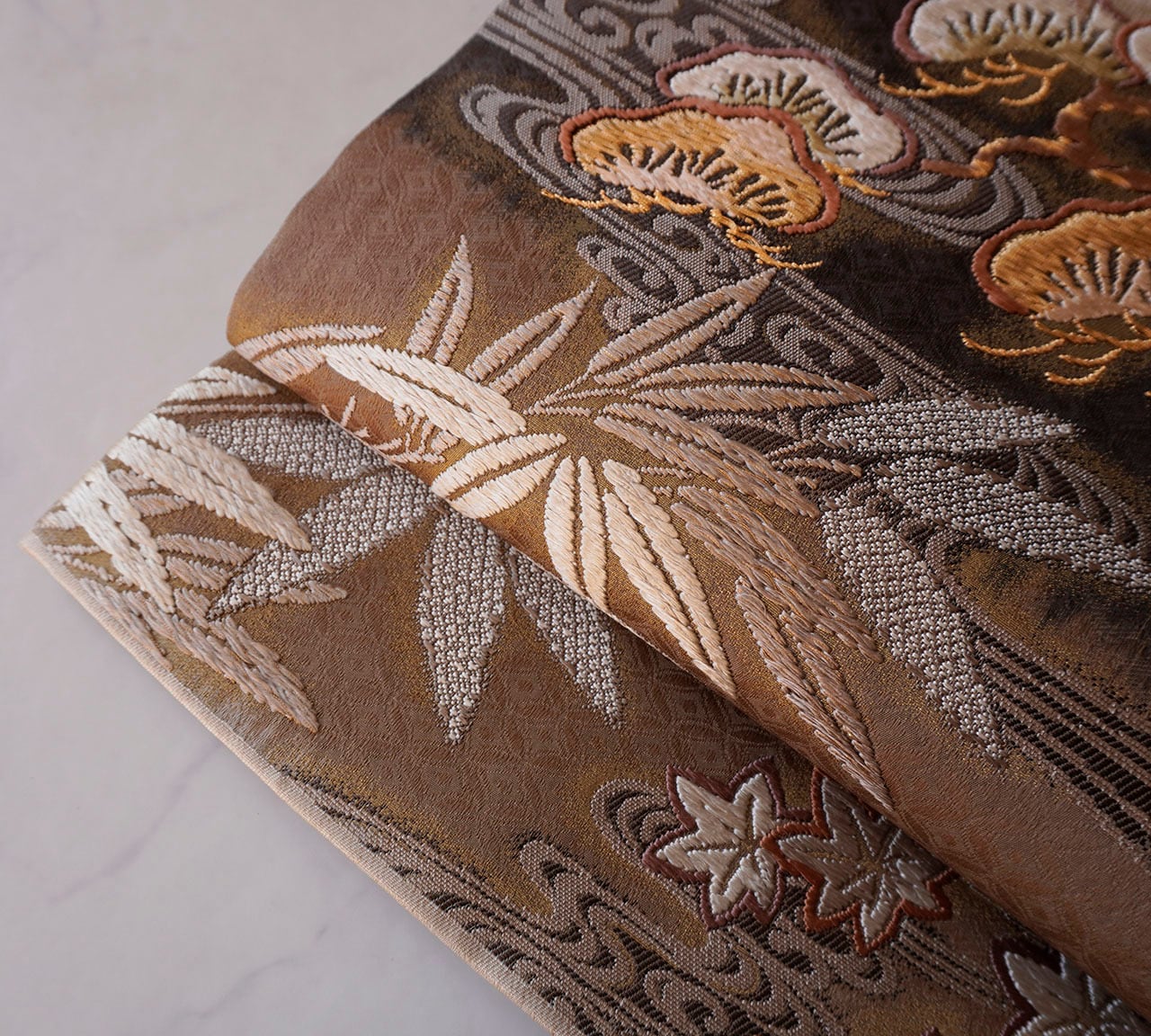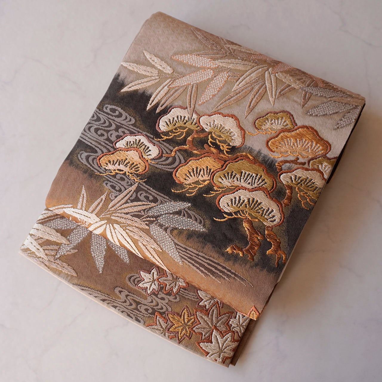 【ふくろ帯】加納幸 七宝繋ぎ地紋に松・笹・紅葉文 ふくろ帯