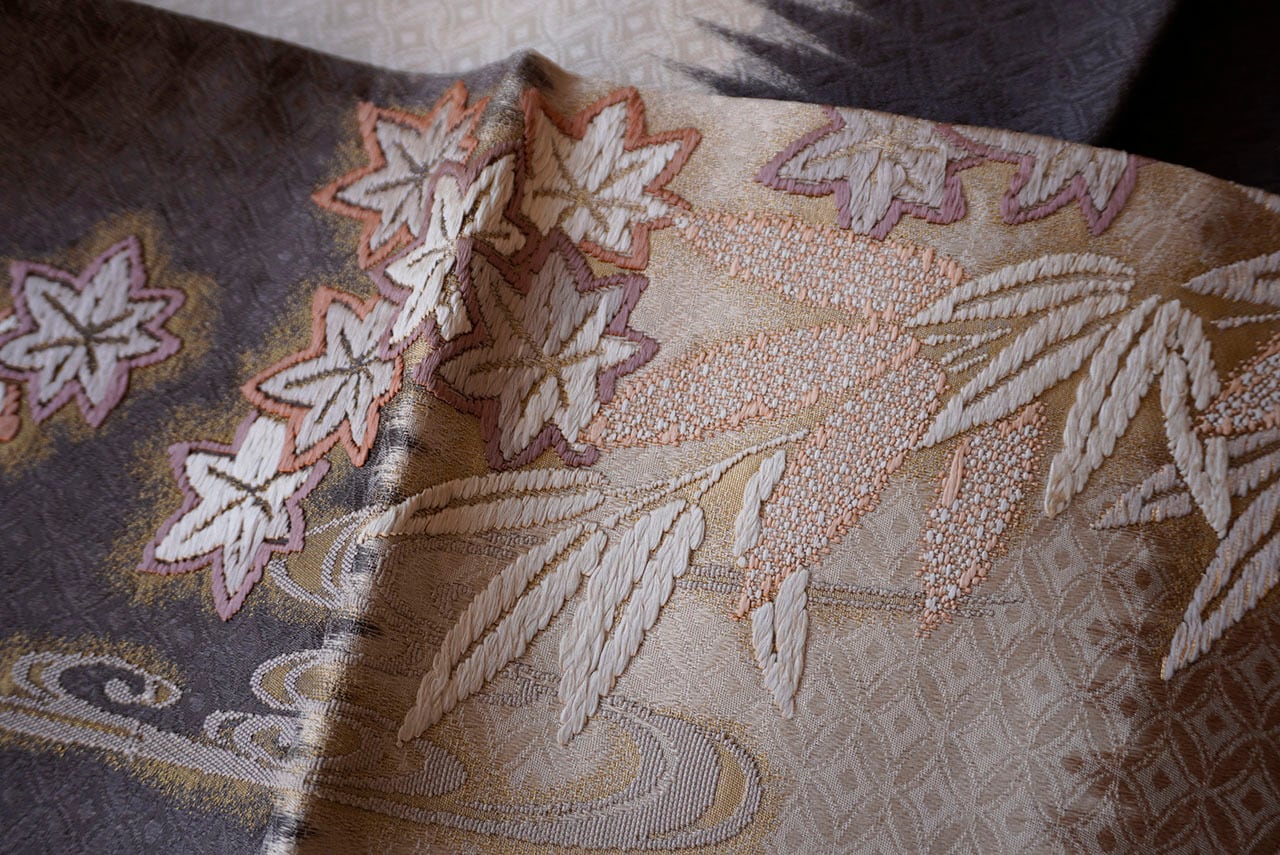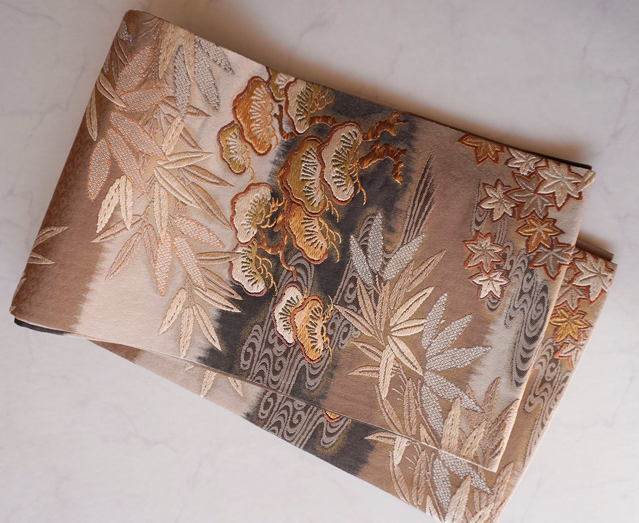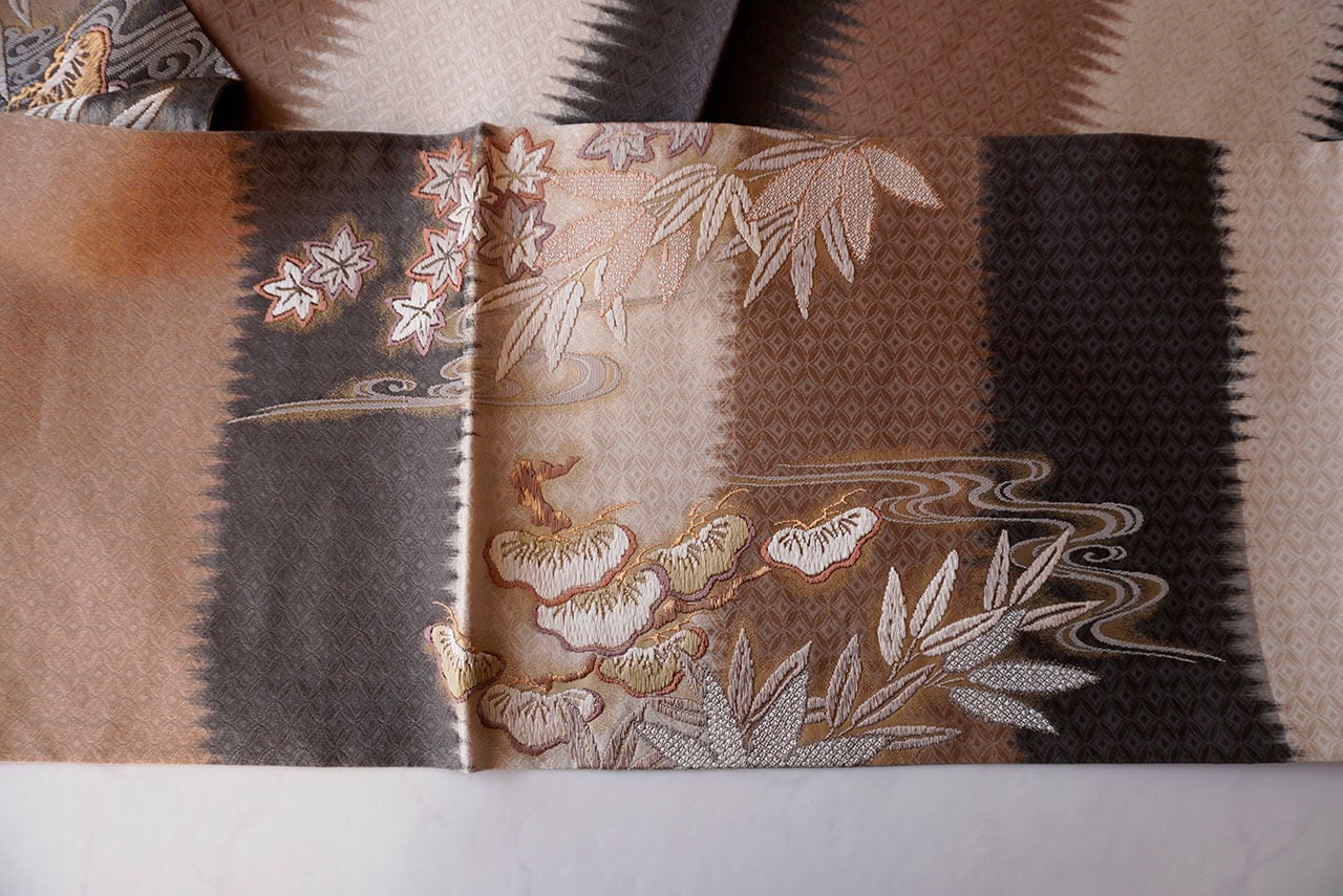 七宝繋ぎの地文に松、笹、紅葉、流水文