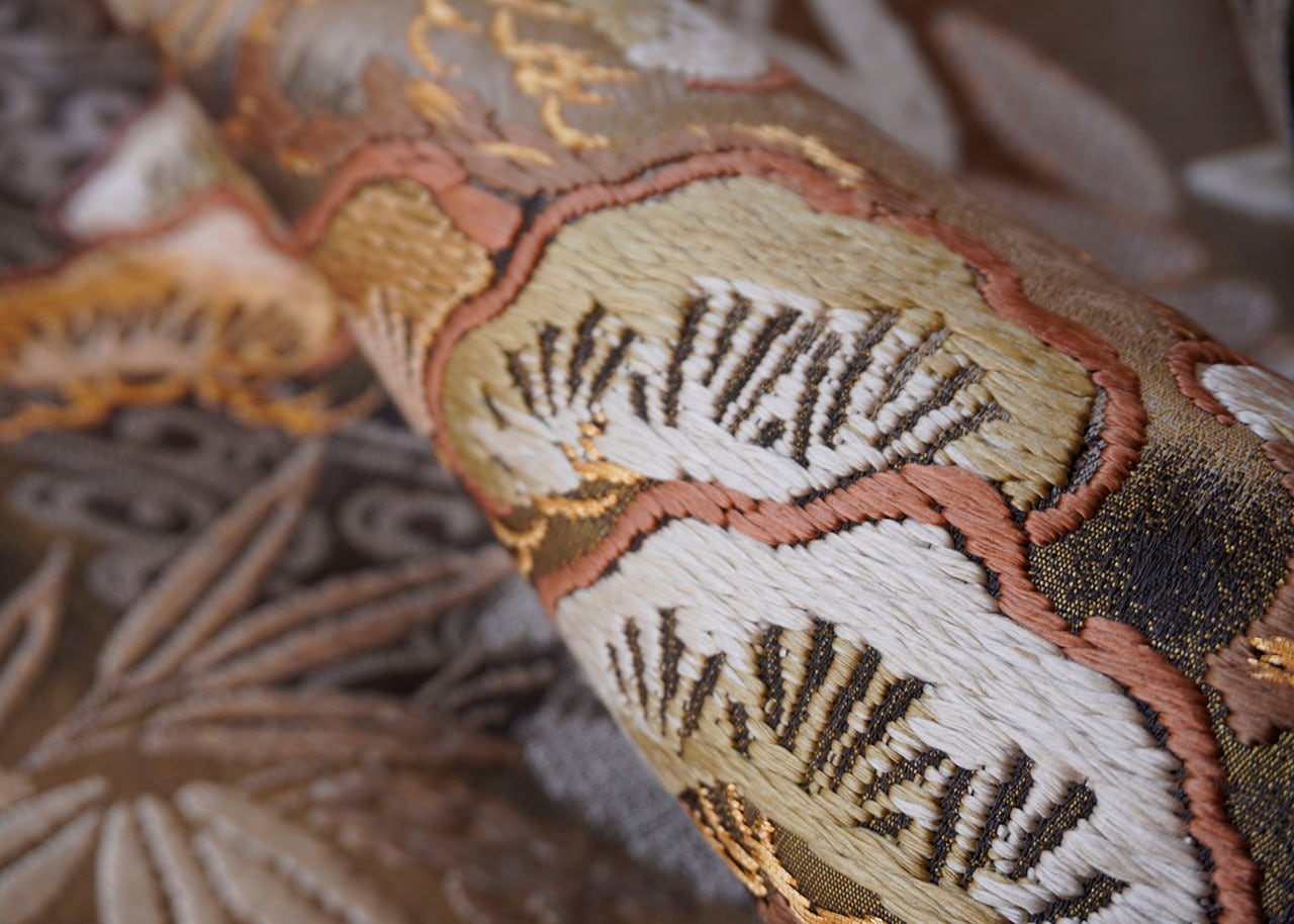 豊かな刺繍柄がすっきりと浮き立って見えます。