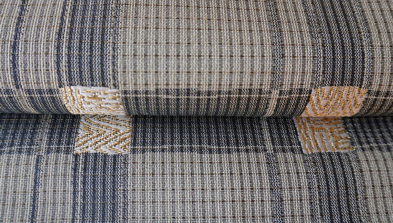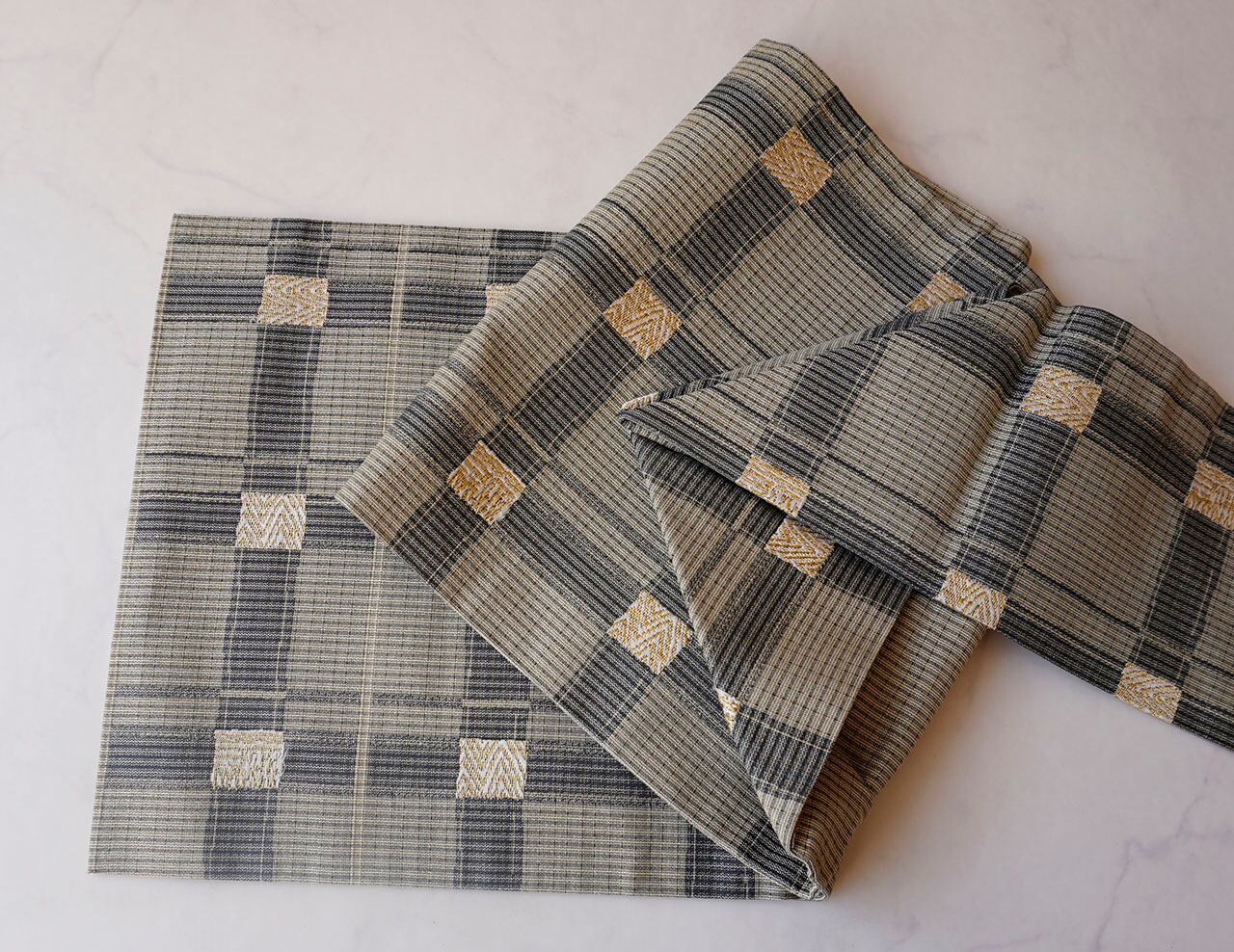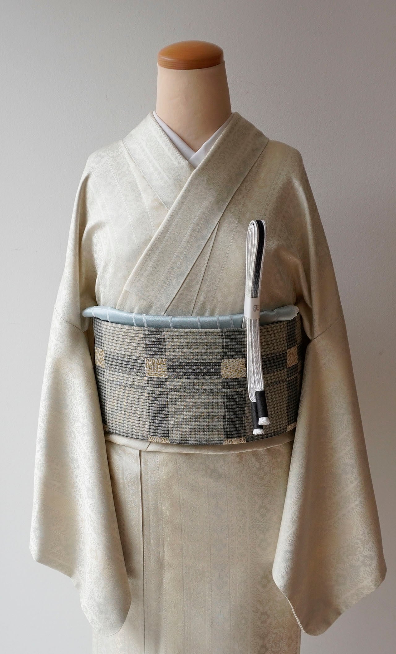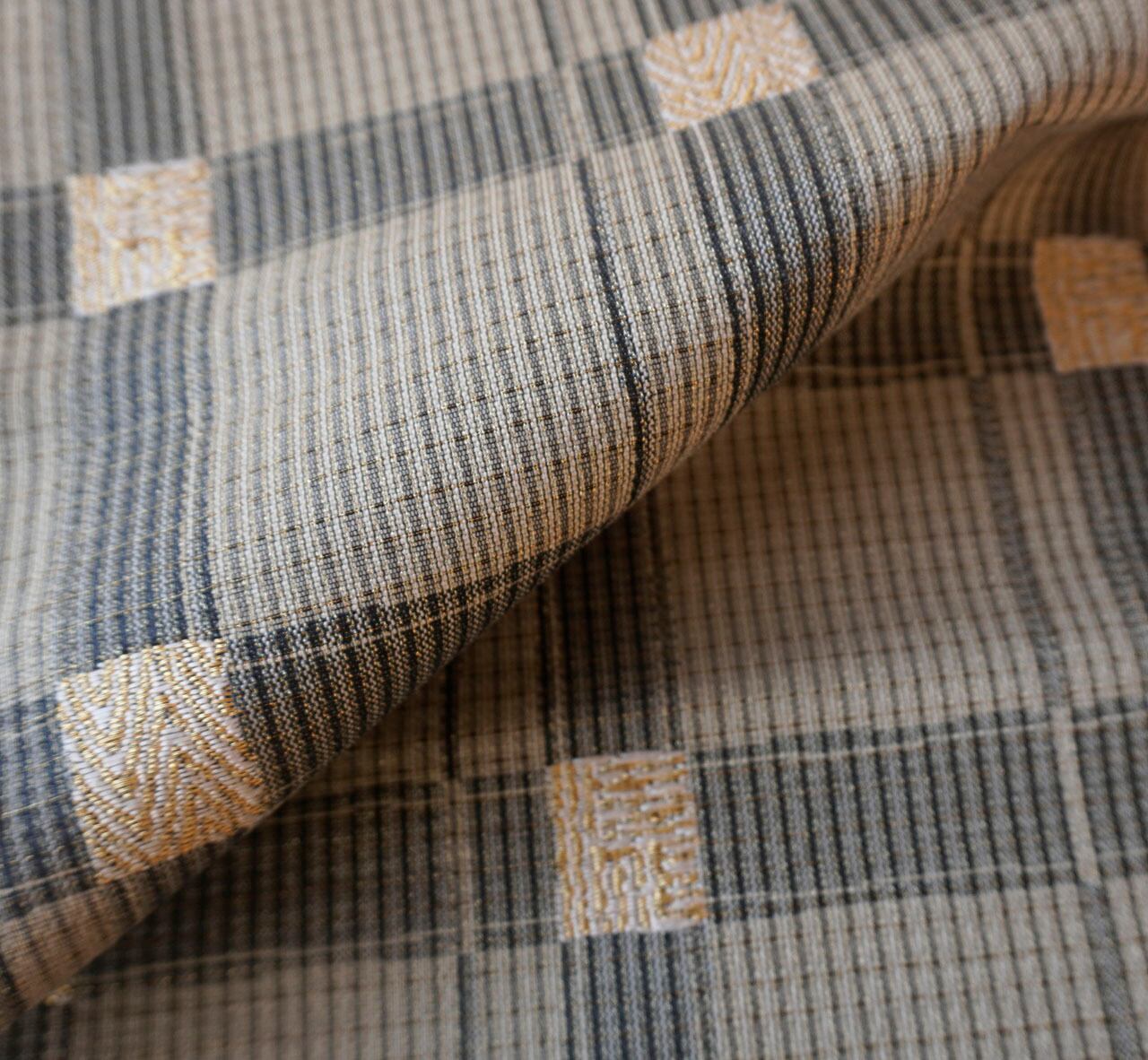 【なごや帯】絹鼠地 変わり格子文 なごや帯