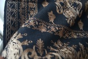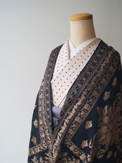 黒色の地色に穏やかな光沢のある桑染色の刺繍