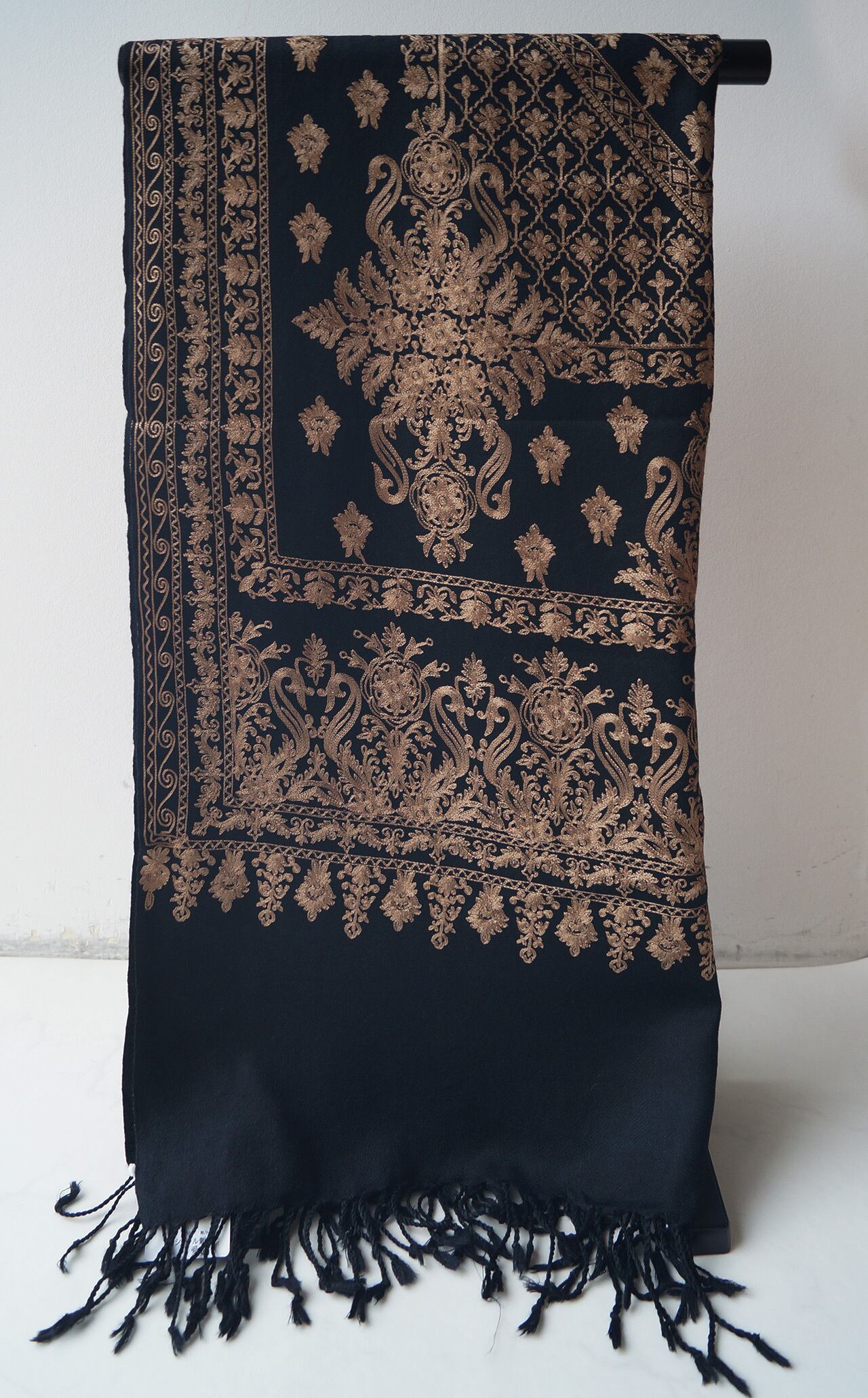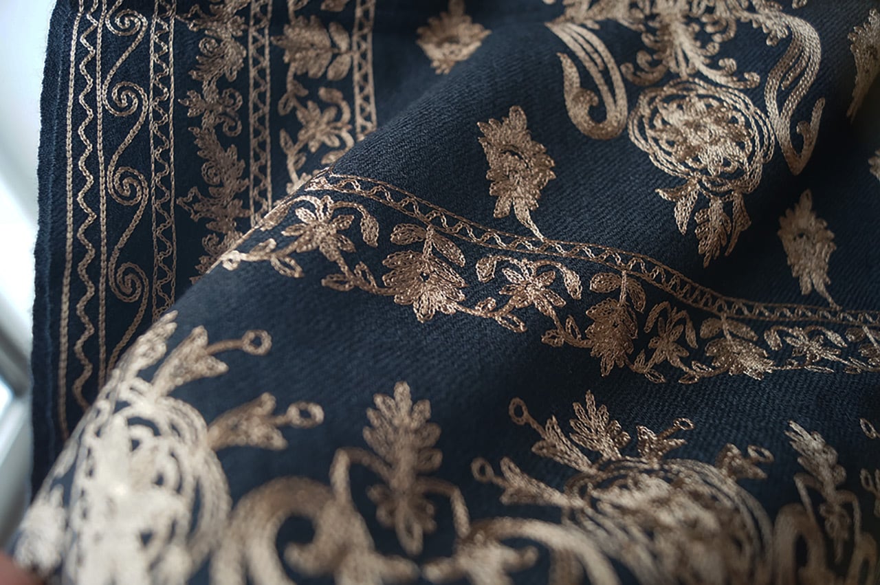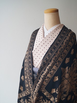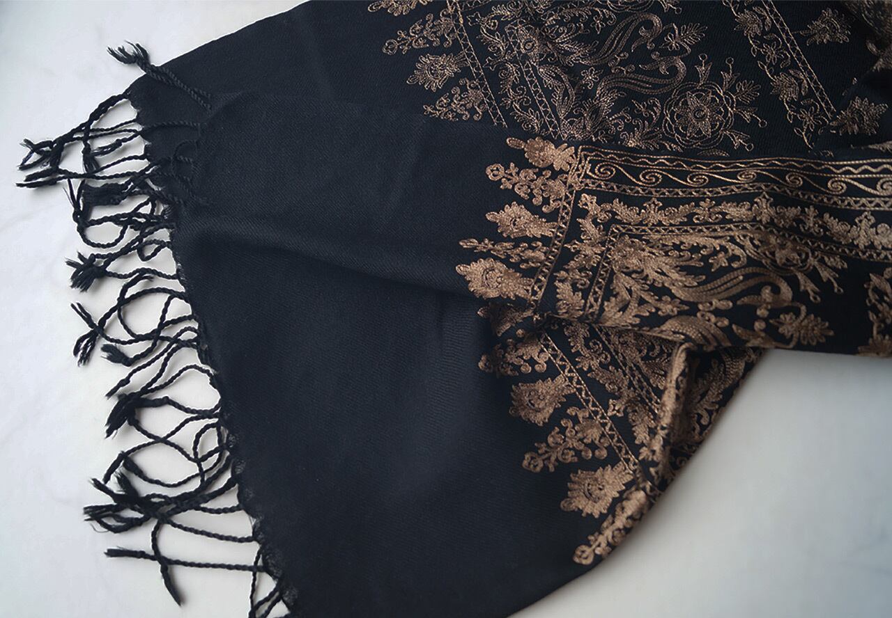 【ストール】カシミール刺繍 黒色×桑染色 251127A