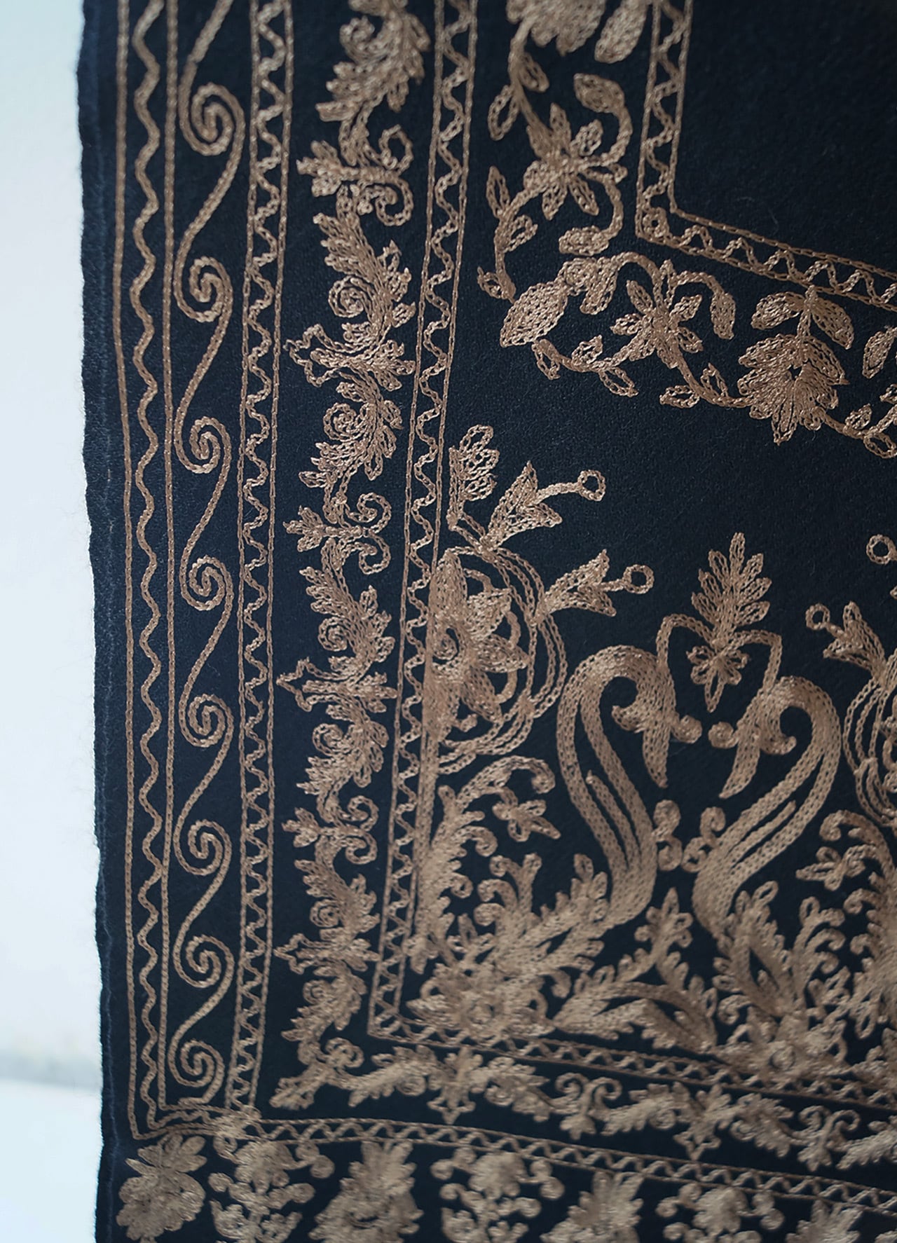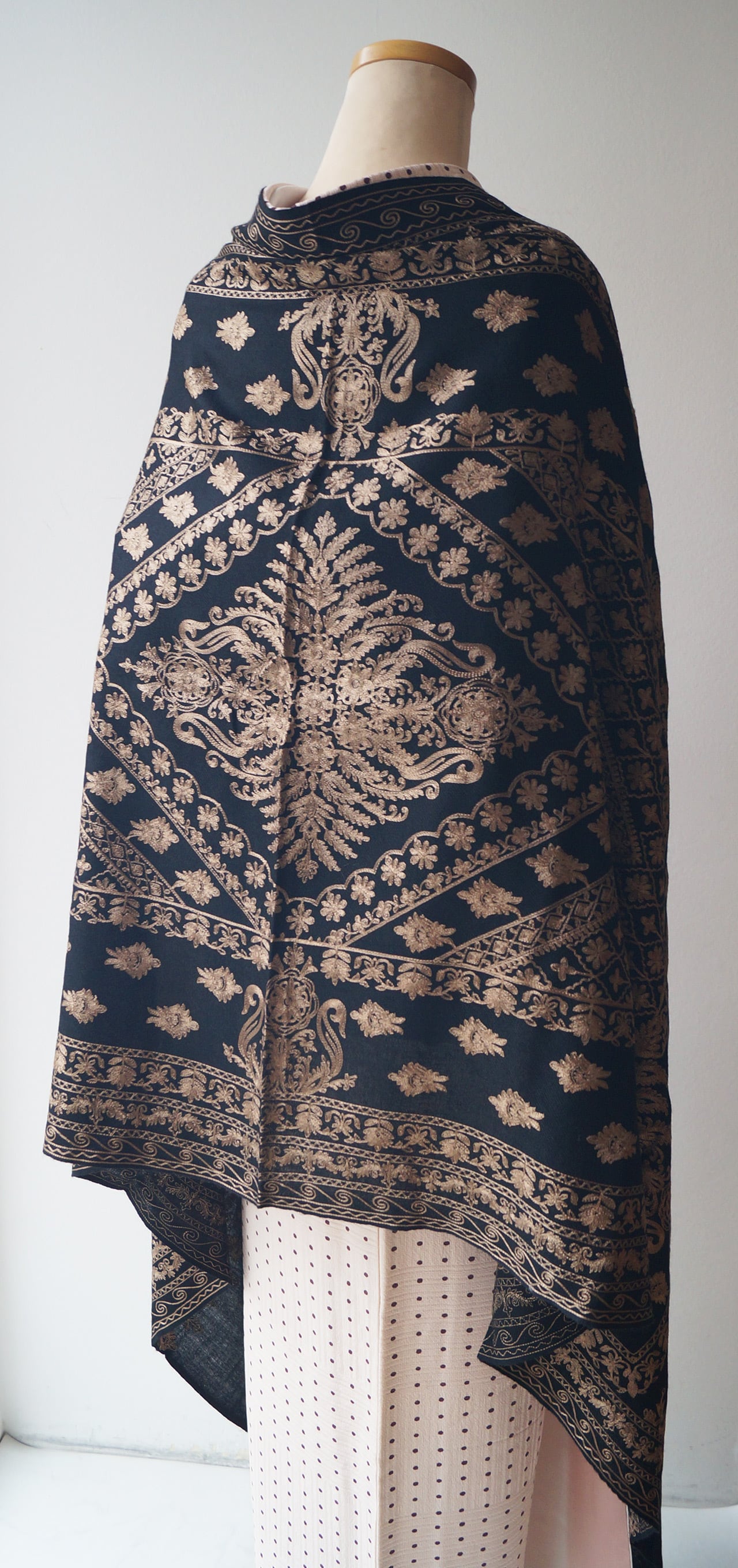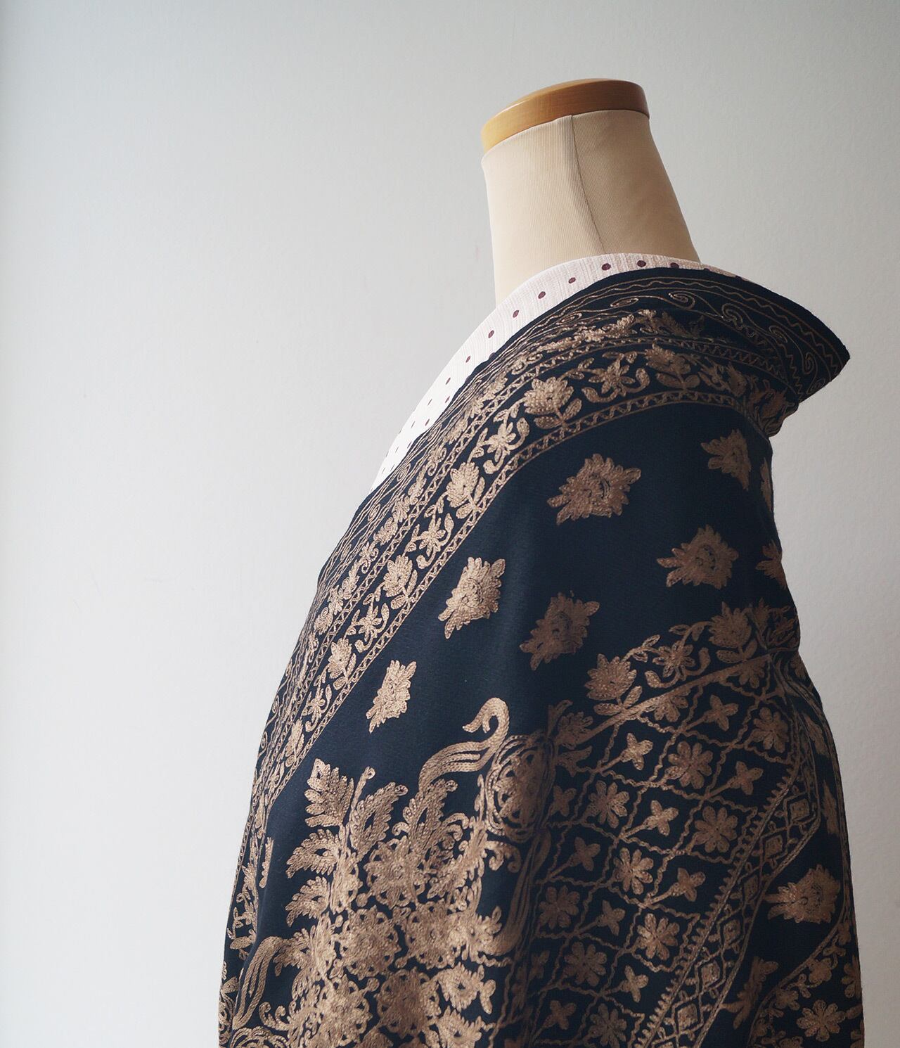 【ストール】カシミール刺繍 黒色×桑染色 251127A