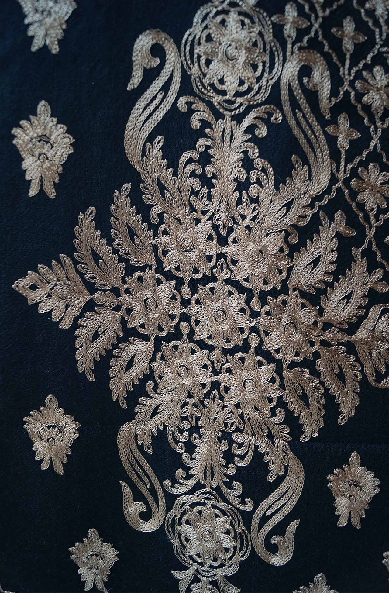 凝った刺繍で少し厚みが加わった、程良い落ち感があり