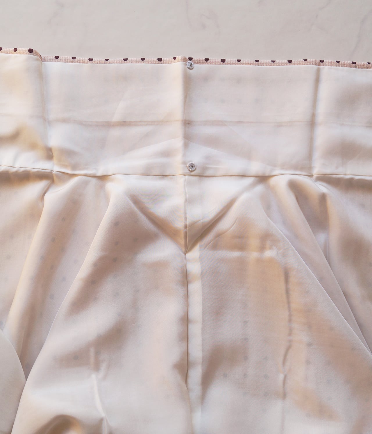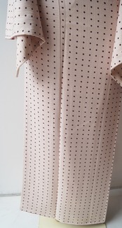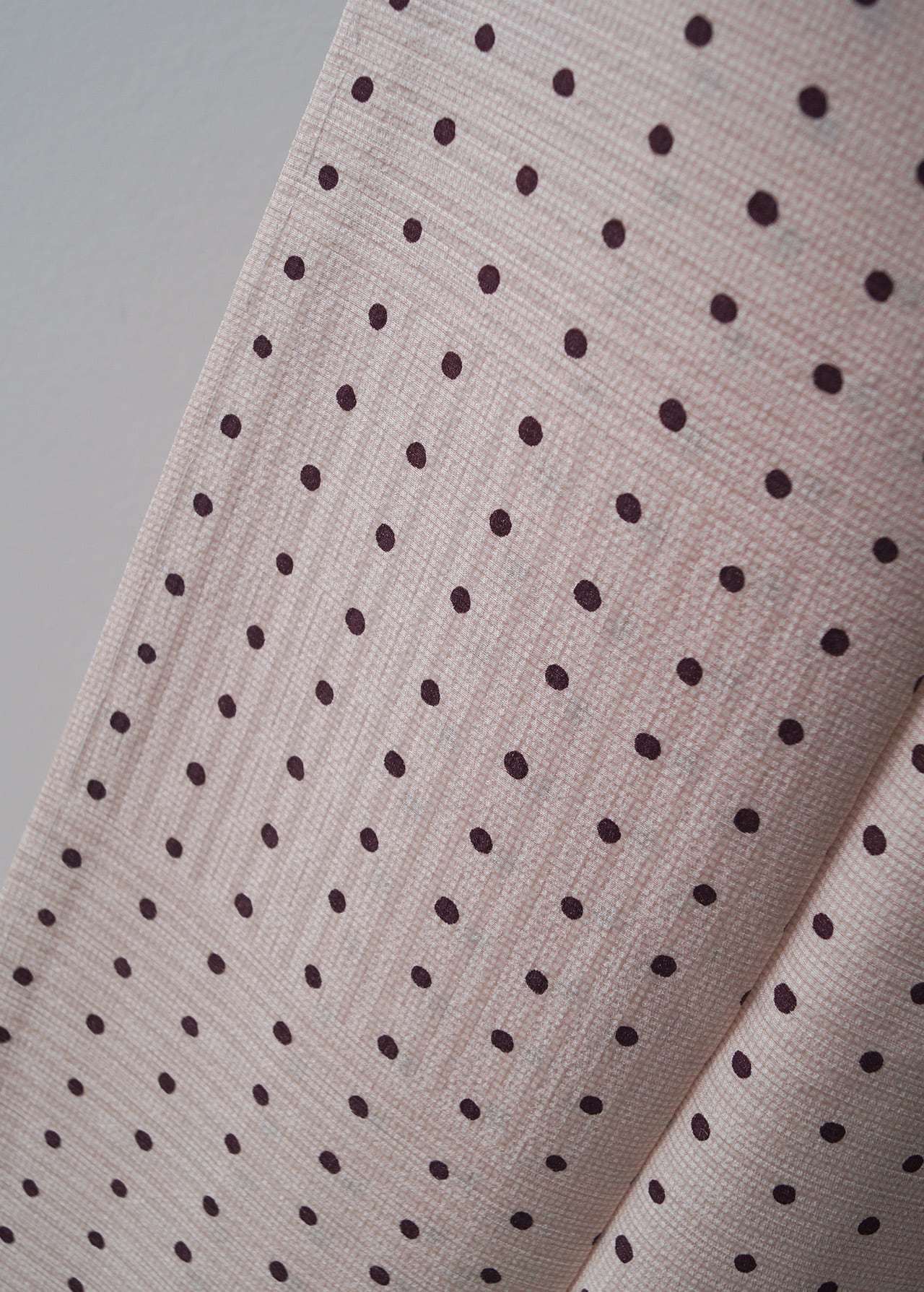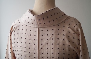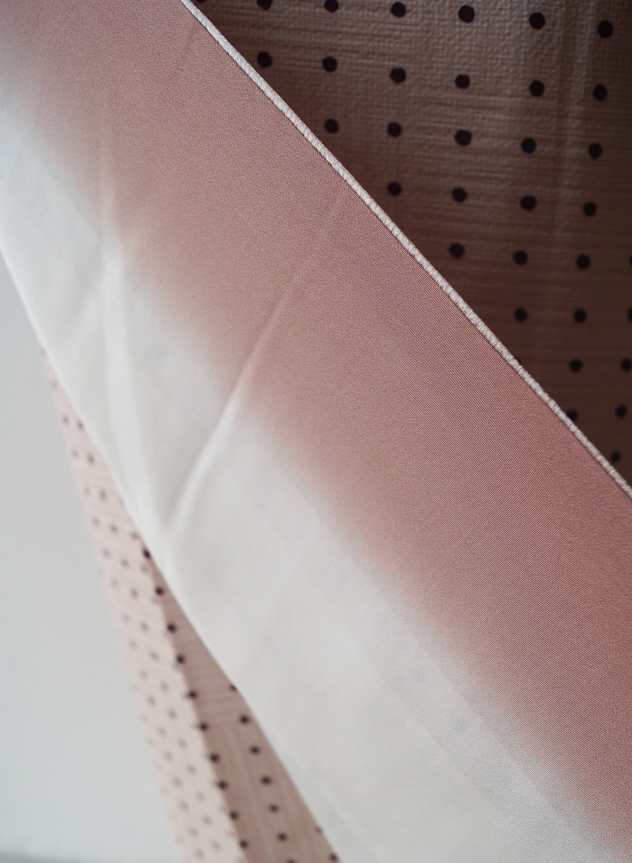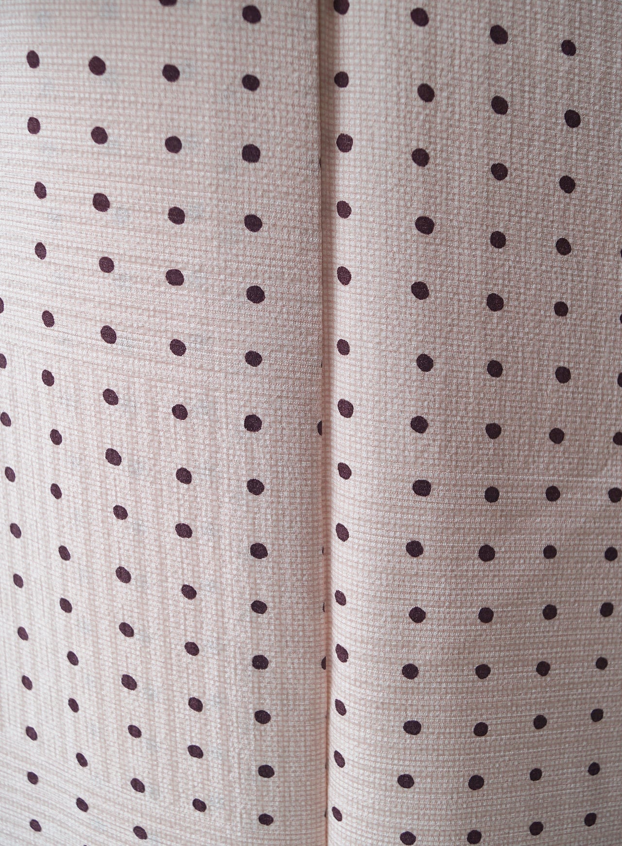 【袷】ピンクベージュ色 角通しにドット文 京友禅 小紋