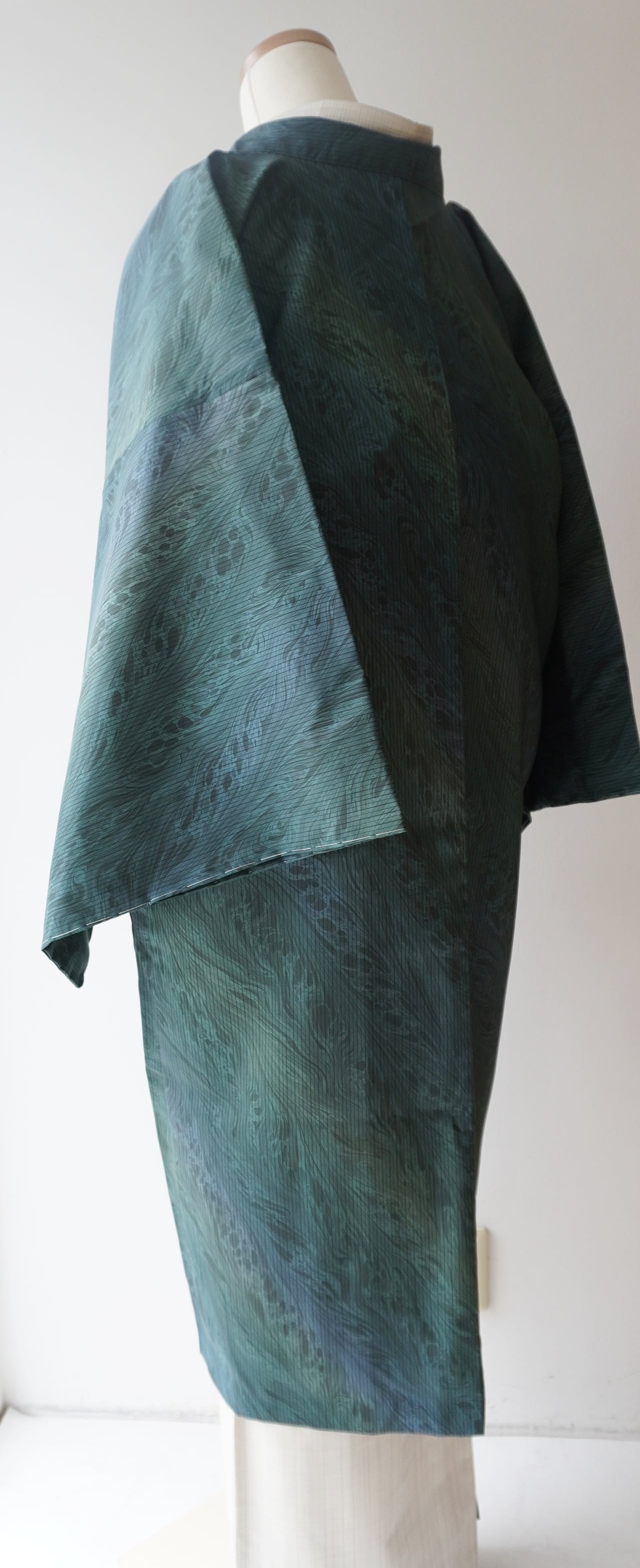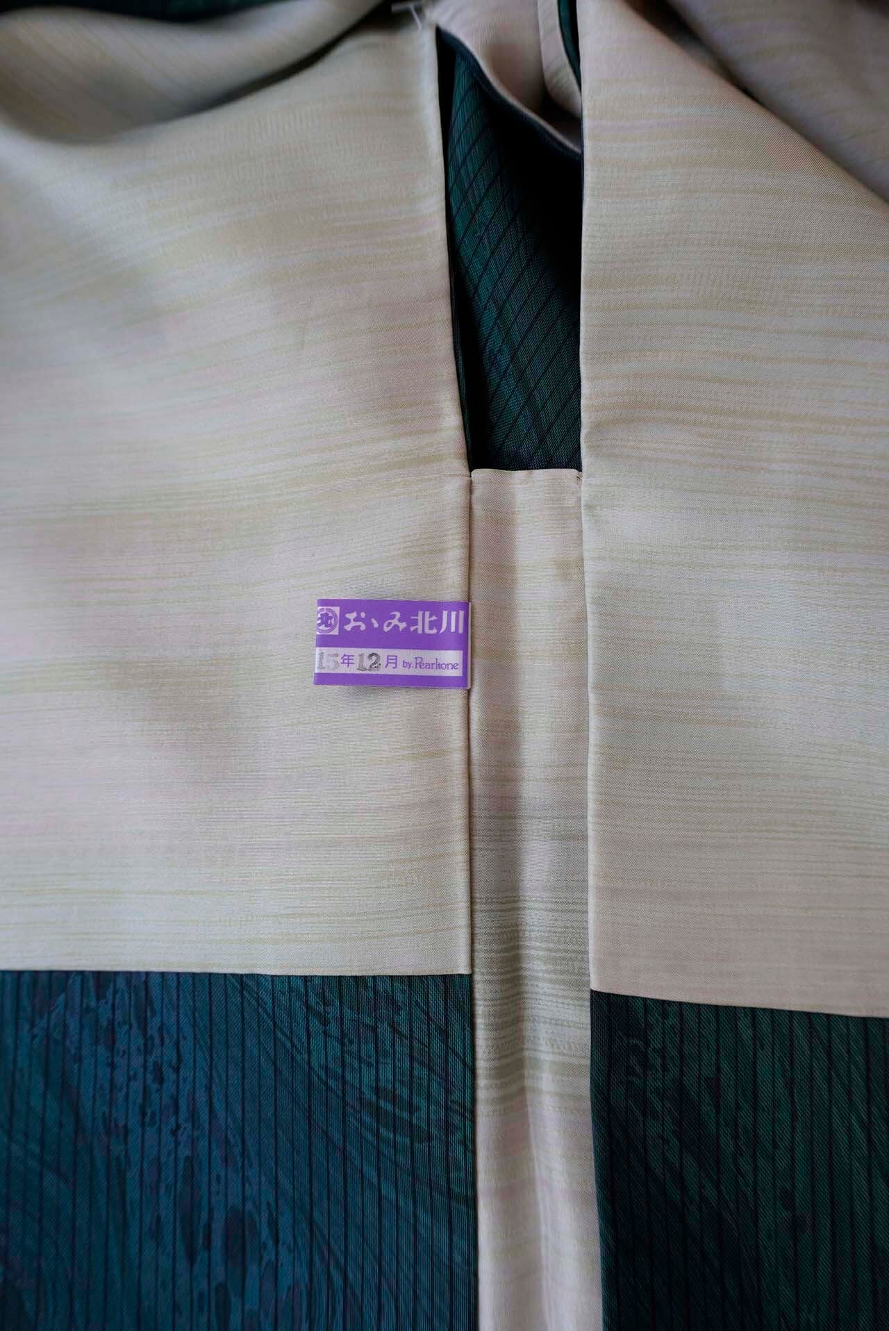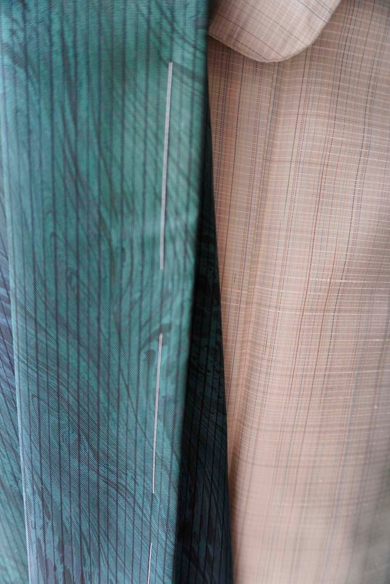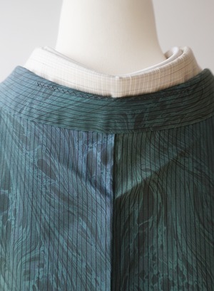 紬特有の繊細な光沢が、角度により青みや緑みを際立たせ、