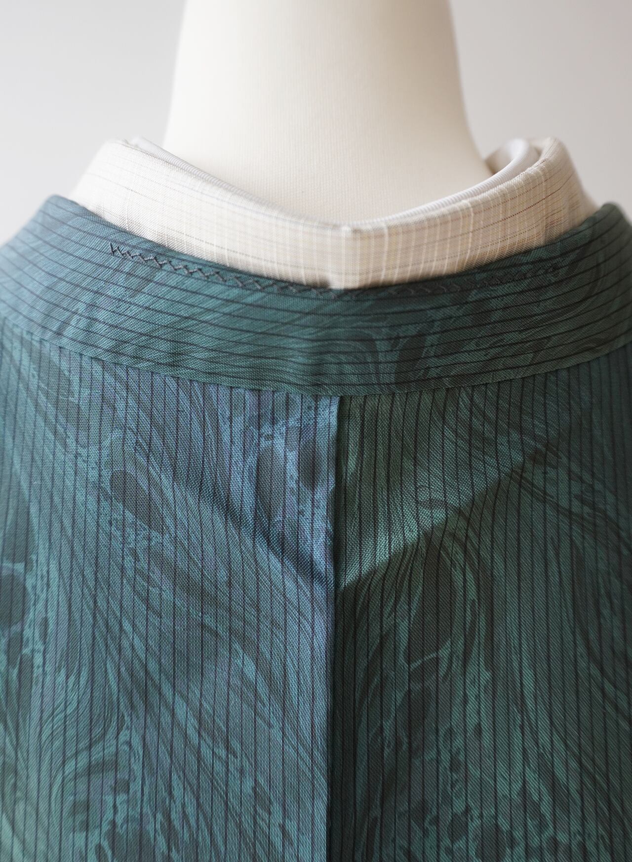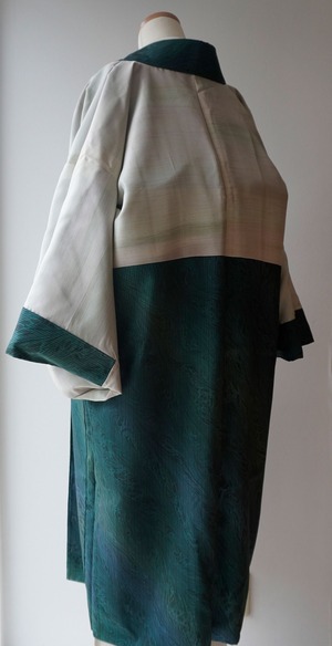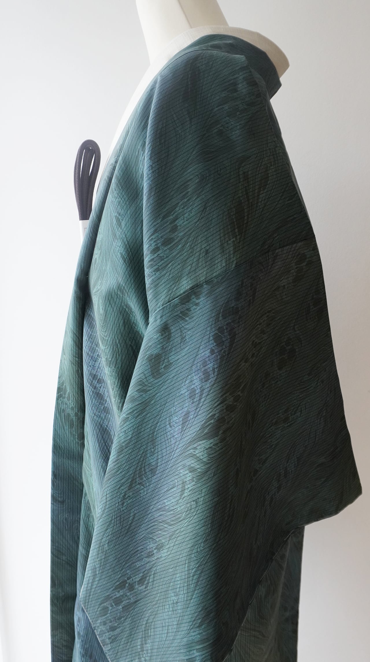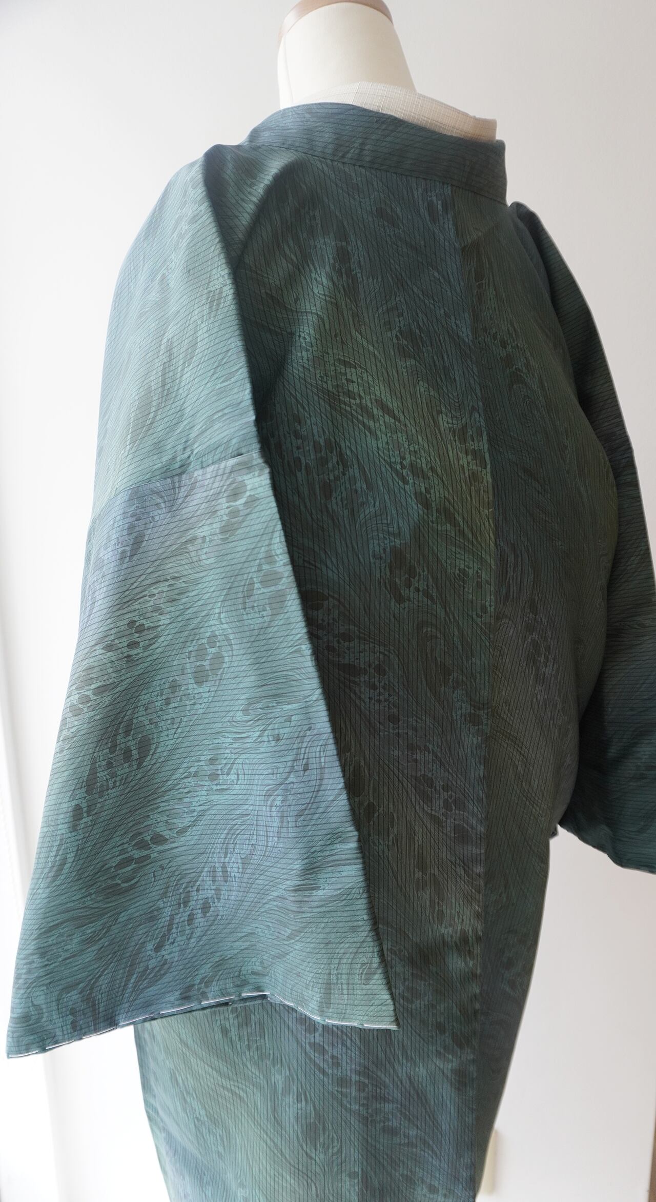 紬特有の繊細な光沢が、角度により青みや緑みを際立たせ、