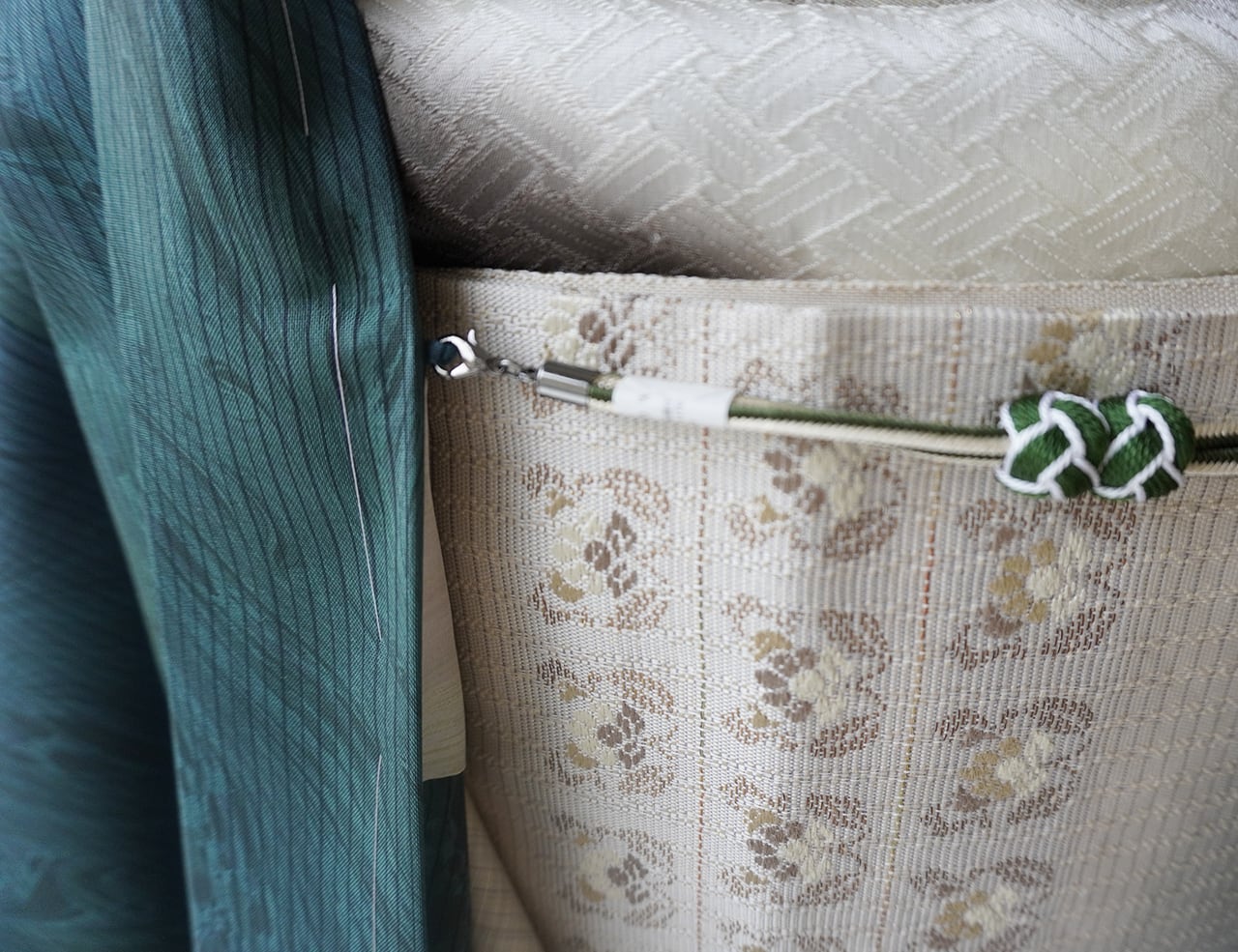 生成り地にピンクとグリーンのほのかな縞