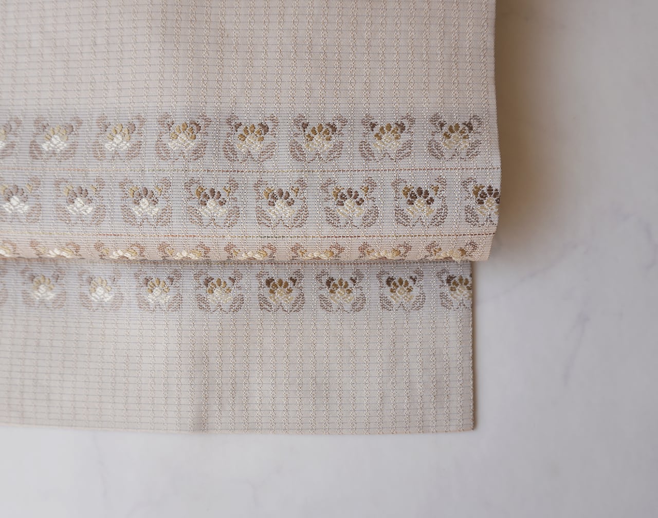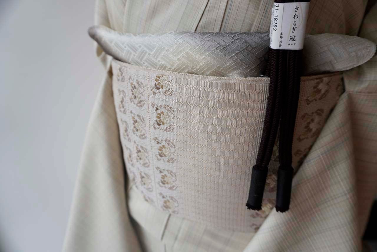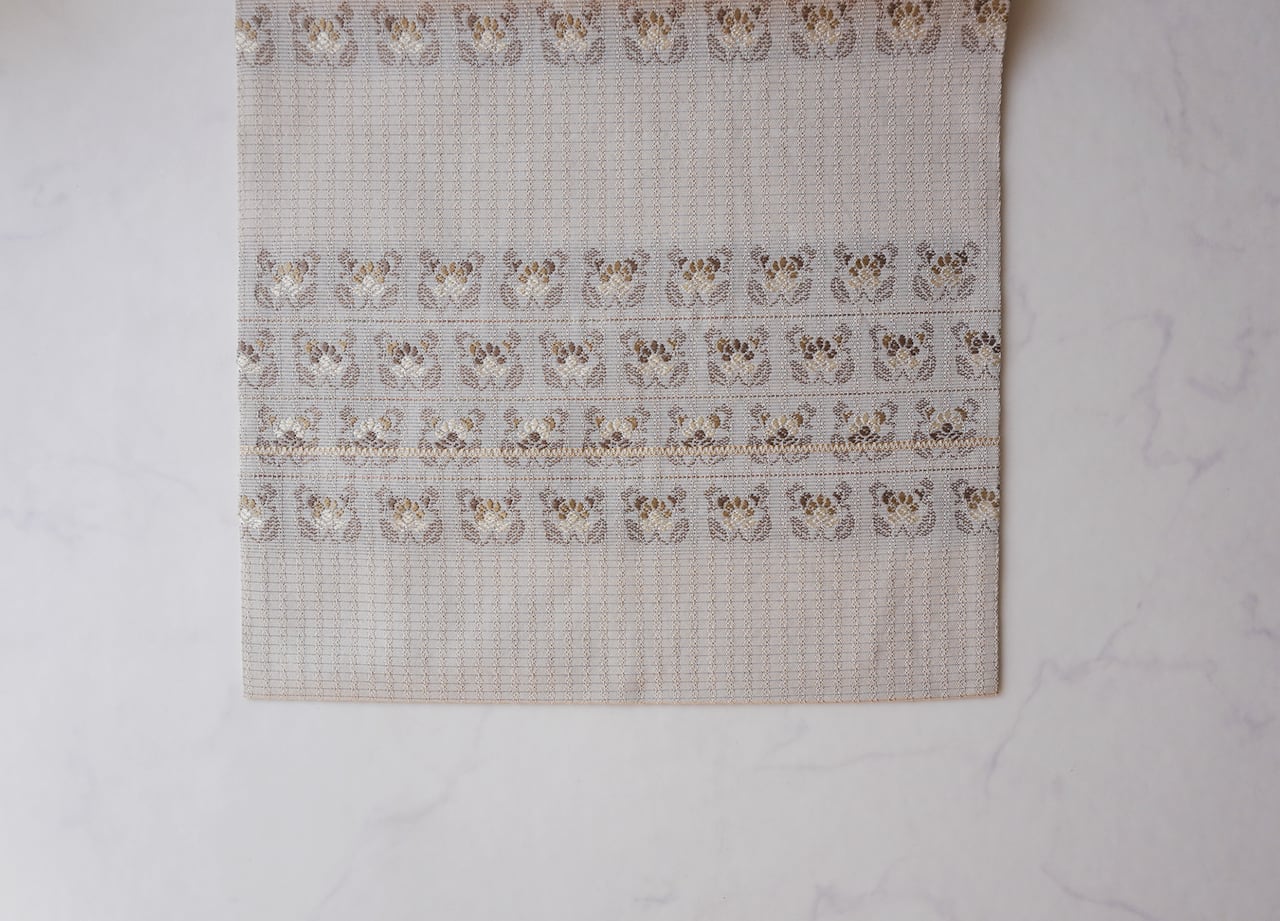 帯全体に繊細なリズムを刻む帯地に、