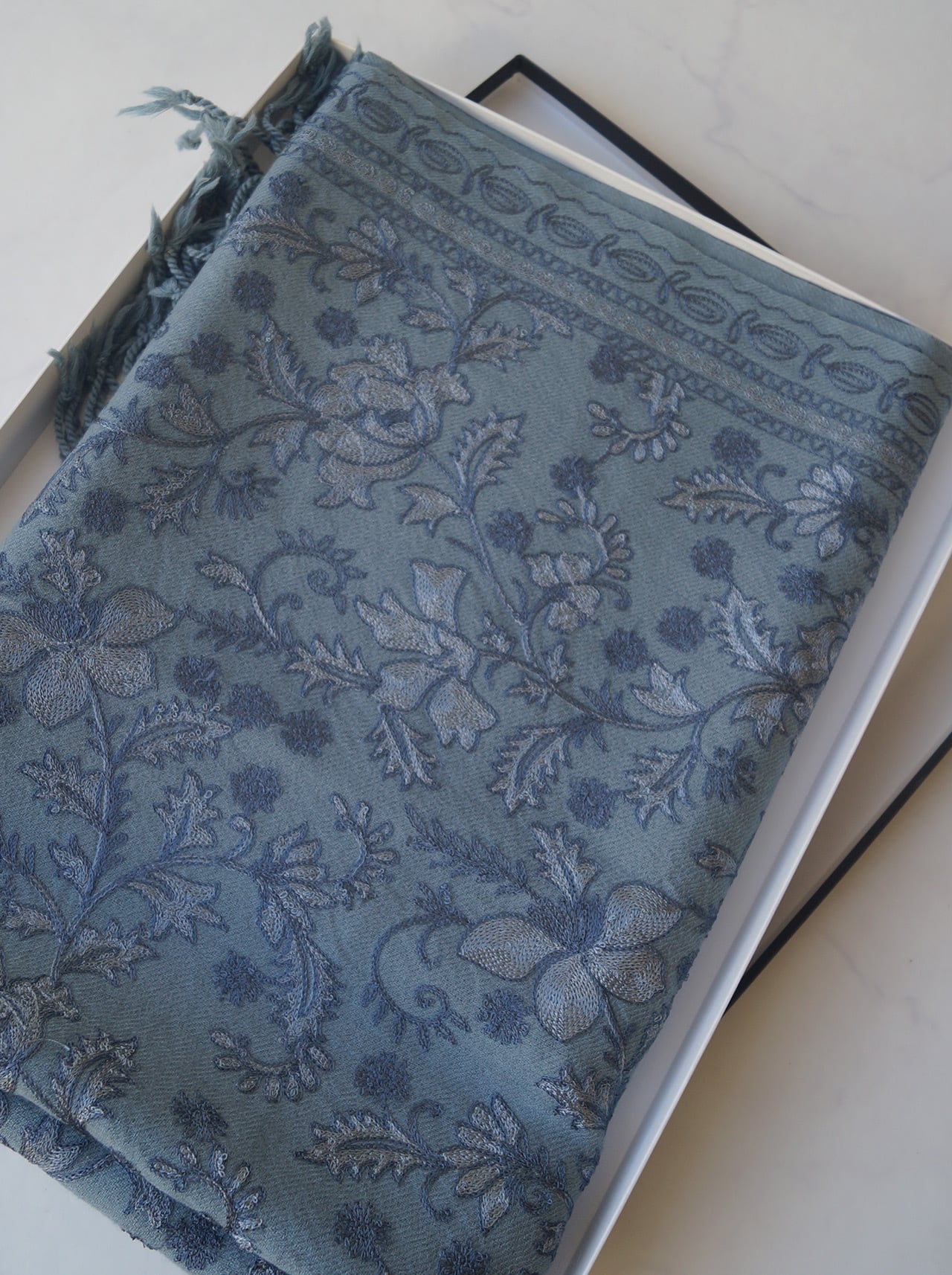 凝った刺繍で少し厚みが加わった、程良い落ち感があり