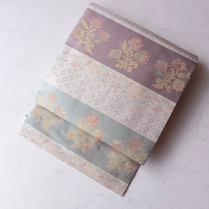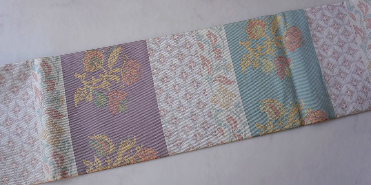 【なごや帯】抽象花・七宝繋ぎ横段文 なごや帯