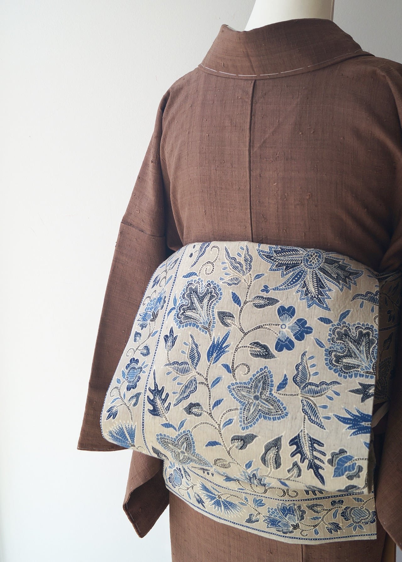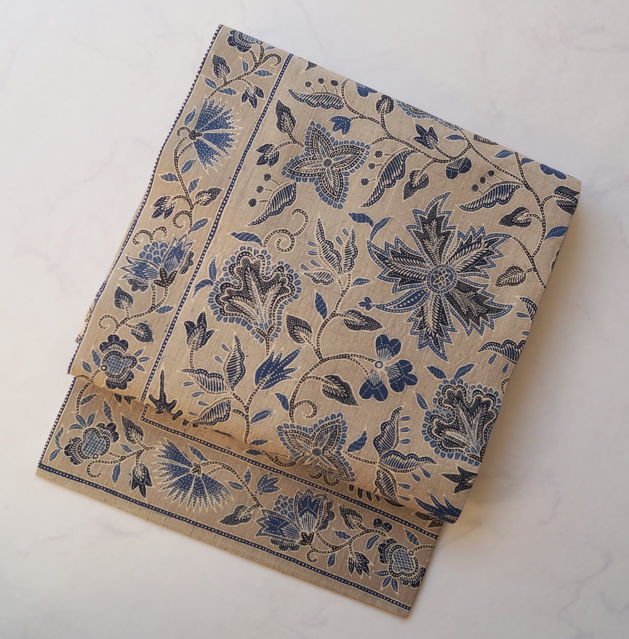 【なごや帯】染織工芸むら田扱い 生紬木版染め 更紗文 なごや帯