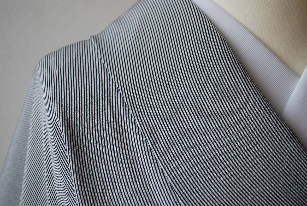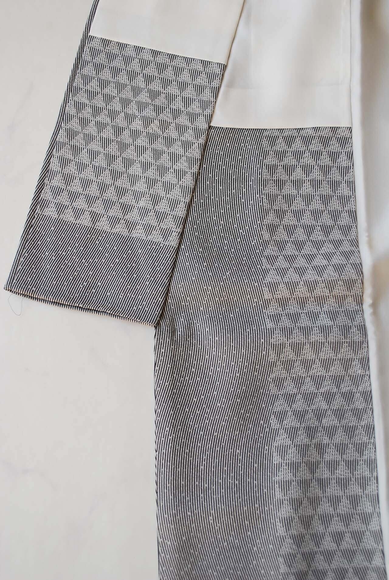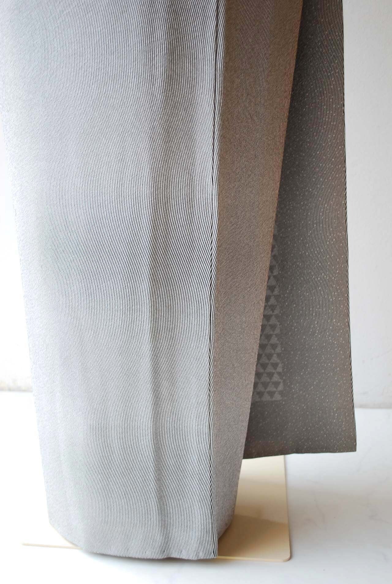 【袷】灰色×黒 よろけ万筋 小紋