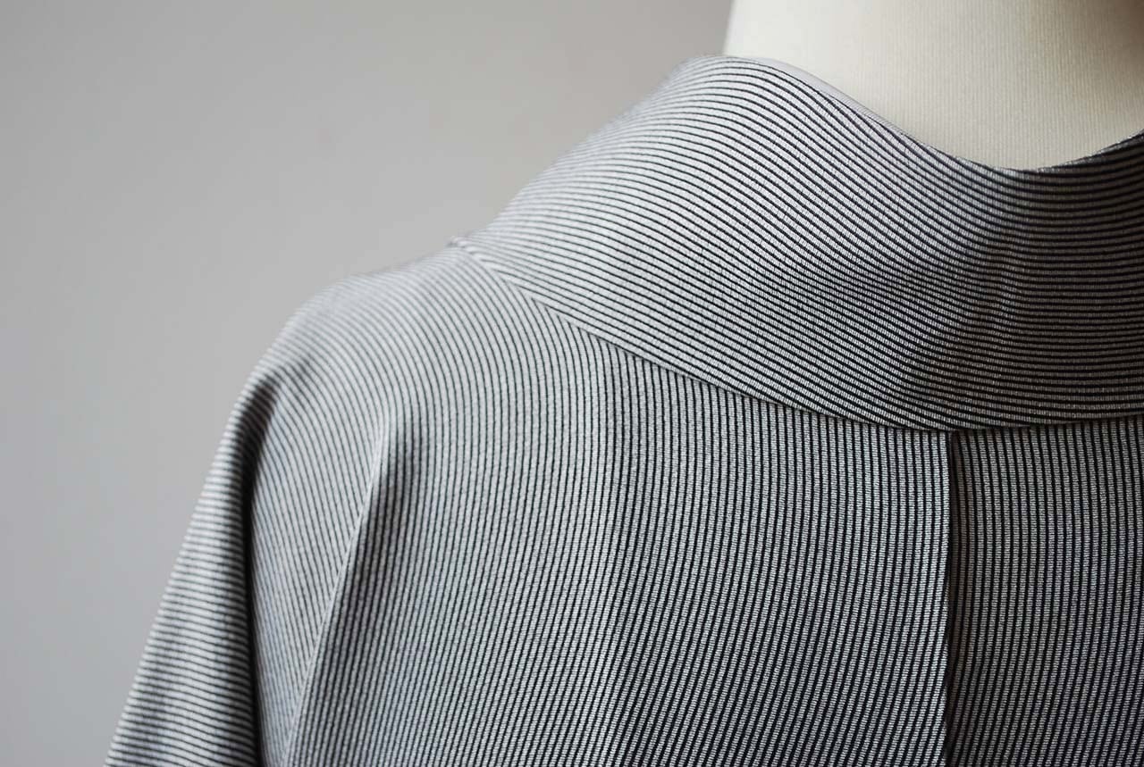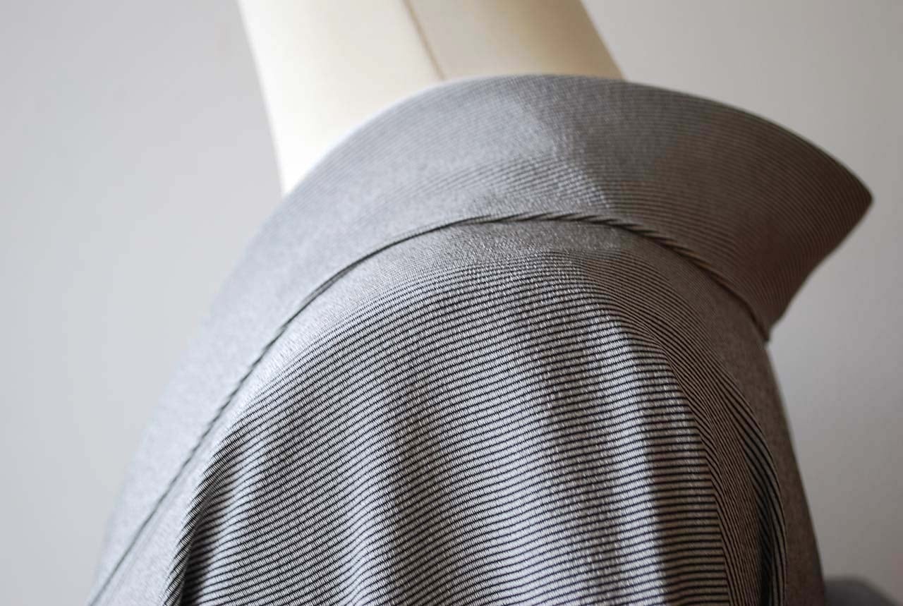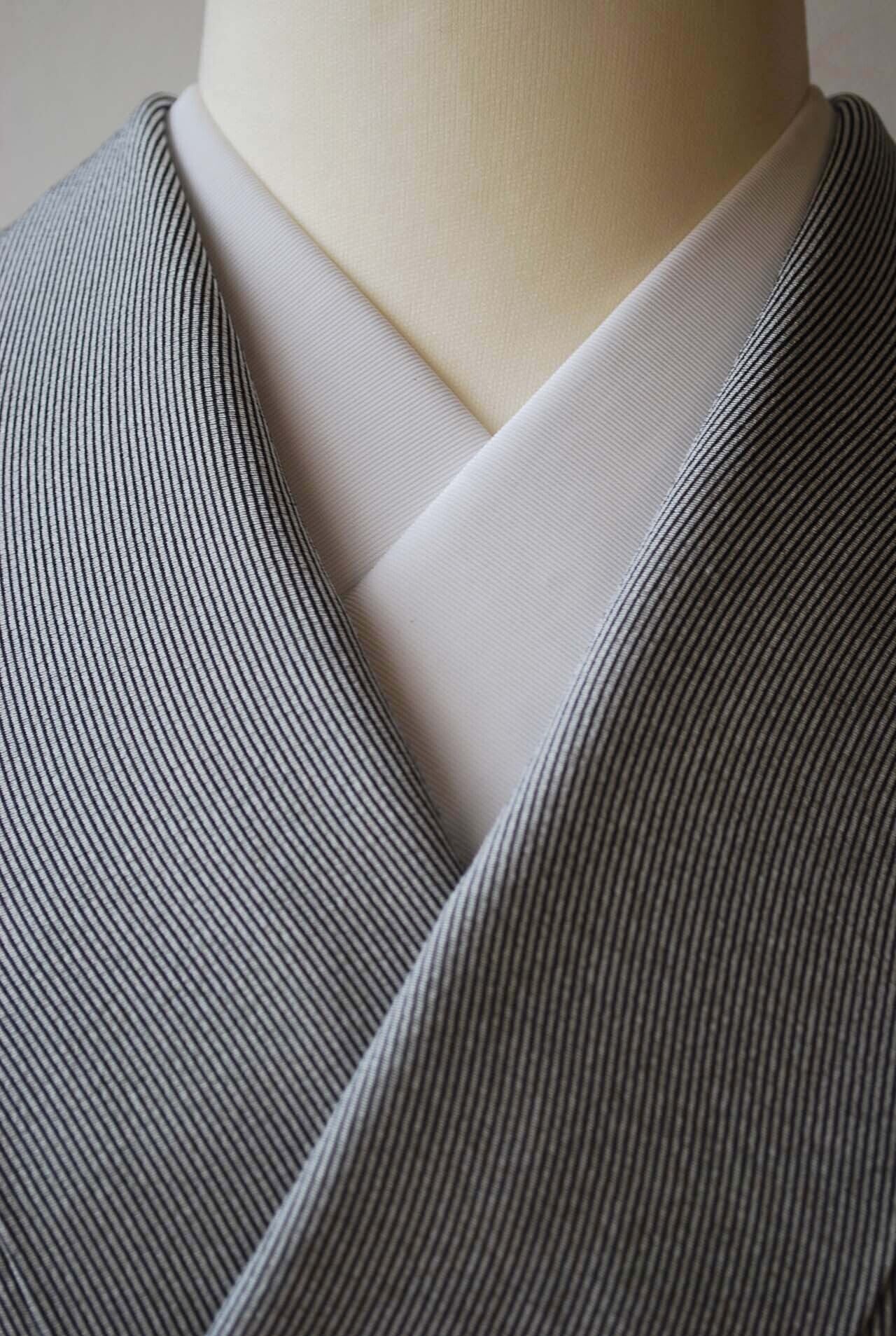 【袷】灰色×黒 よろけ万筋 小紋