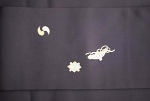 【なごや帯】紫黒色地 源氏香に宝尽くし 塩瀬なごや帯