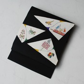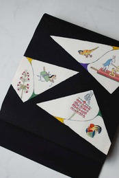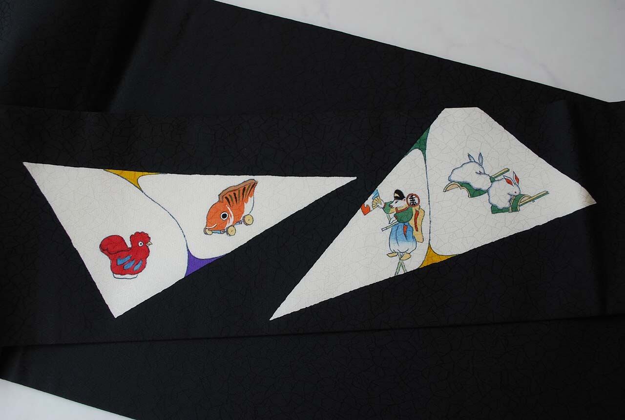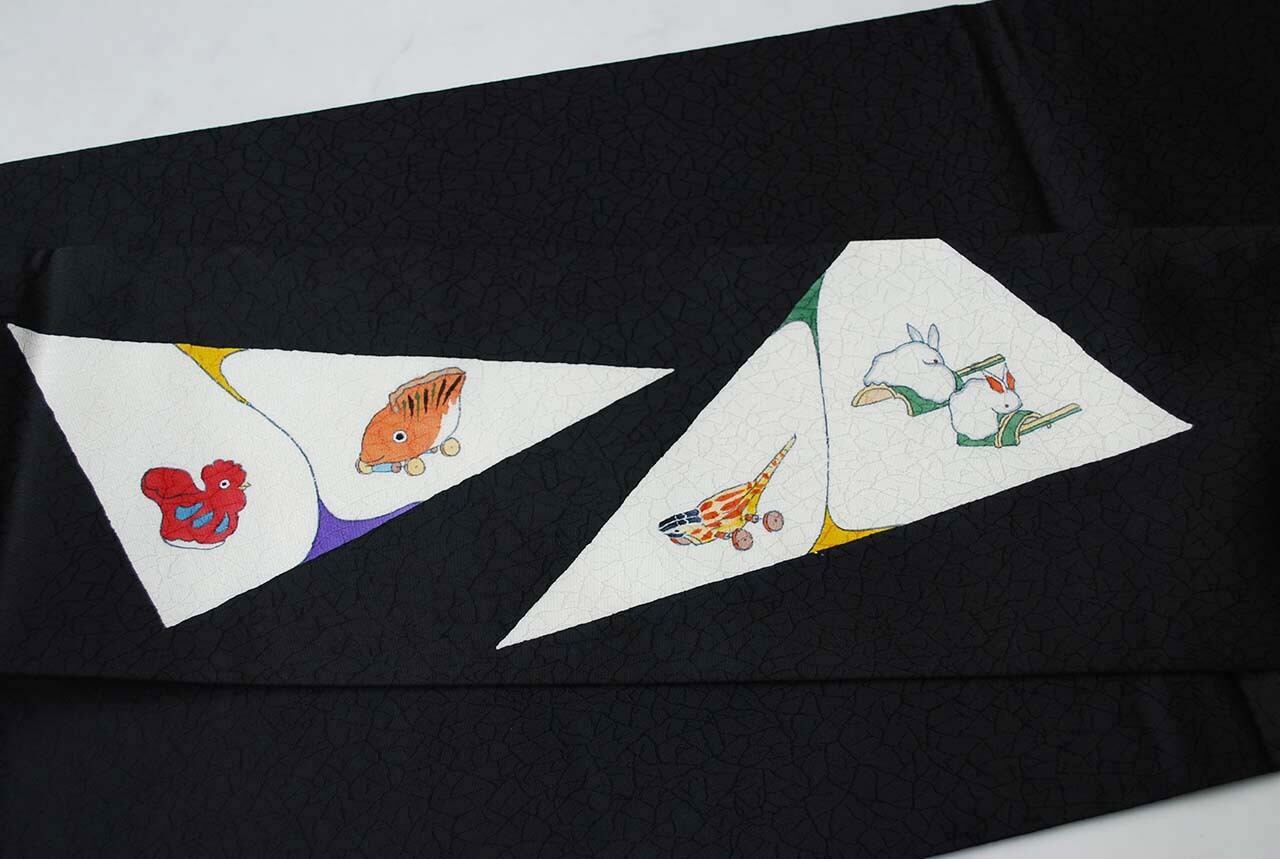 【なごや帯】黒地 おもちゃ柄 染めなごや帯