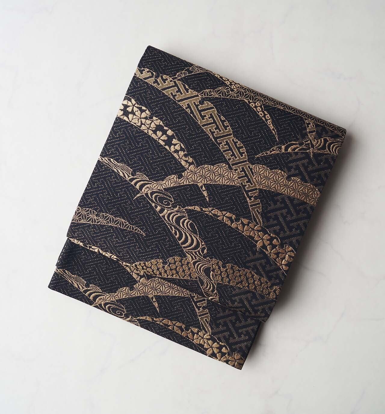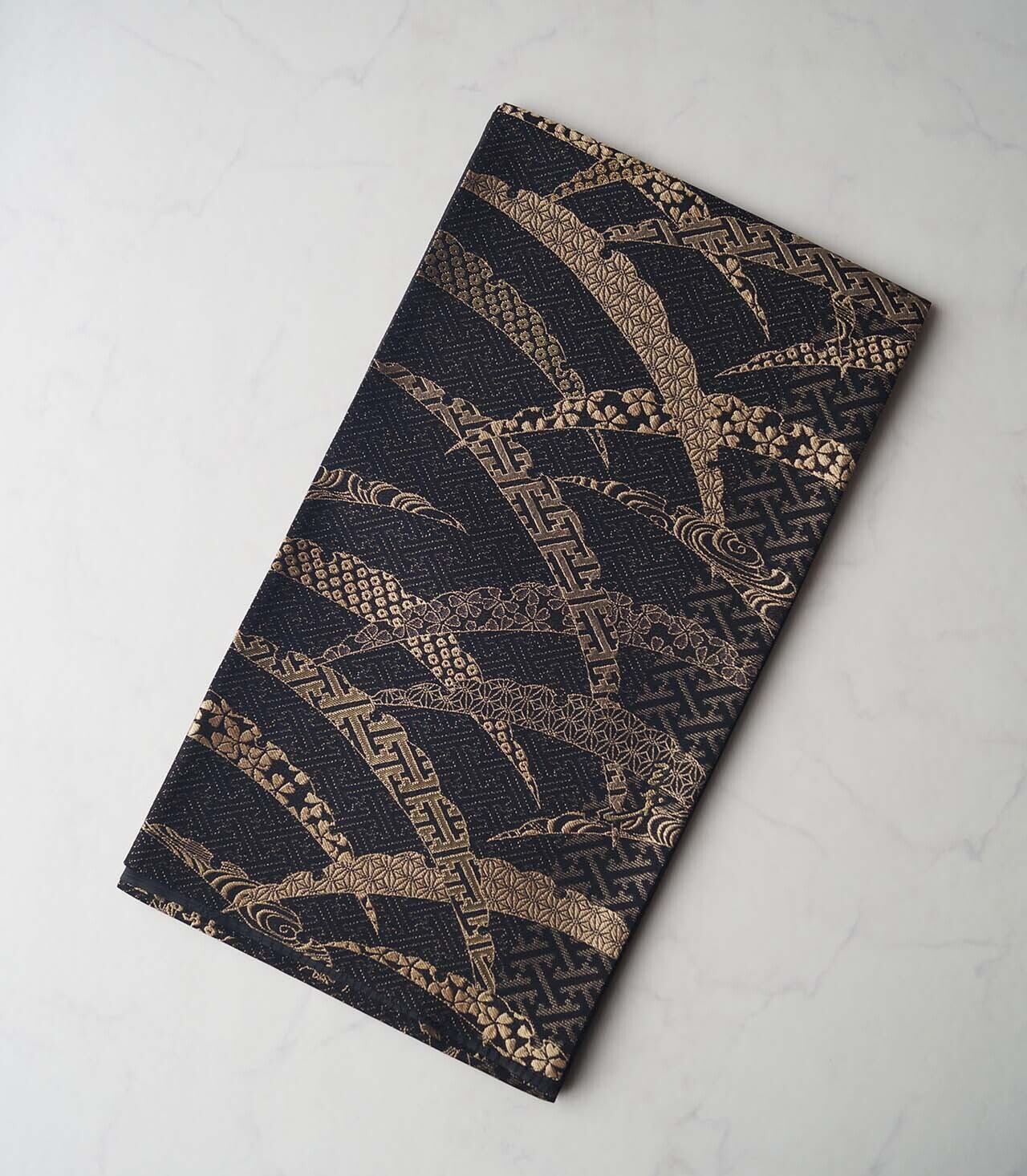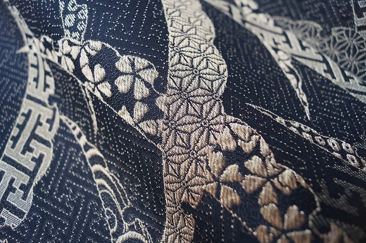 黒色の地に、大胆に配された芝露文。