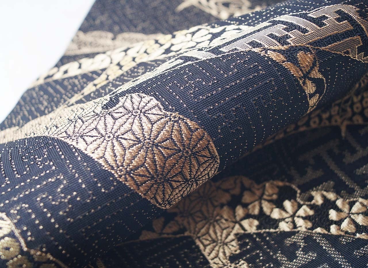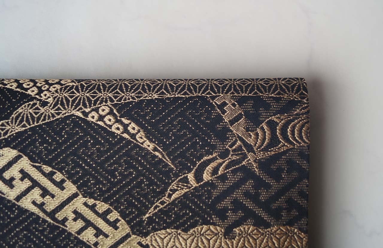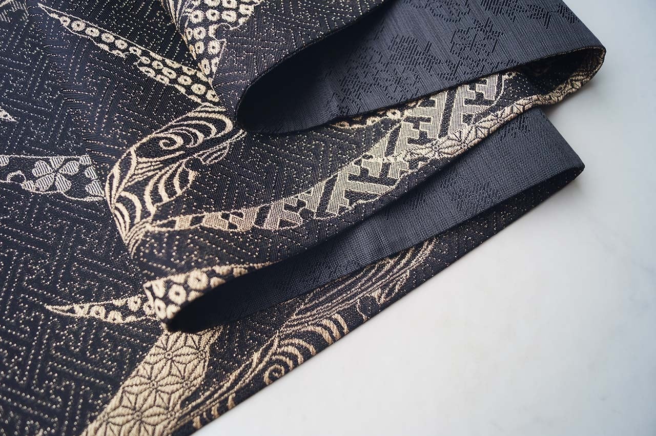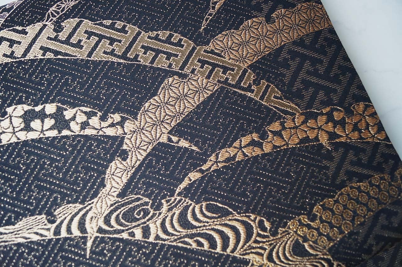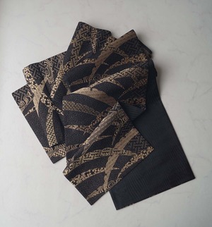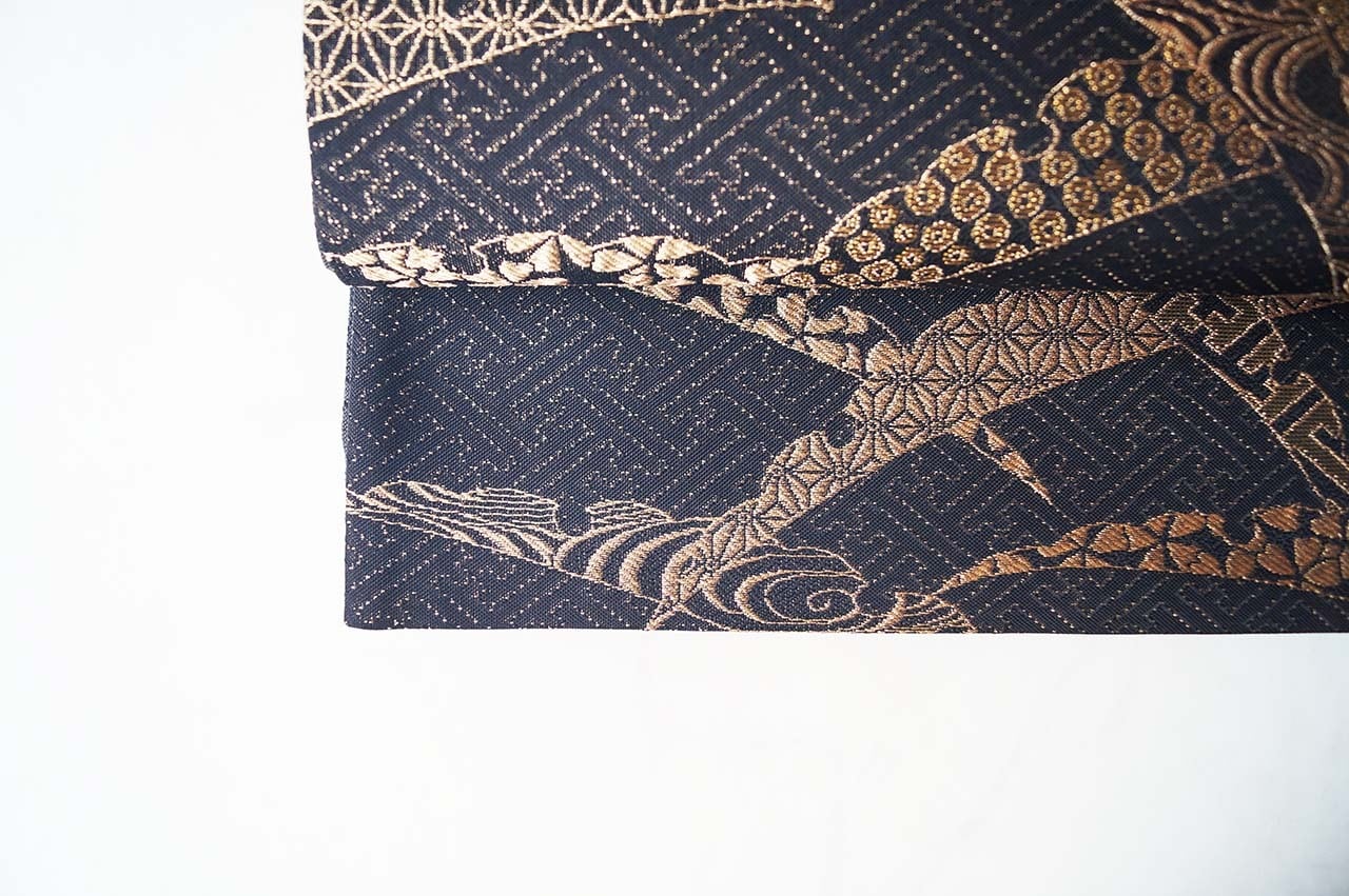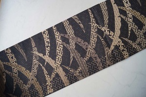 【ふくろ帯】黒色地 露芝文 ふくろ帯