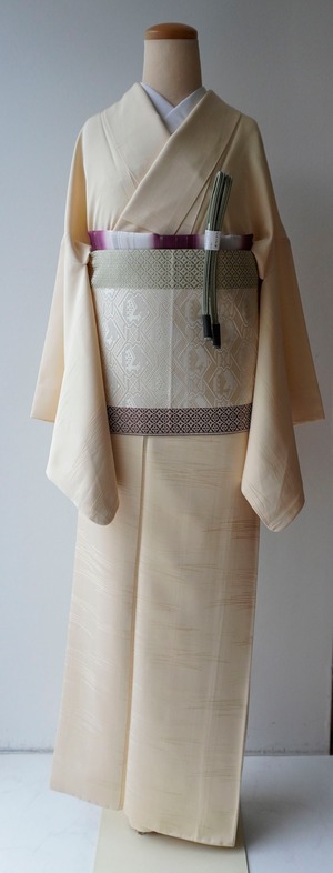 【袷】鳥の子色 敷松葉地紋 一つ紋 色無地