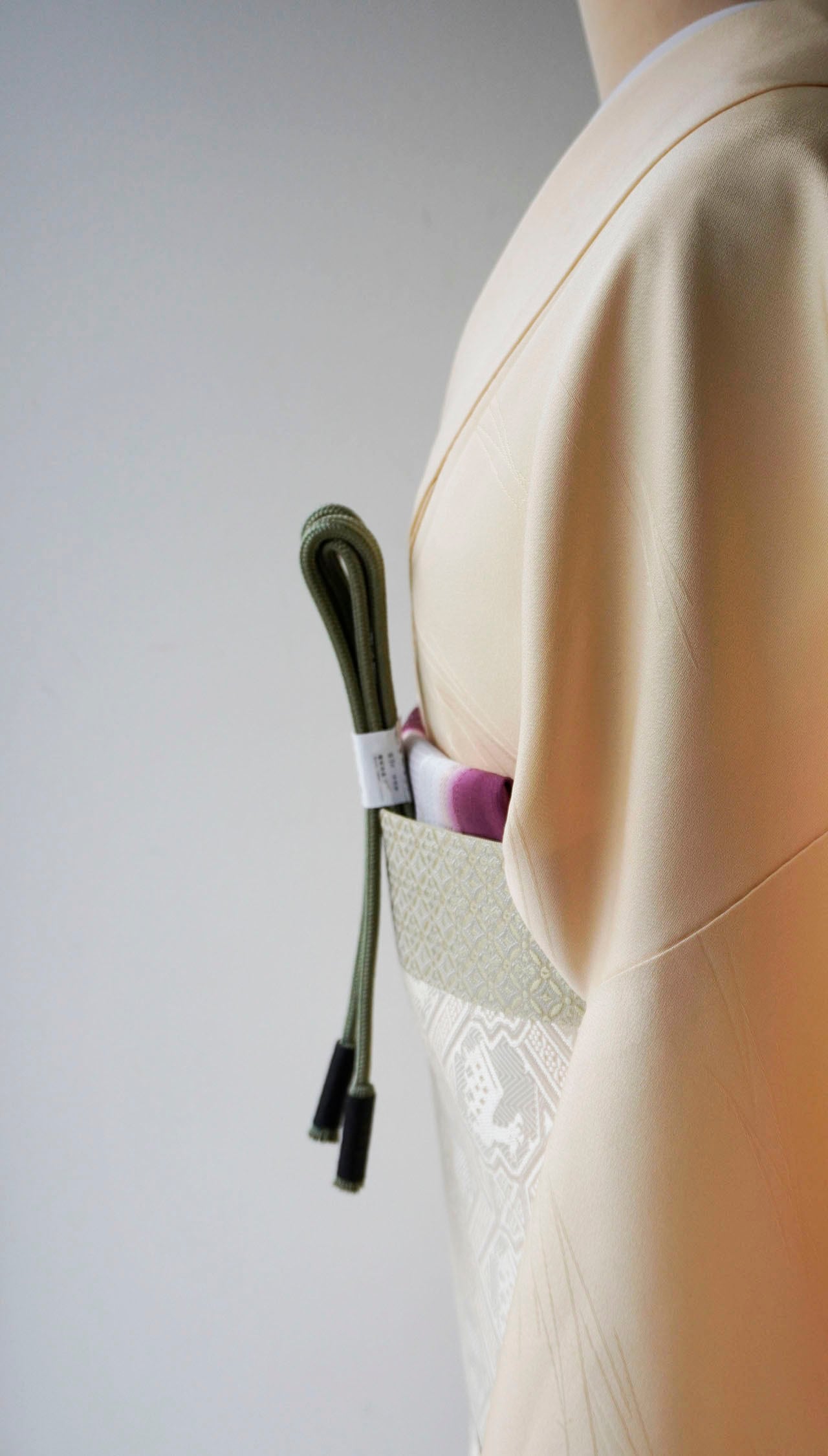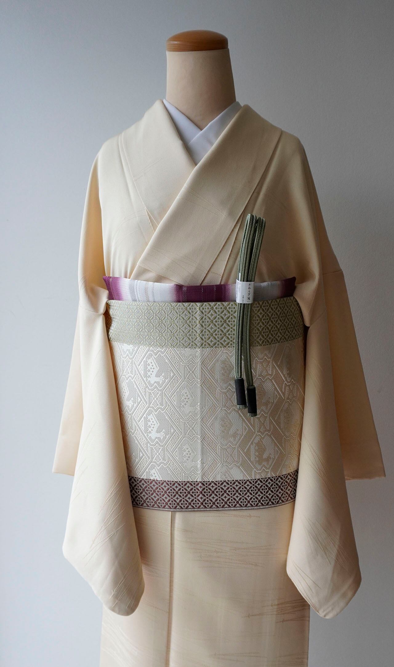 色無地のお着物に奥深い表情を与えております。