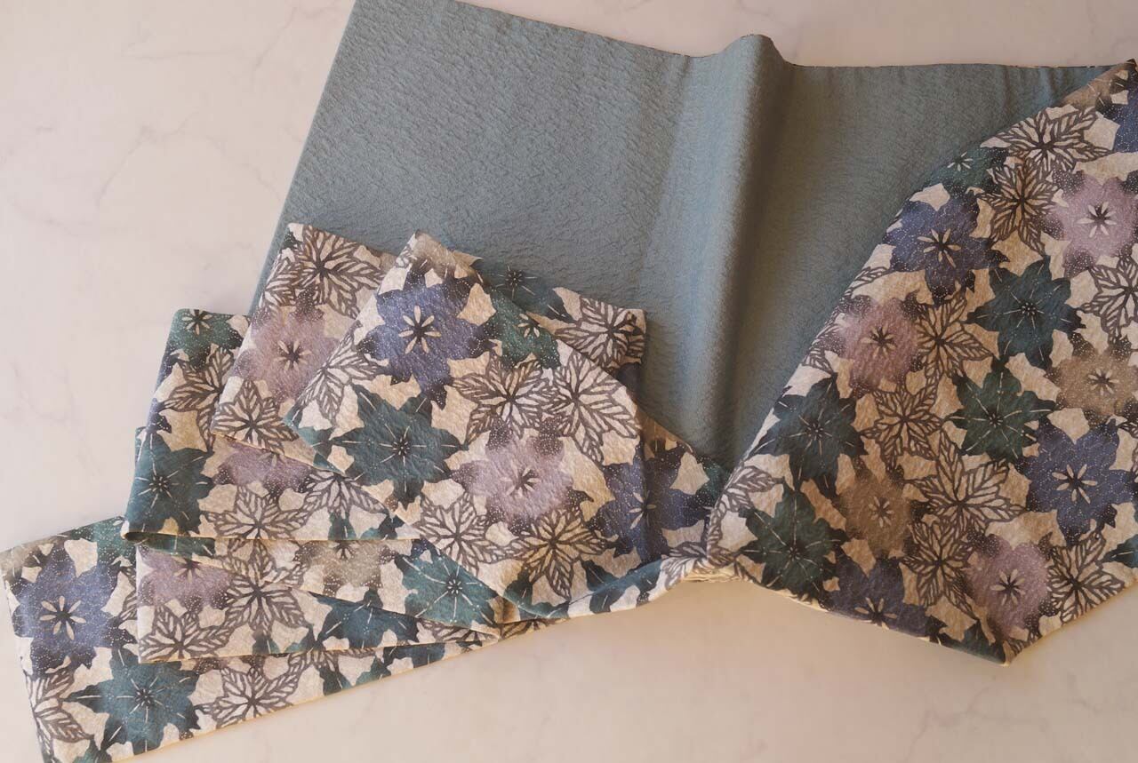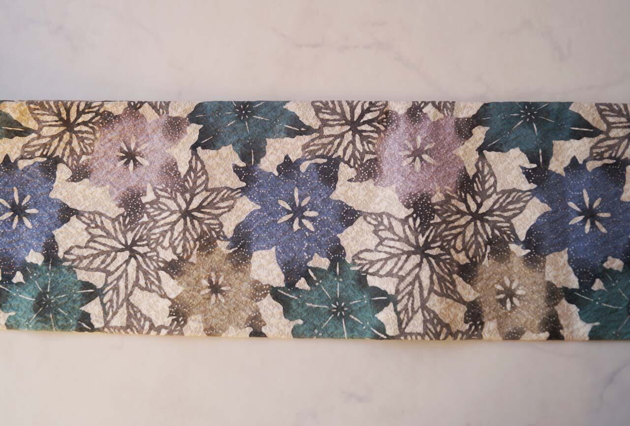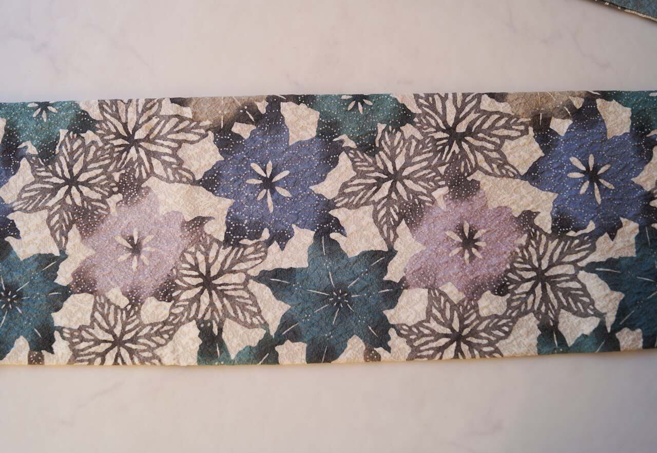 【なごや帯】青緑系 抽象花文 ふくれ織り なごや帯