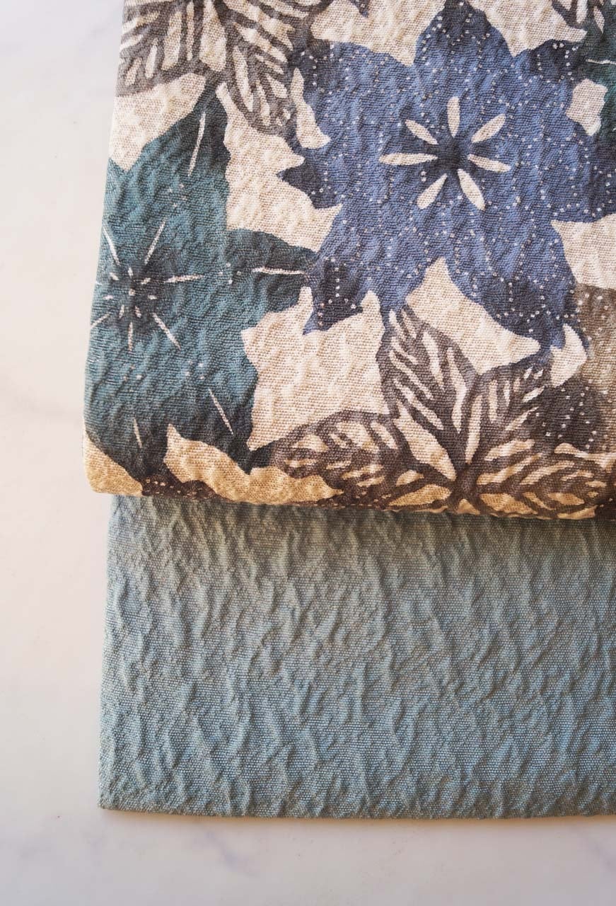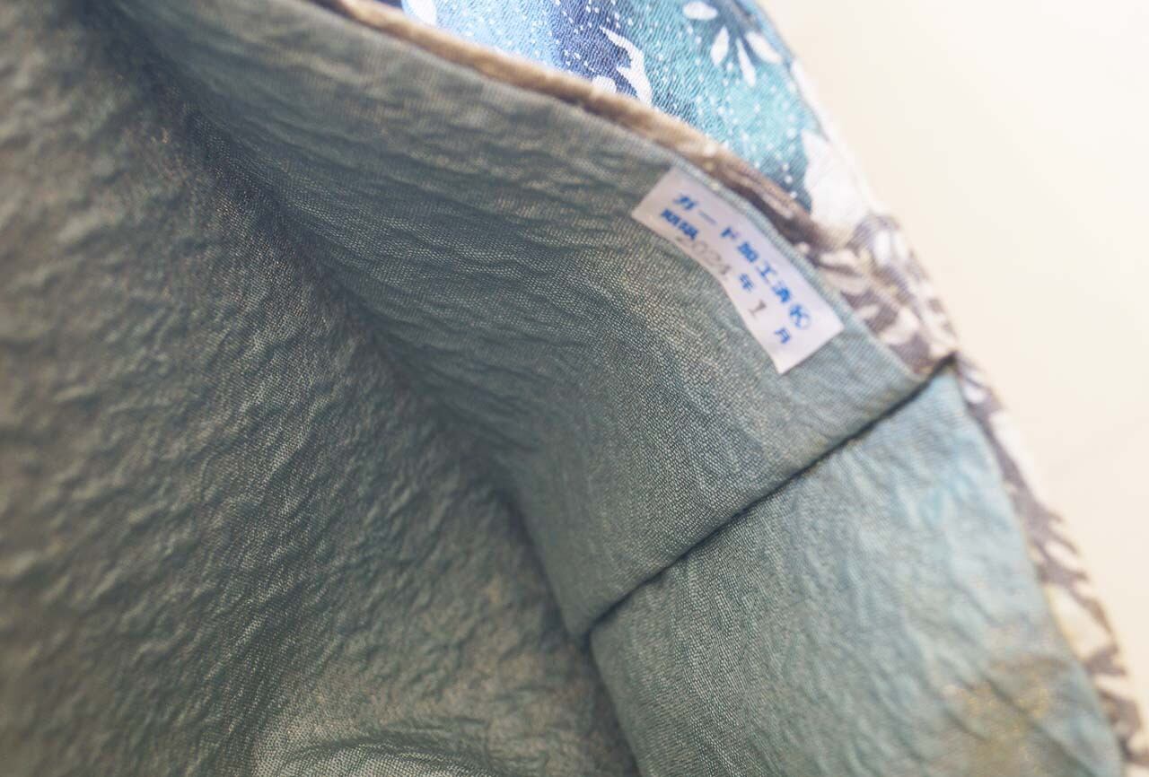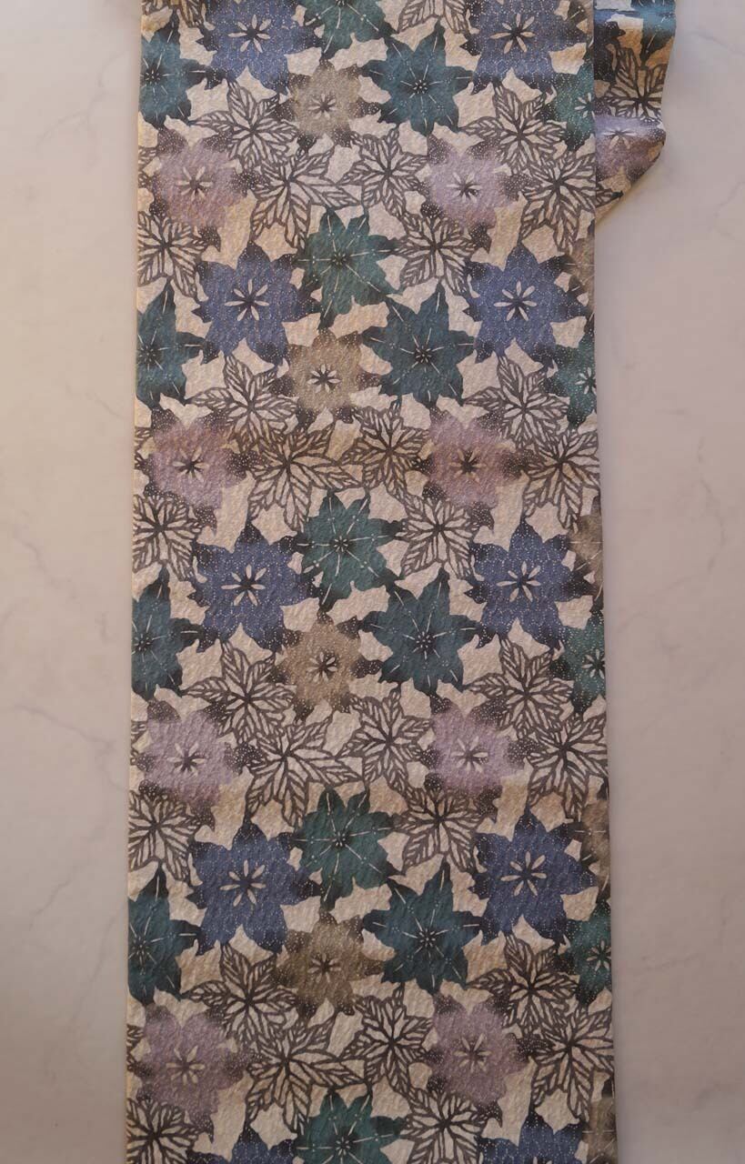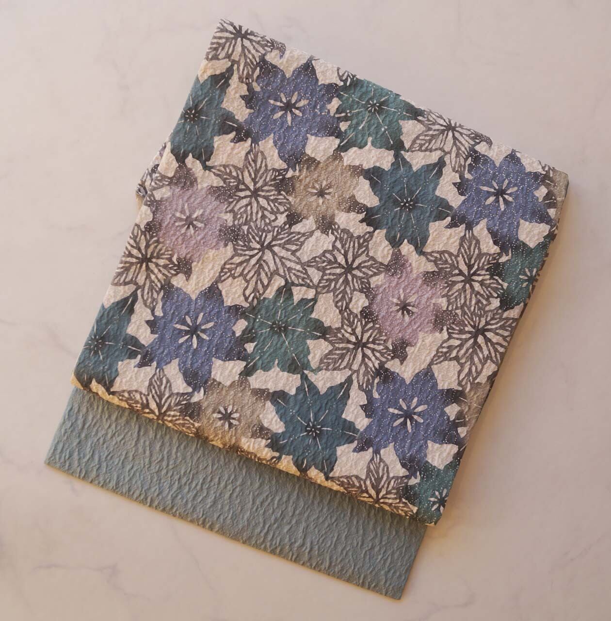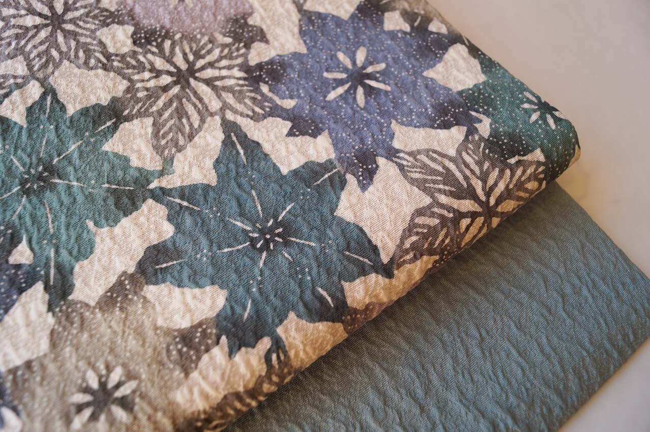 青緑系の抽象花文ふくれ織り