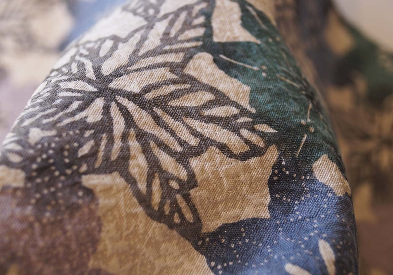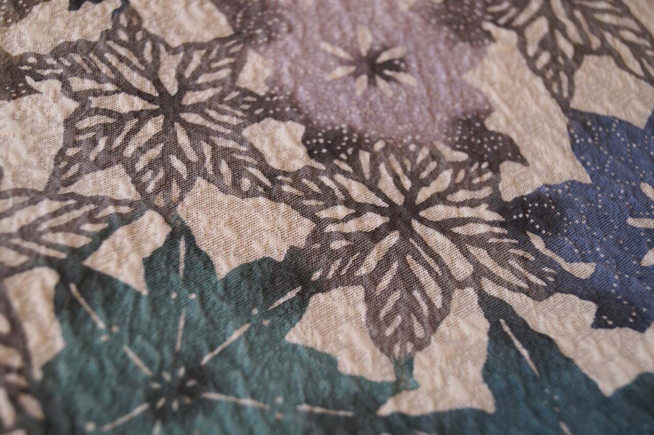 花が全面的に型染めされていますが、