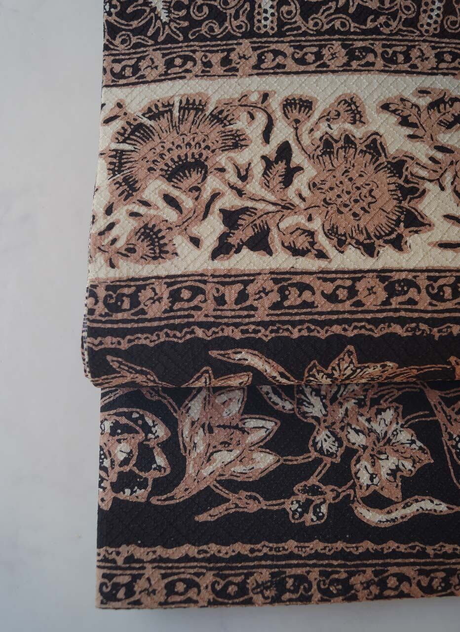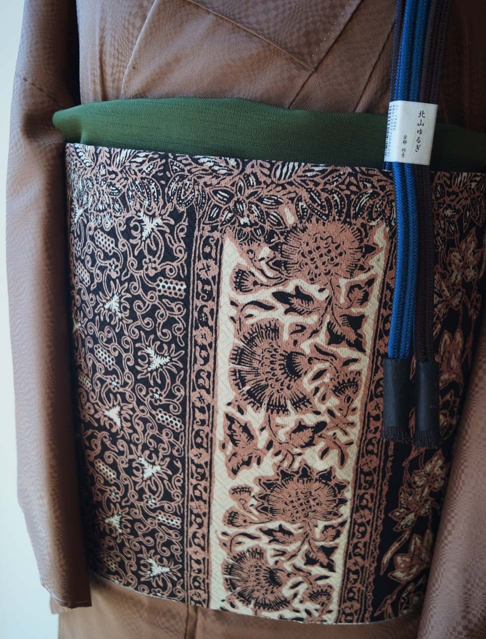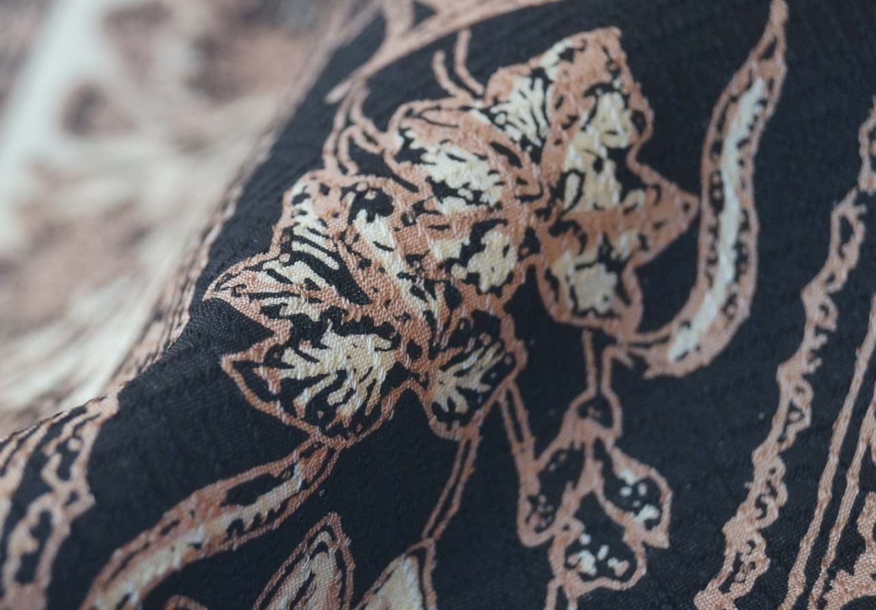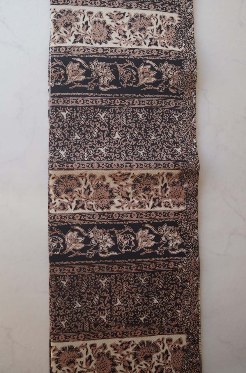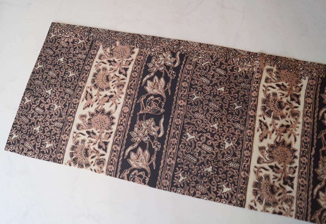 【ふくろ帯】黒色×生成色×丁子茶色 更紗文 洒落ふくろ帯